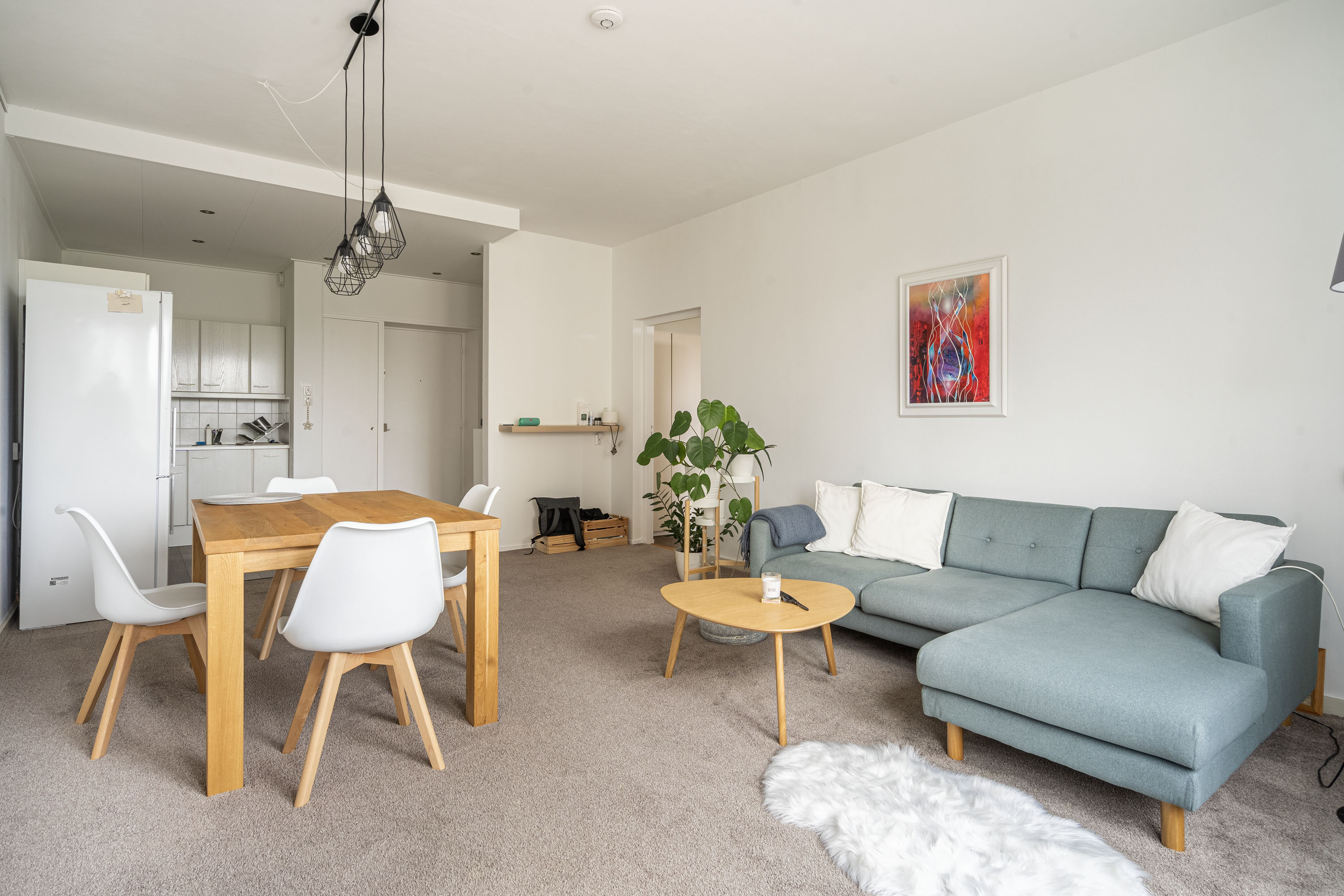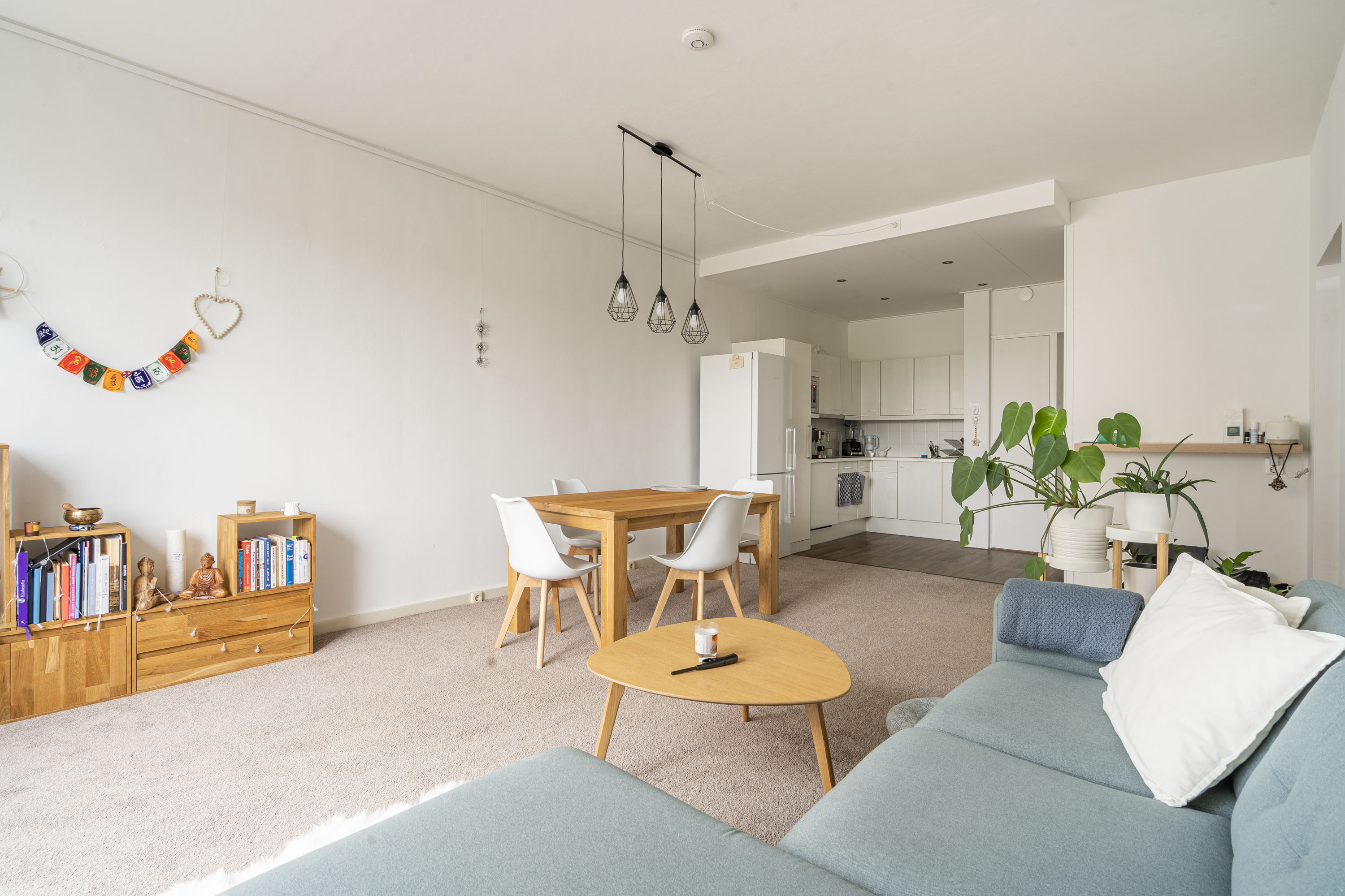 Bij binnenkomst heb je de beschikking over twee vaste kasten voor het opbergen van garderobe items, apart toiletruimte en is er directe toegang naar de woonkamer. De woonkamer heeft een afmeting van circa 25m², beschikt over een fijn daglicht door het grote raam en is voorzien van een nette vloerbedekking. De keuken, opgesteld in een hoekopstelling, is netjes en voorzien van een inductie kookplaat, afzuigkap en koel-/vrieskast. Vanuit de woonkamer bereik je de royale slaapkamer van circa 22m², voorzien van een ingebouwde kledingkast en met doorgang naar een balkon van ongeveer 6m² op het zuidoosten. Het balkon nodigt uit om te genieten van de ochtend- en middagzon. Aangrenzend aan de slaapkamer tref je de badkamer met inloopdouche, wastafel met wastafelmeubel en aansluiting voor de wasmachine.