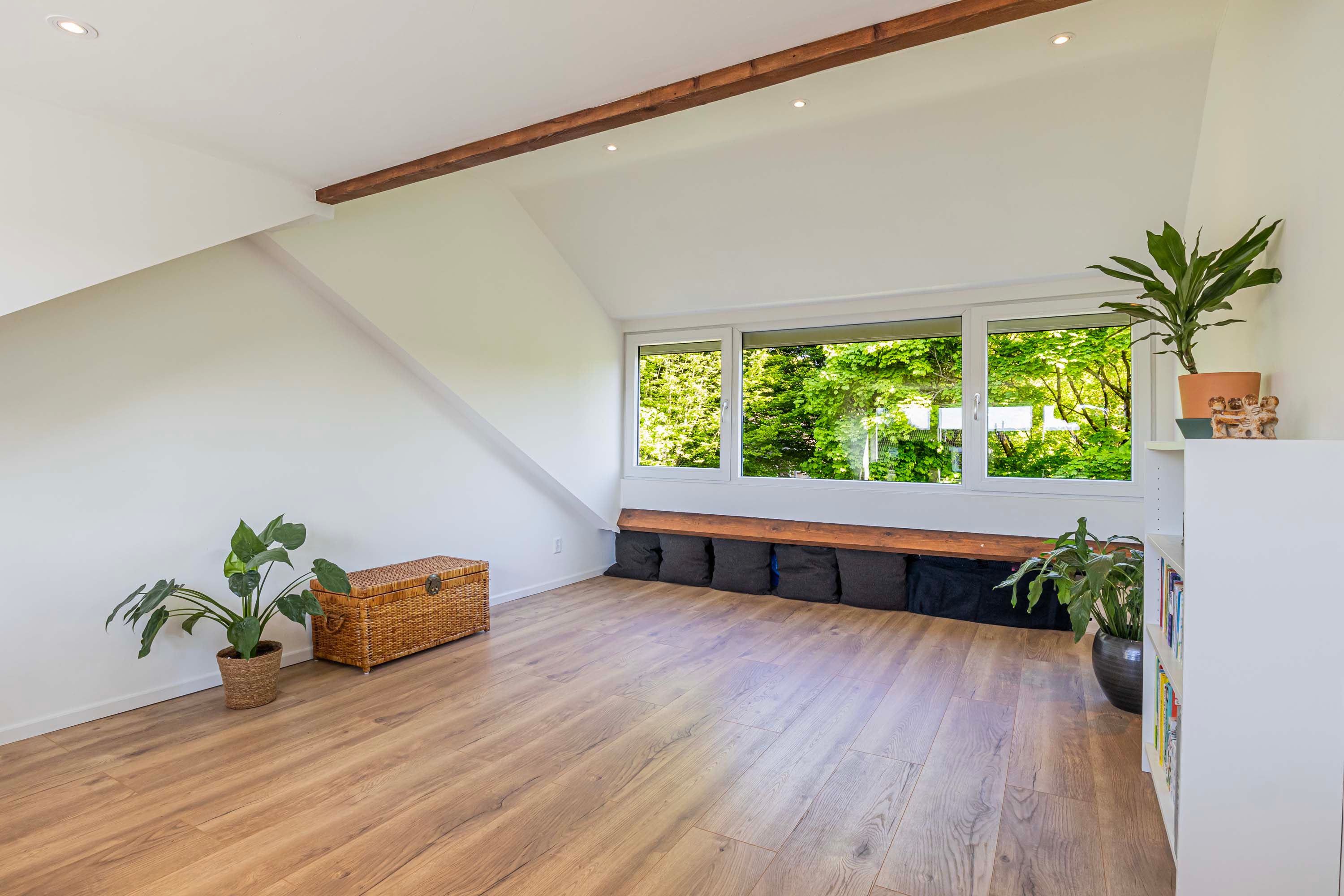 De voorzolder heeft een aparte aansluiting voor de wasmachine en droger. De ramen op voorzolder, de voor- en achterzijde, zijn voorzien van elektrische rolluiken. Bovendien is er een fantastische, royale 4e slaapkamer van maar liefst 18,4 m² gerealiseerd! Hier kun je genieten van een fijne en lichte ruimte. Alle ramen op deze kamer, de voor- en achterzijde, zijn ook voorzien van elektrische rolluiken.