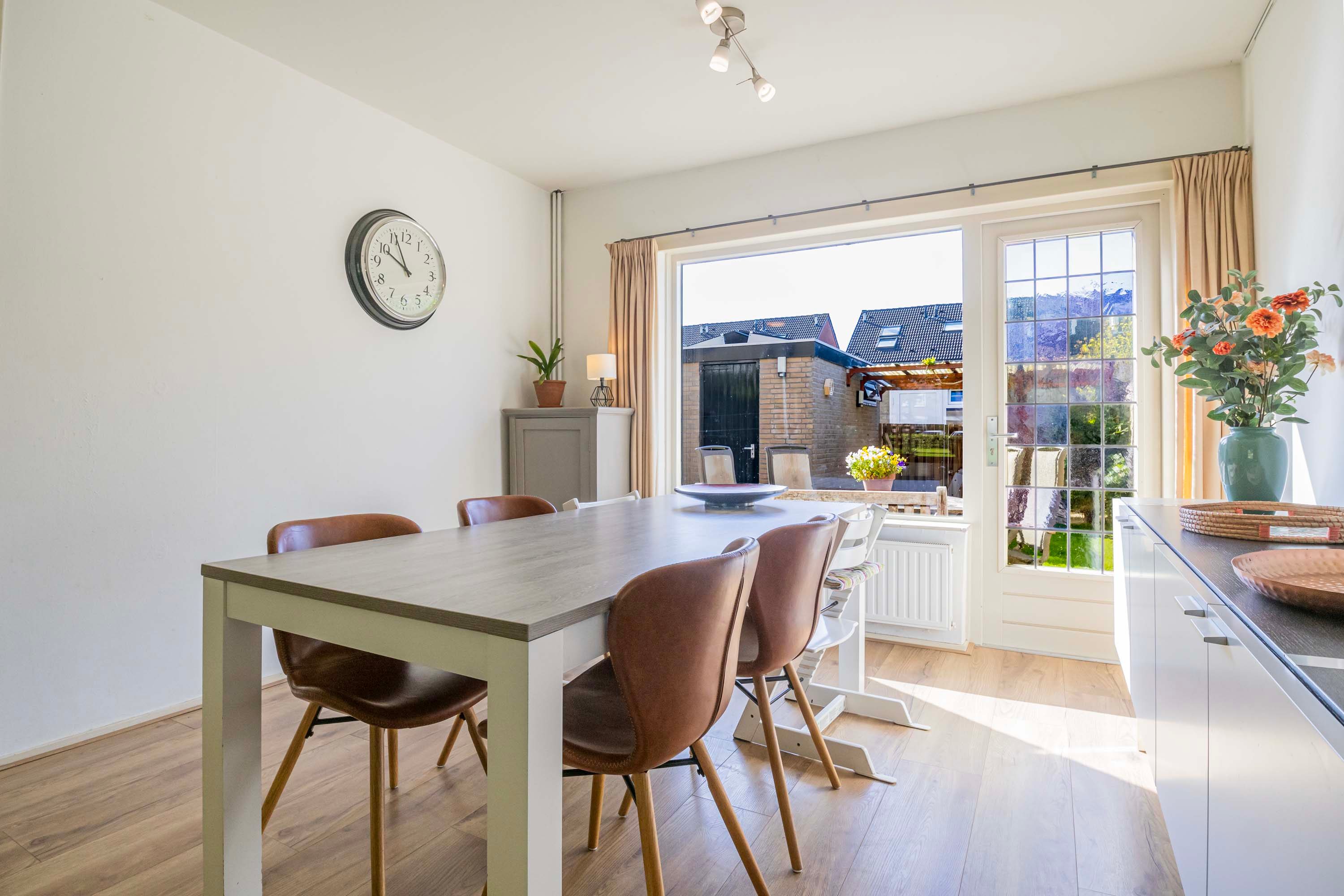 Vanuit de eetkamer heb je direct toegang tot de fijne achtertuin door middel van een loopdeur. Ideaal om het buitenleven naar binnen te halen!