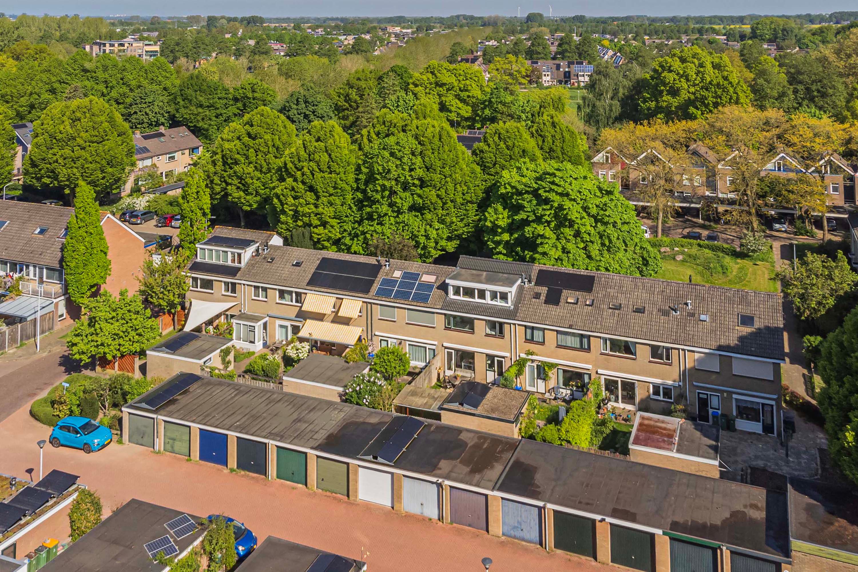 De woning heeft energielabel A, 10 zonnepanelen uit 2022, vernieuwde nokverhoging en dakkapel uit 2021 en elektrische zonwering op elke verdieping.