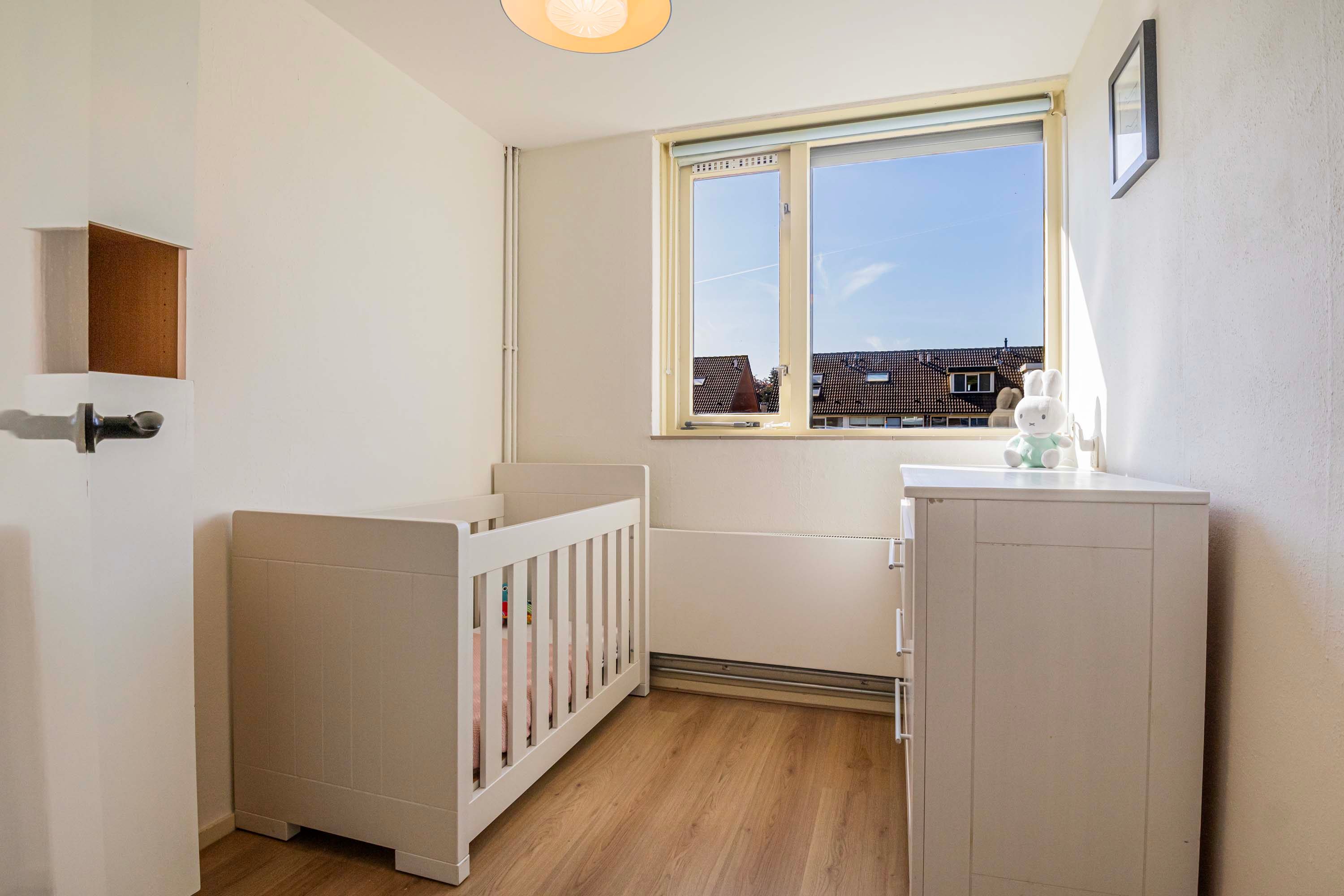 De derde slaapkamer is gesitueerd aan de voorzijde, 10,9 m2 met uitzicht op het plantsoen. Alle slaapkamers zijn voorzien van grote raampartijen waardoor ze heerlijk licht en ruimtelijk aanvoelen, bevatten design-radiatoren (2019) en nieuwe plafonds (2021).