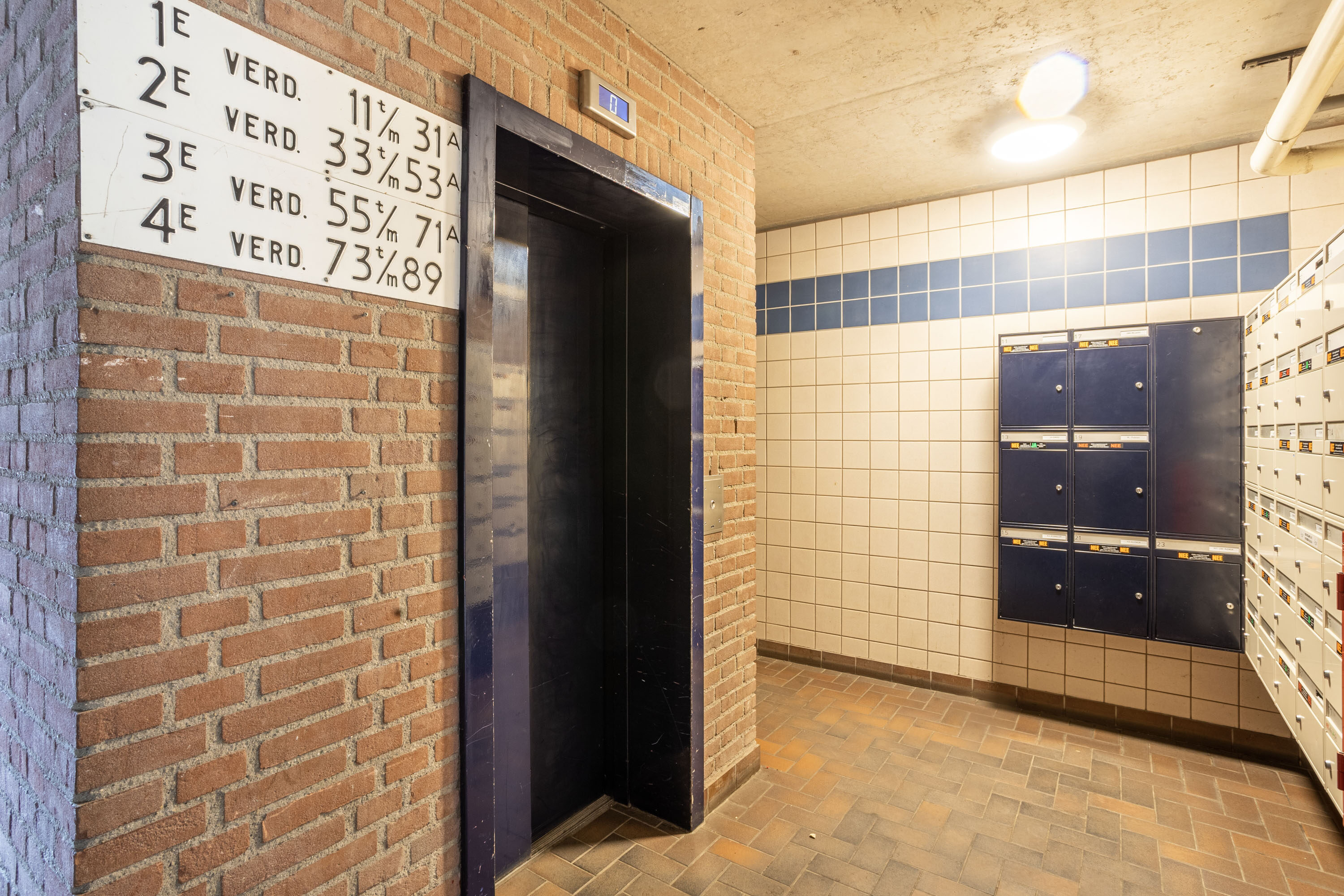 Via de algemene entree met brievenbussen is het appartement bereikbaar d.m.v. een lift of het trappenhuis.