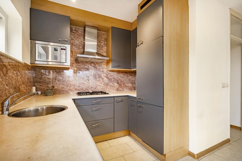 Aan de andere kant van de woning bevindt zich de moderne keuken, die praktisch is opgesteld in een U-vorm. De keuken is voorzien van diverse apparatuur, waaronder:
