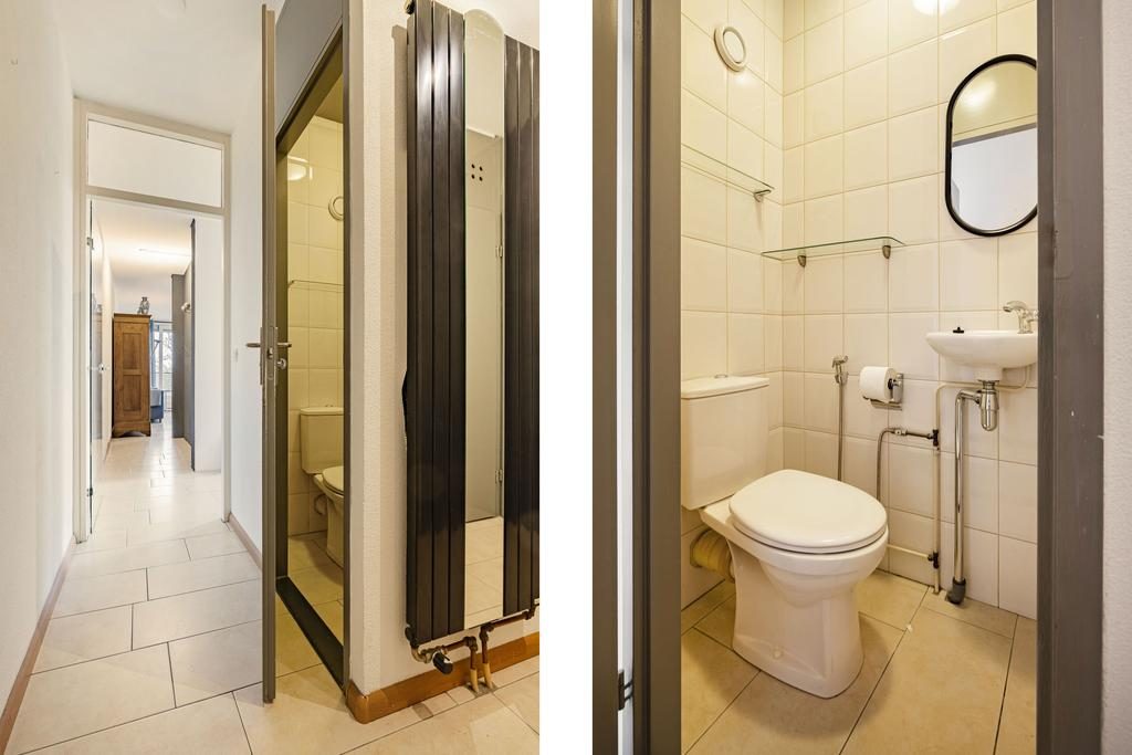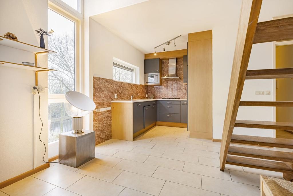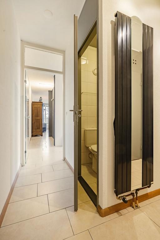 Bij binnenkomst in het appartement tref je een ruime hal aan. Deze hal biedt toegang tot de berging met wasmachine aansluitingen, de woonkamer en een separaat toilet. De woonkamer is een prachtige open ruimte met een stijlvolle open trap naar de eerste verdieping. Dankzij de grote raampartijen en openslaande deuren naar het balkon is de woonkamer heerlijk licht en uitnodigend.