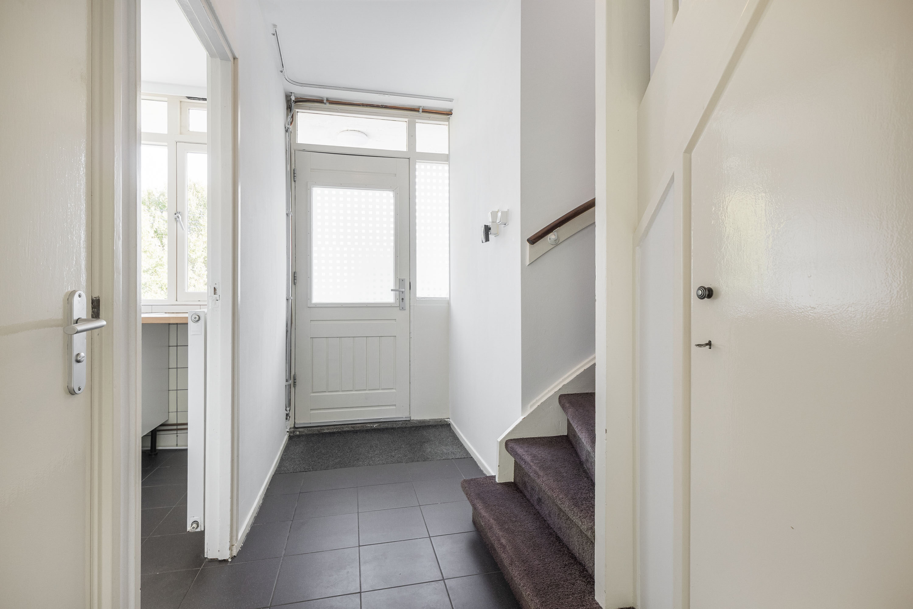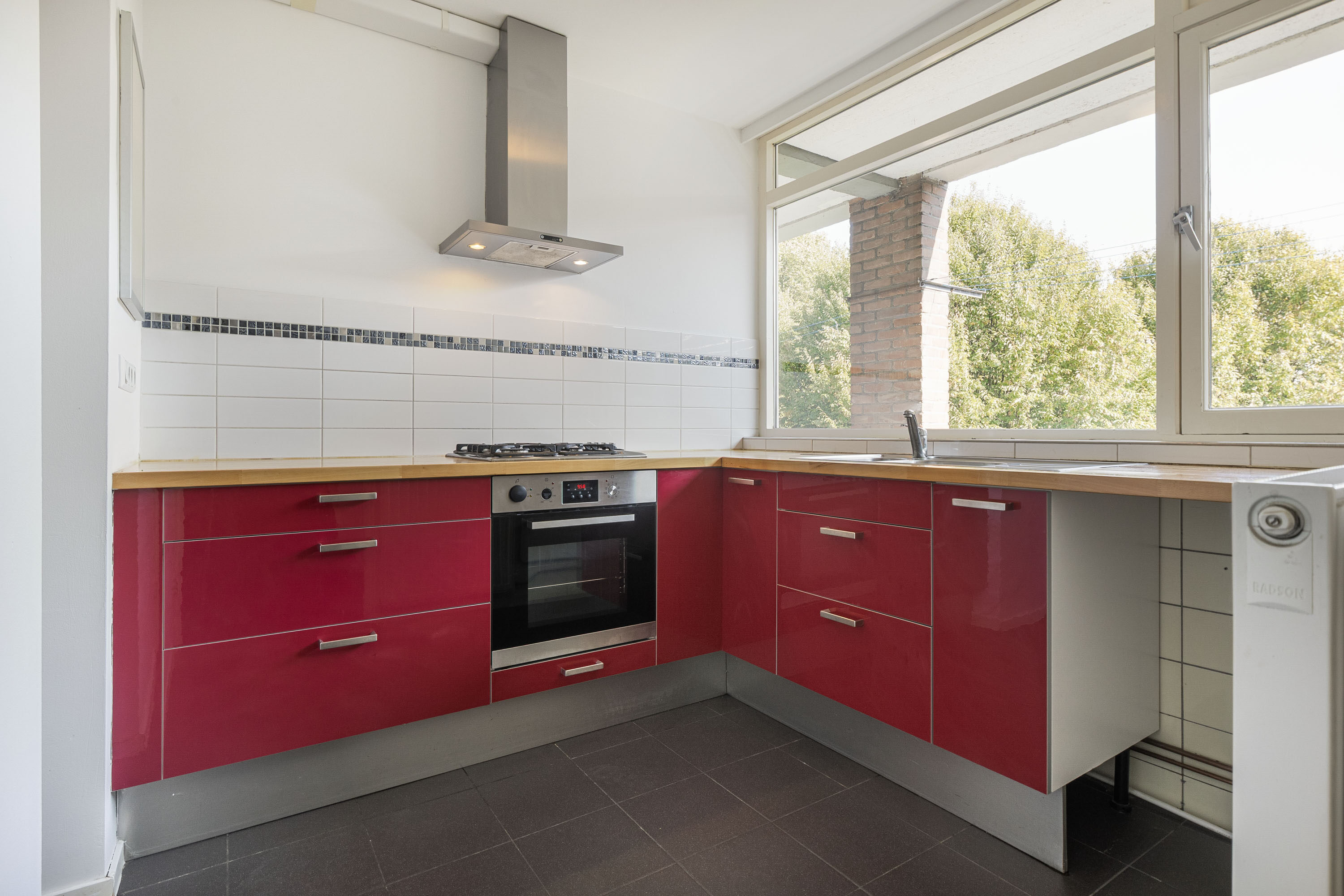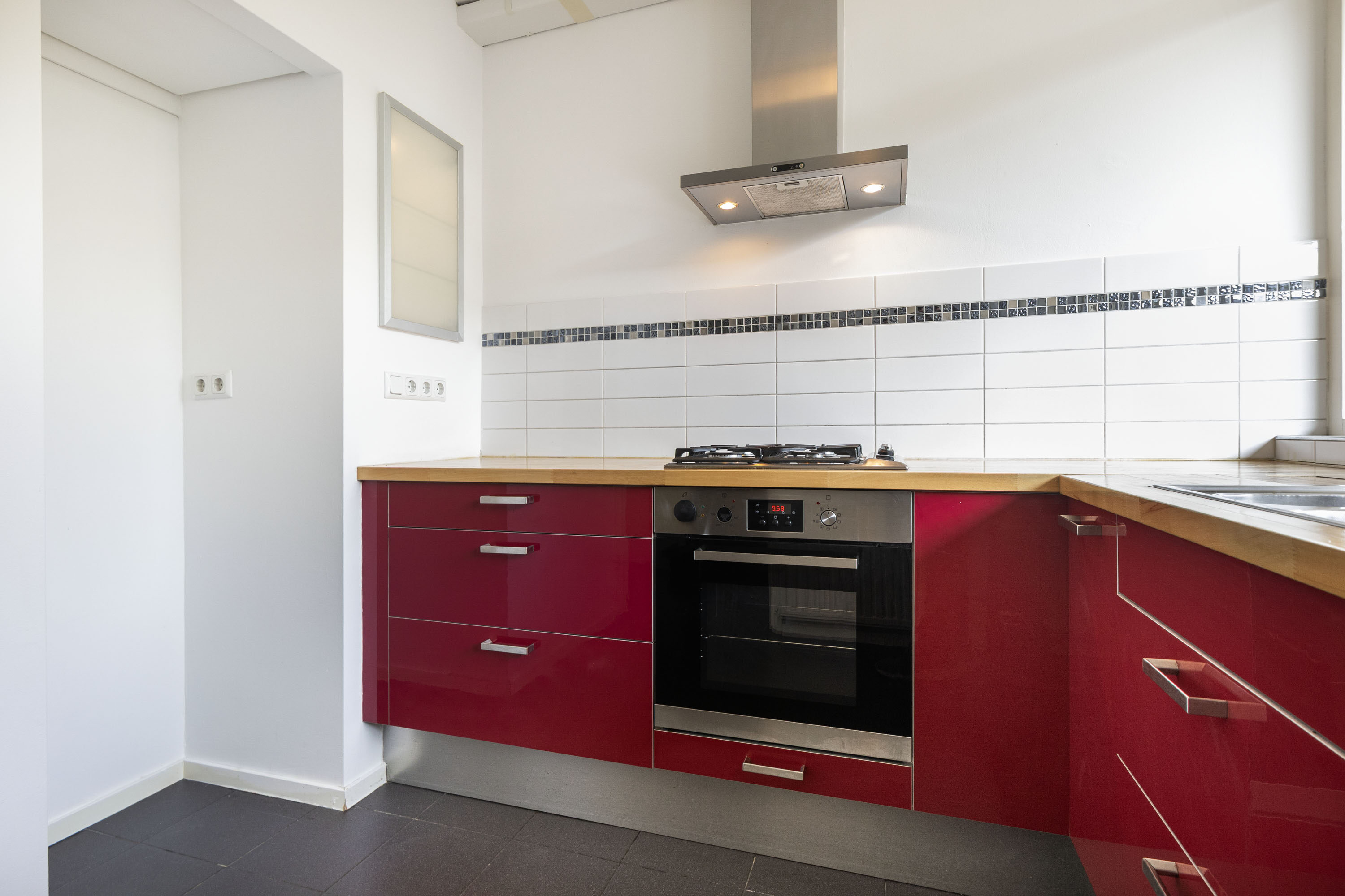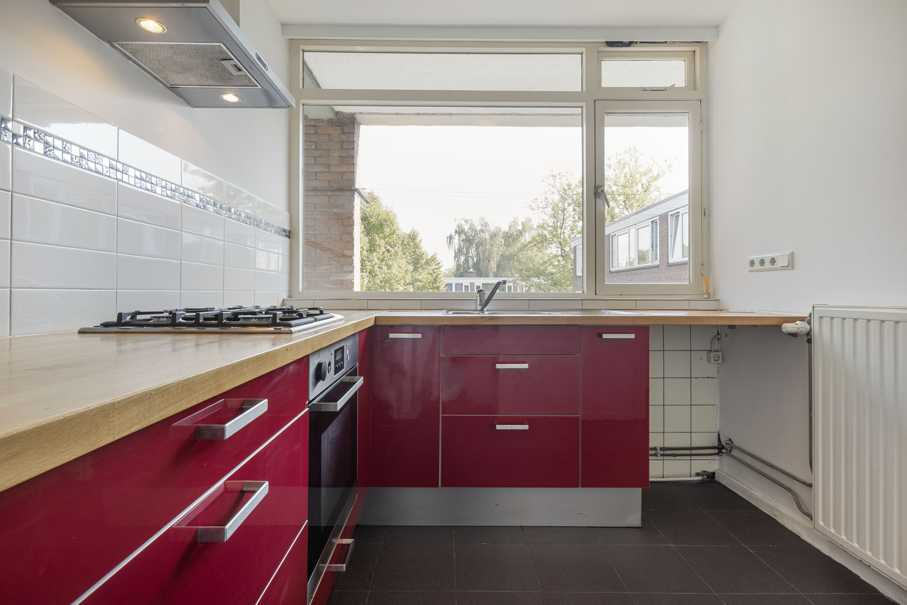 Bij binnenkomst via de voorportaal met trapopgang, trappenkast en toilet kom je direct in de lichte woonkamer terecht, welke licht aanvoelt door de aanwezige raampartijen aan de achterzijde van de woning. De ruimte biedt voldoende plaats voor een grote hoekbank, een gezellig zithoekje en eventueel een speelhoek voor de kinderen. Aan de voorzijde bevindt zich de L-vormige keuken, waar moderne inbouwapparatuur aanwezig is, zoals een gasfornuis, afzuigkap en oven. Daarnaast is er een te openen raam, zodat de keuken ook van frisse lucht profiteert.