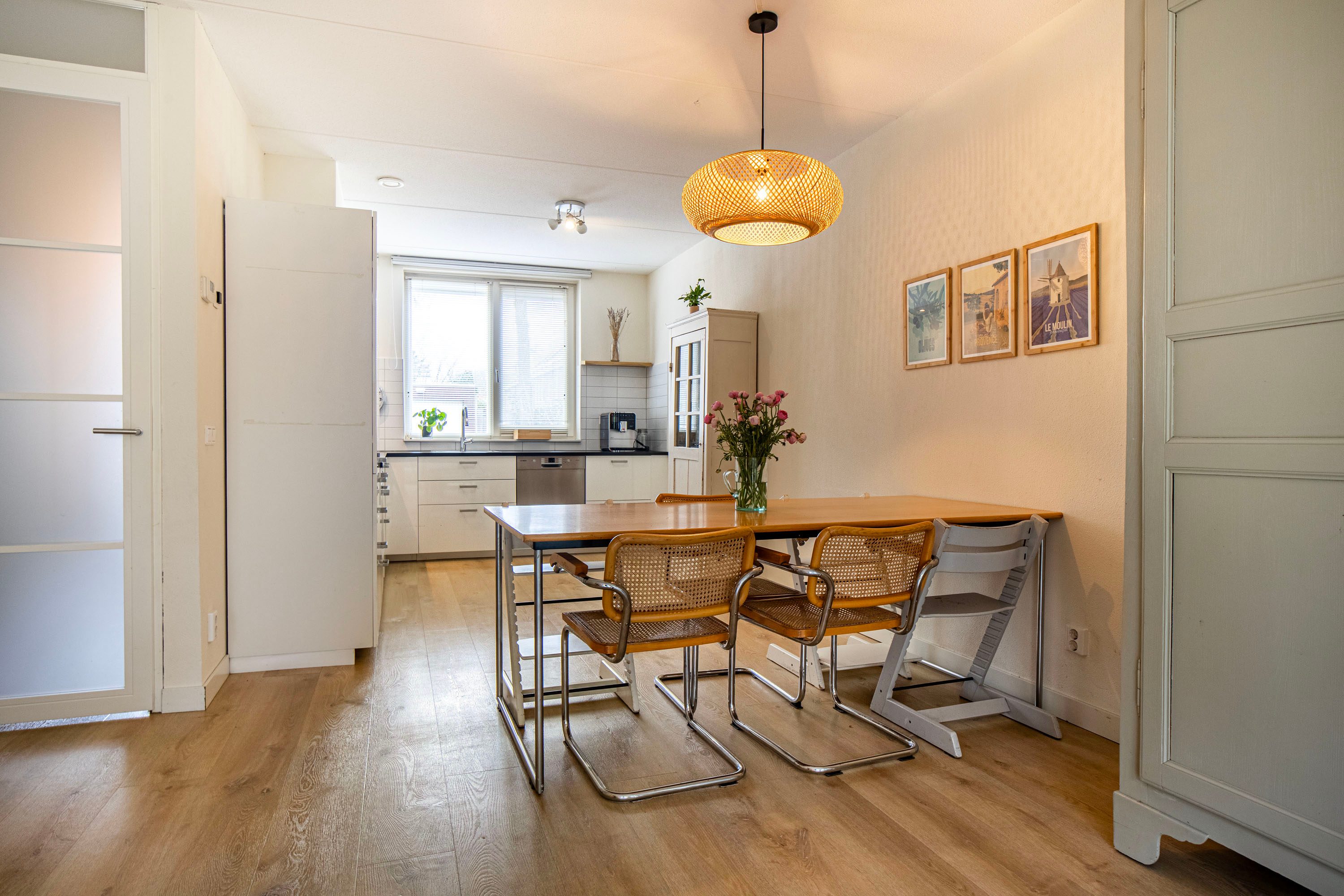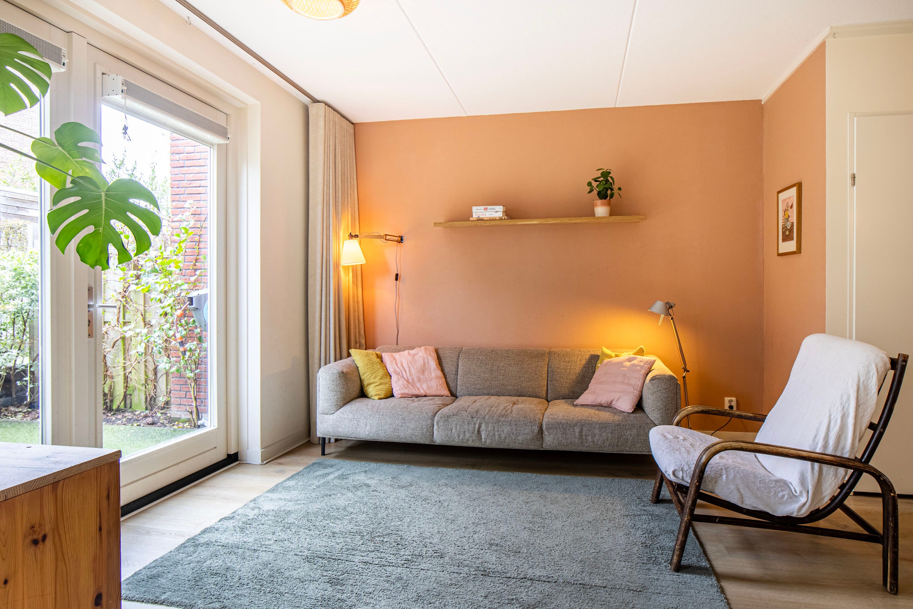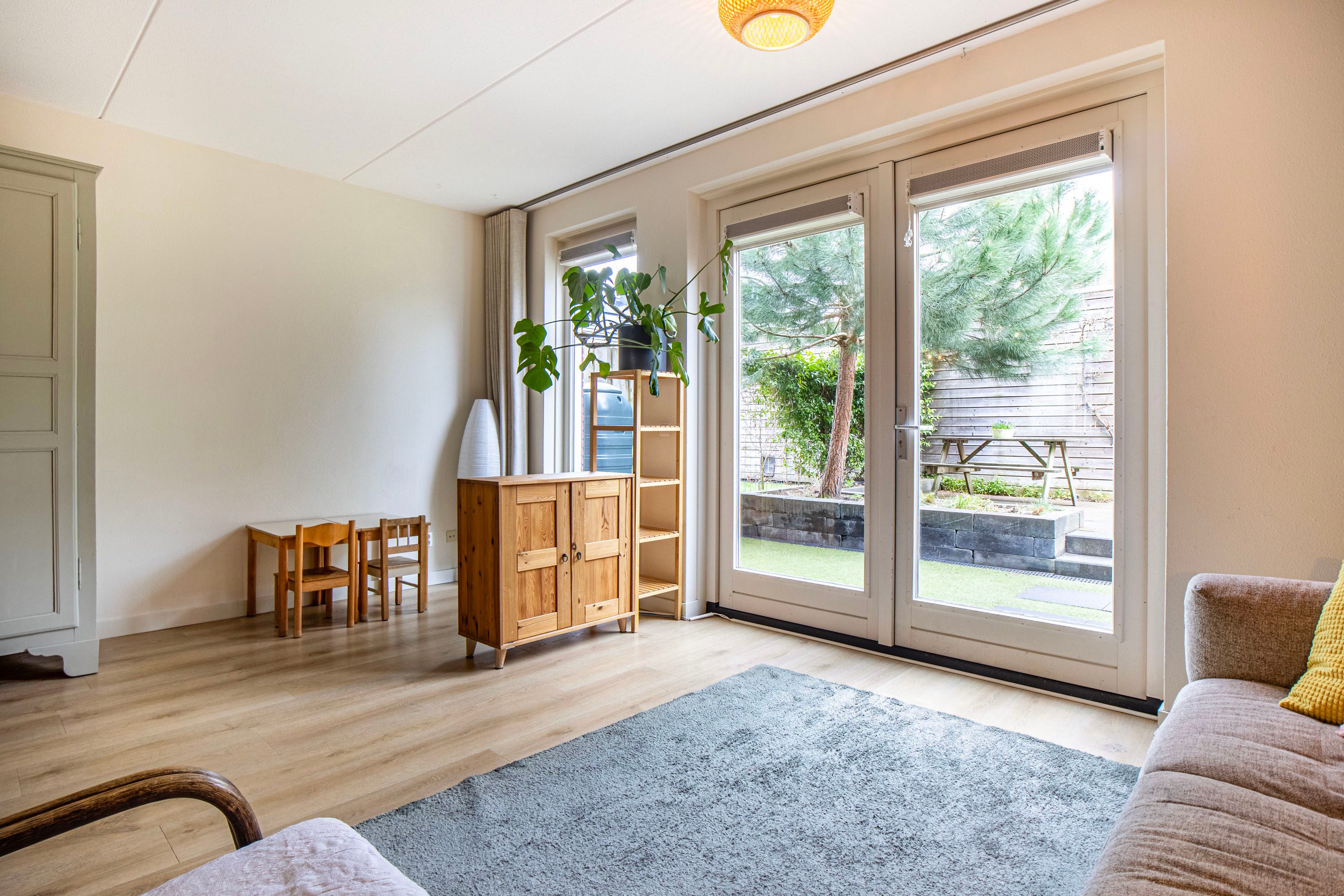 De leefruimte is direct een fijne binnenkomer: een lichte en open woonkamer met voldoende ruimte voor zowel een comfortabele zithoek als een gezellige eethoek. De openslaande deuren zorgen voor een prettige verbinding met de tuin en laten veel daglicht binnen.