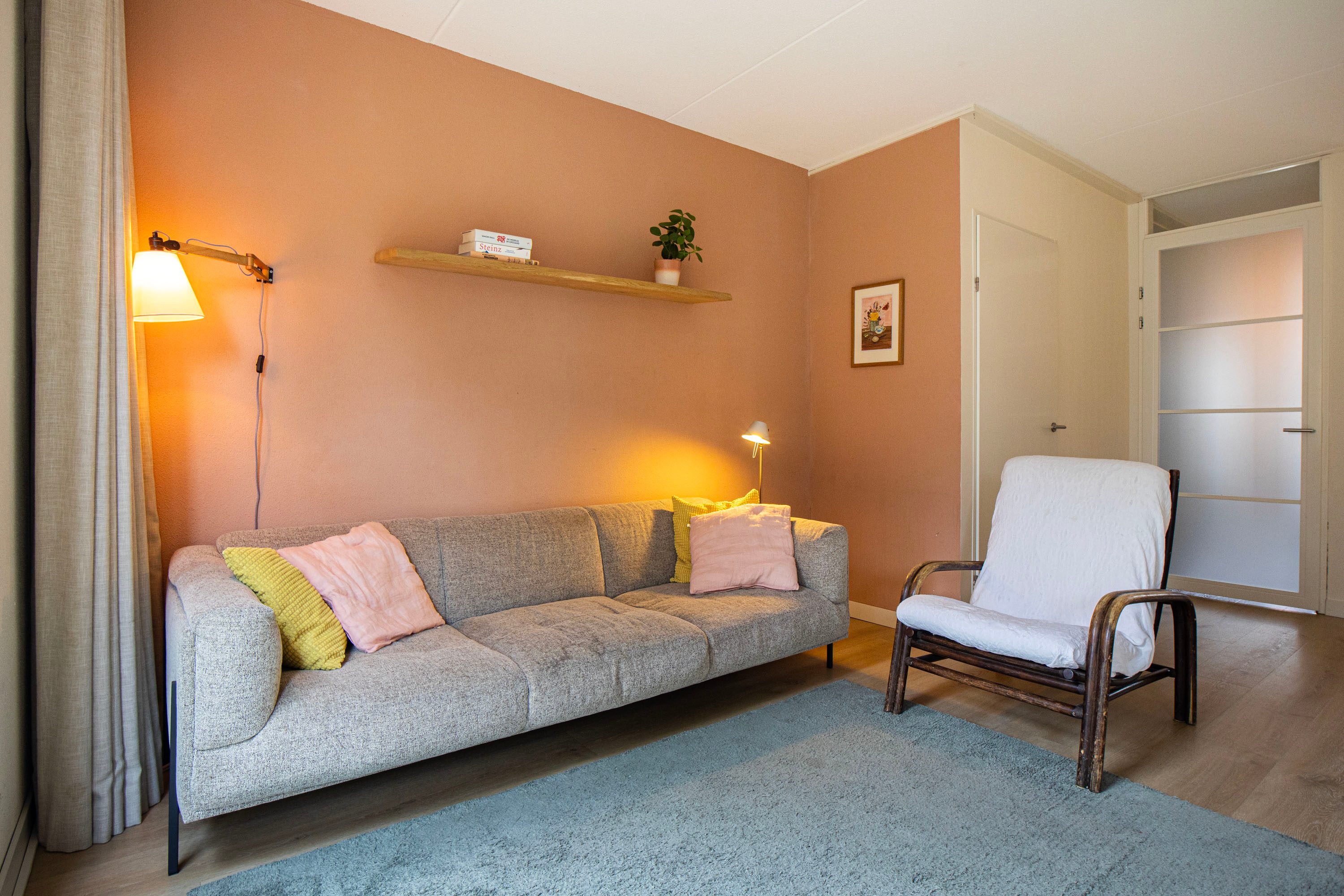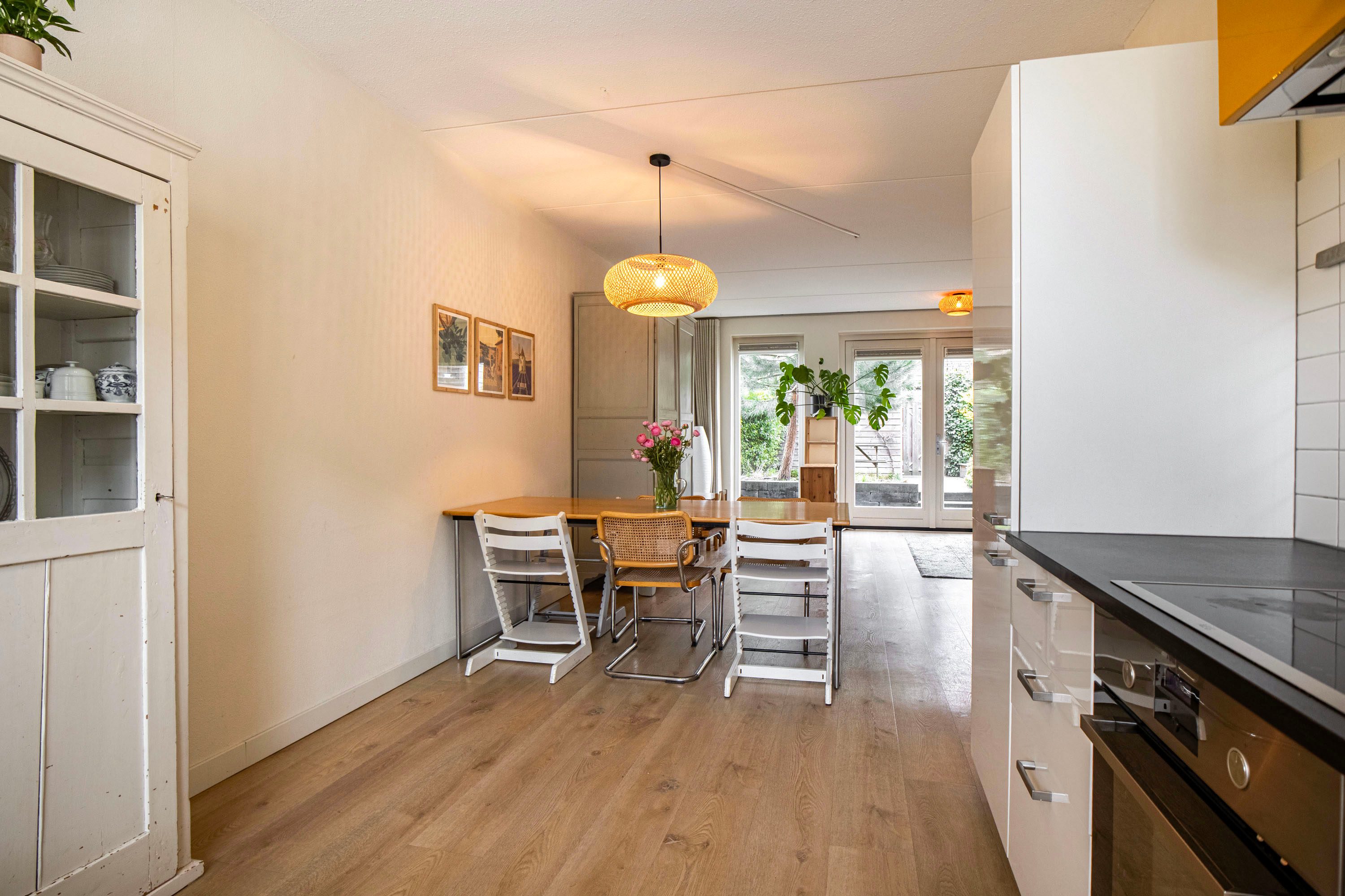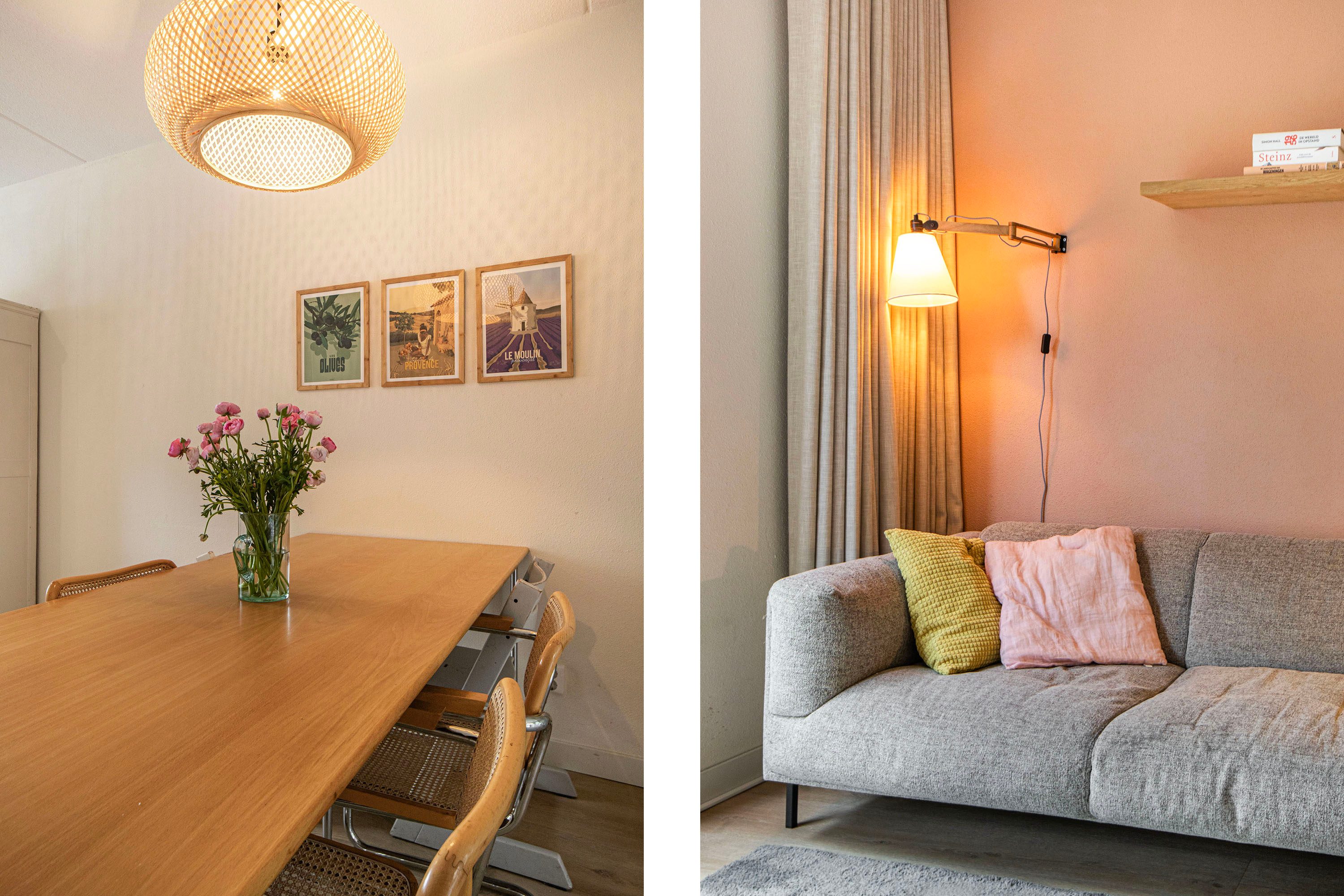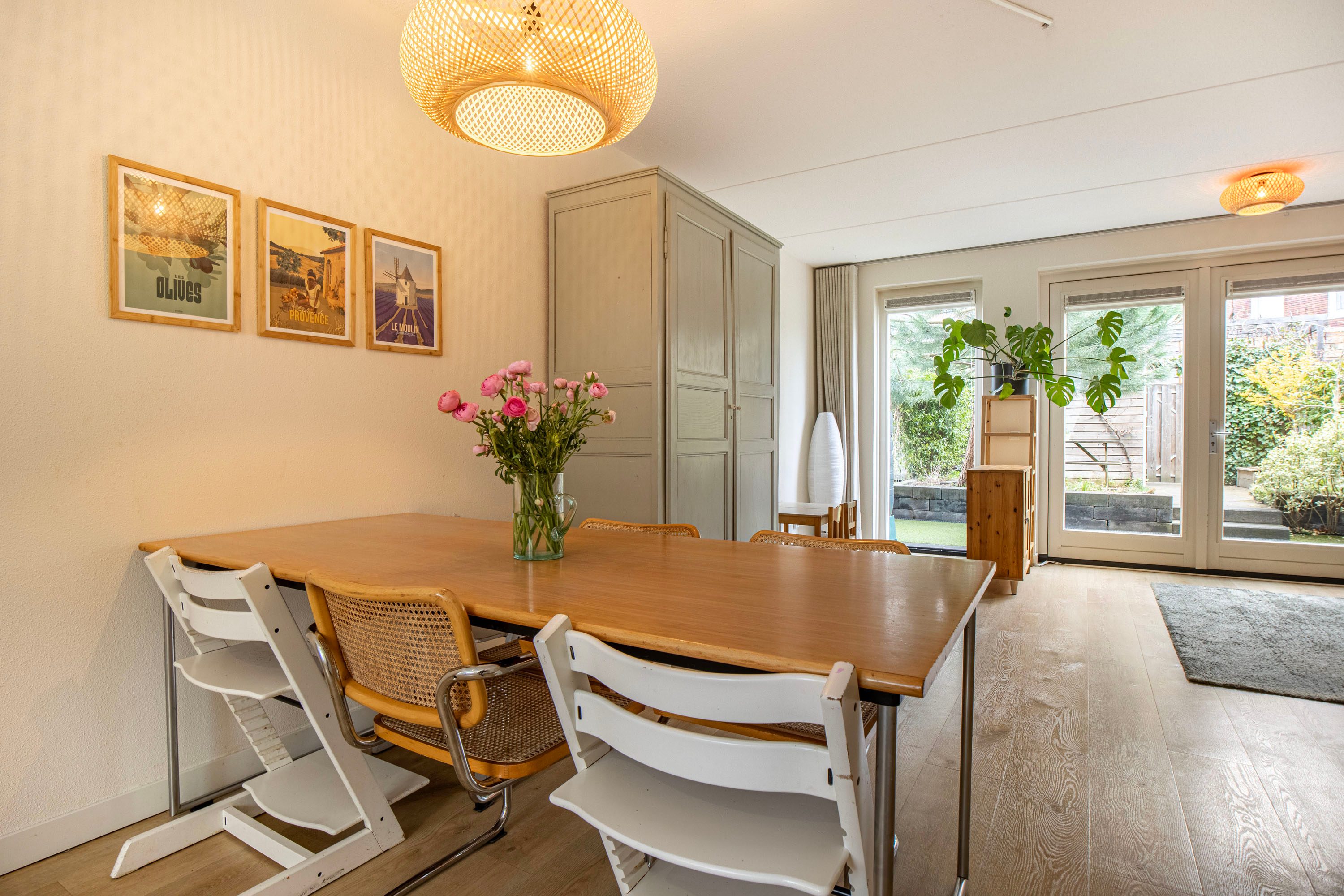 De leefruimte is direct een fijne binnenkomer: een lichte en open woonkamer met voldoende ruimte voor zowel een comfortabele zithoek als een gezellige eethoek. De openslaande deuren zorgen voor een prettige verbinding met de tuin en laten veel daglicht binnen.