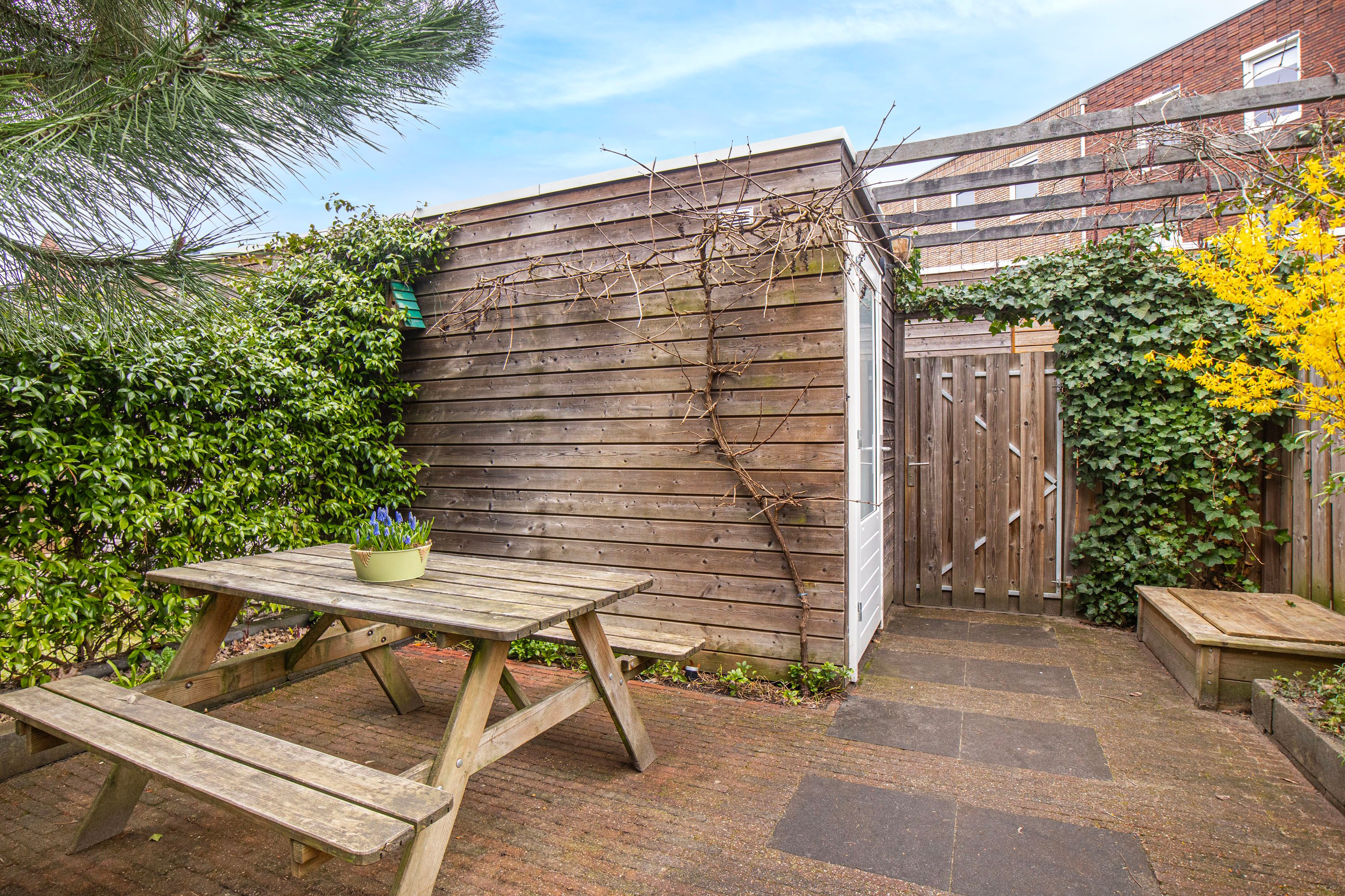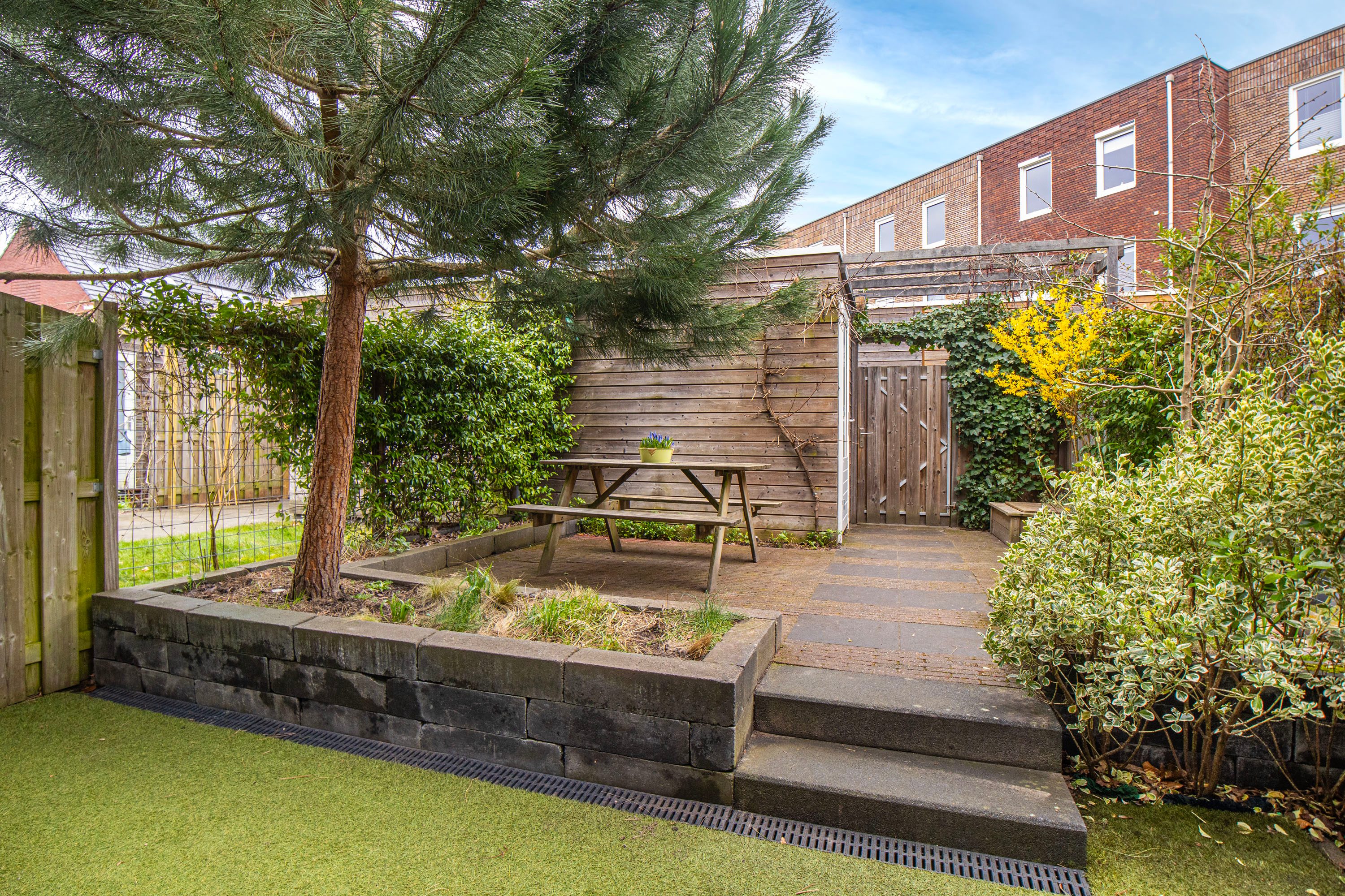 De achtertuin ligt op het oosten, waardoor je hier in de ochtend en vroege middag heerlijk van de zon kunt genieten. De tuin is praktisch ingericht en beschikt over een achterom en een houten berging, ideaal voor het stallen van fietsen en tuingereedschap.