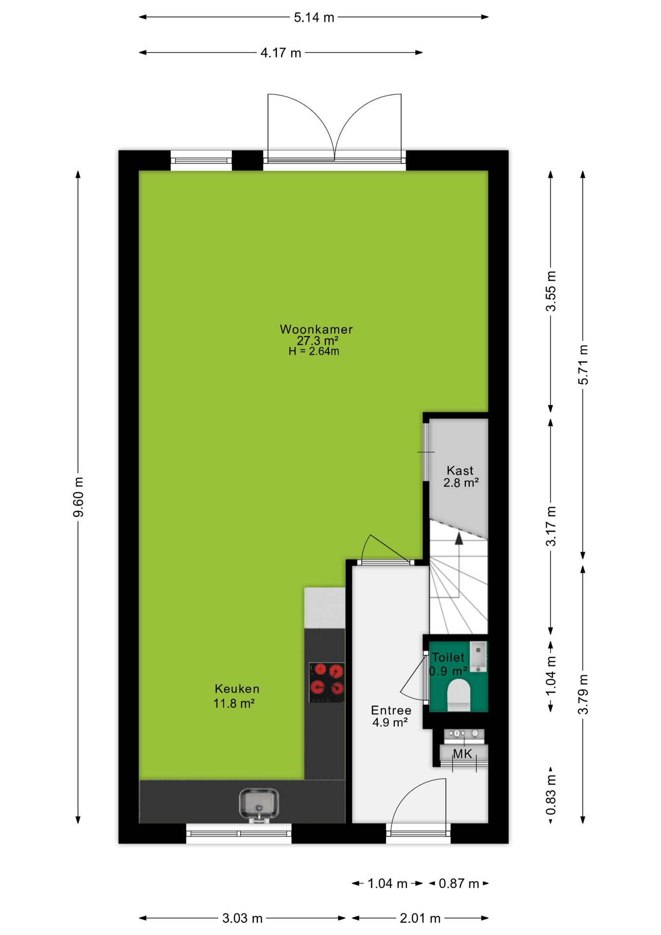Bij binnenkomst in de hal vind je de meterkast, het toilet en de trapopgang naar de eerste verdieping.