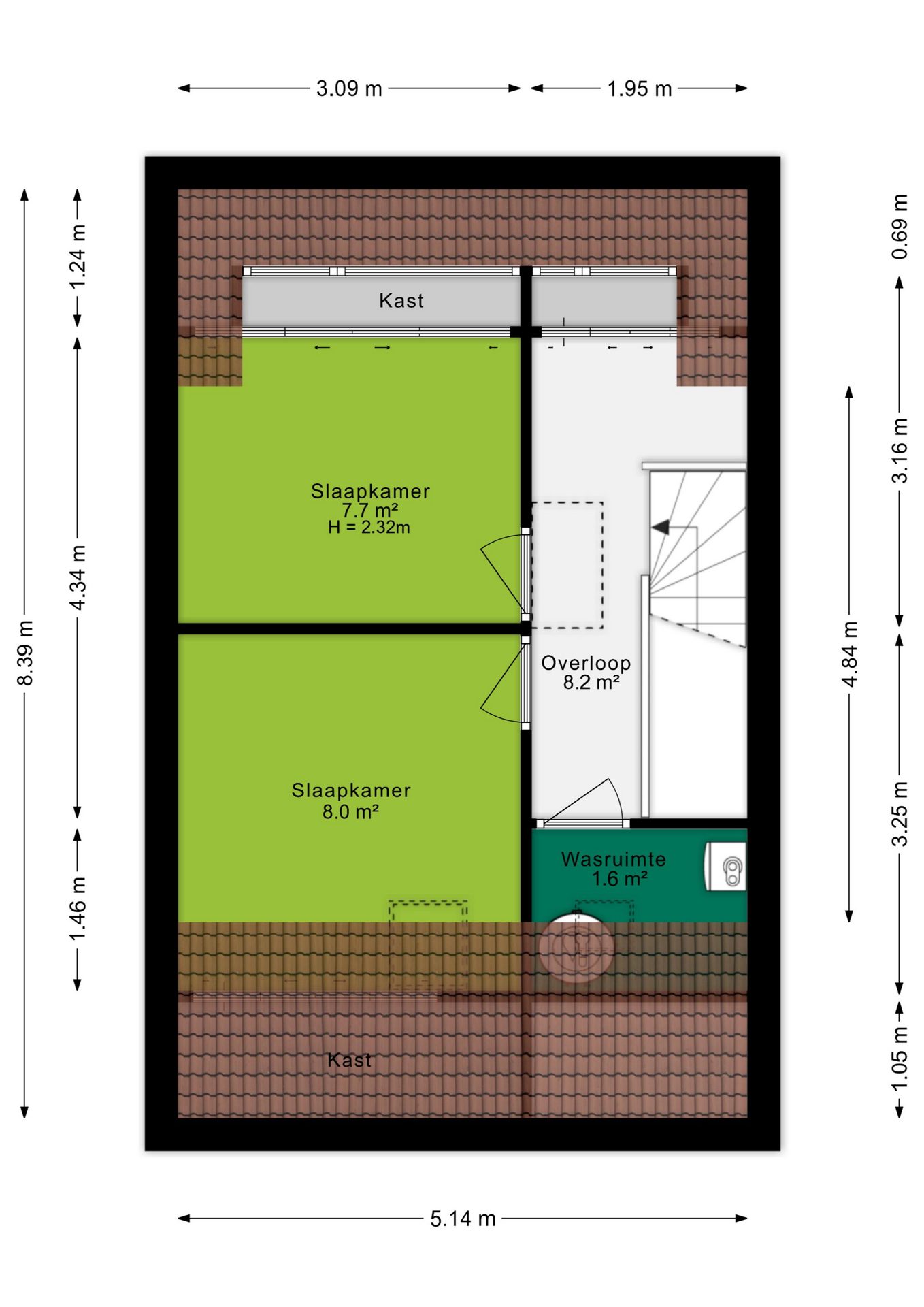 • Veel opbergruimte dankzij de vliering, ruime knieschotten en een grote trapkast op de begane grond