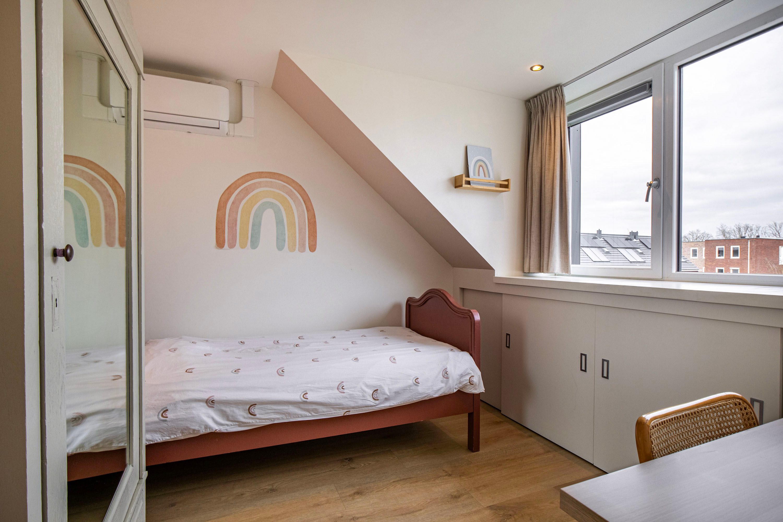 De tweede verdieping is in 2023 grondig aangepakt en biedt twee extra slaapkamers van circa 8 m². Dankzij de kunststof dakkapel met screen aan de achterzijde en het dakraam aan de voorzijde zijn dit volwaardige, lichte kamers geworden.
