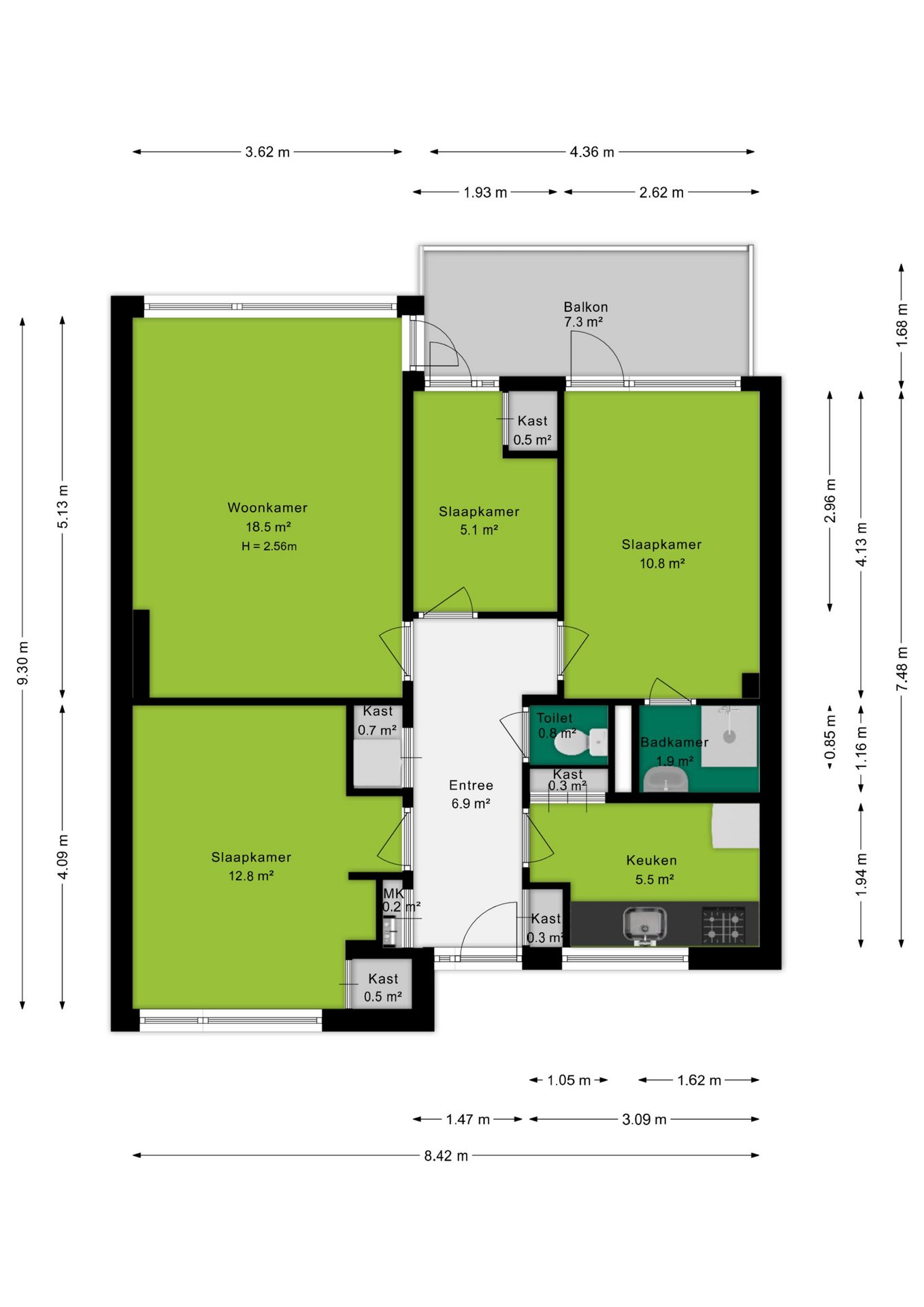 - Zonovergoten buitenruimte: Balkon van ca. 7 m² op het zuiden;