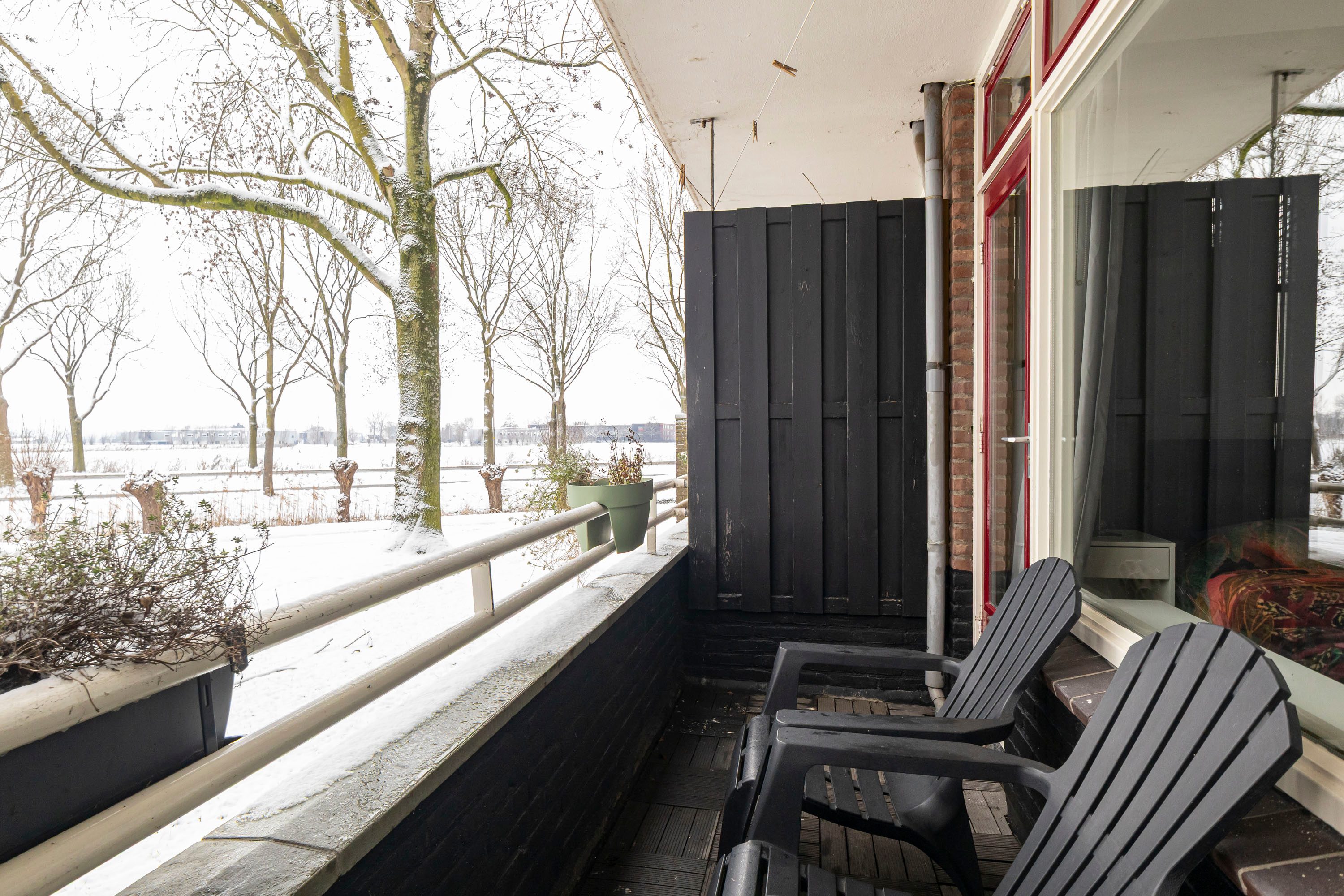 Via de woonkamer en de slaapkamer is het balkon te bereiken. Het balkon geeft een weids zicht over het groen en is gelegen op het zuidwesten. Door de prettige ligging is er altijd wel een plekje in het zonnetje of de schaduw te vinden.