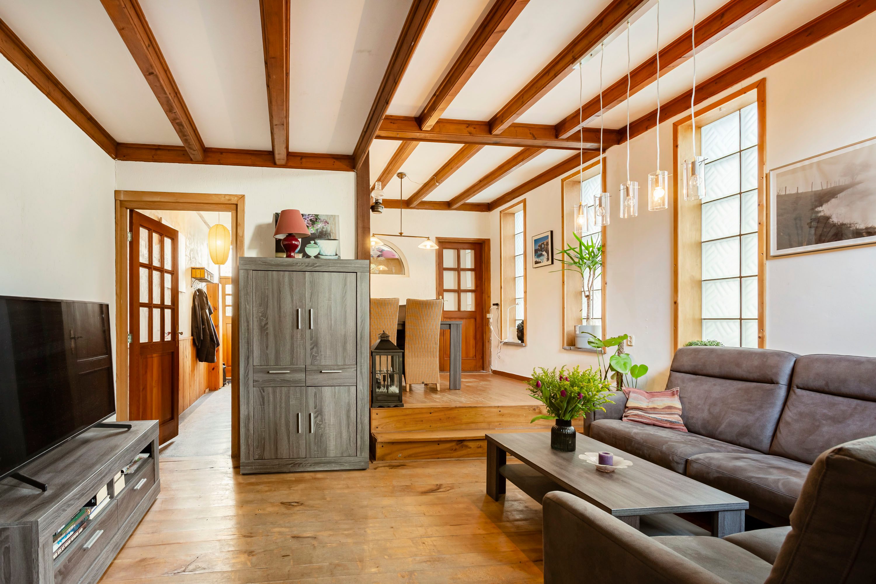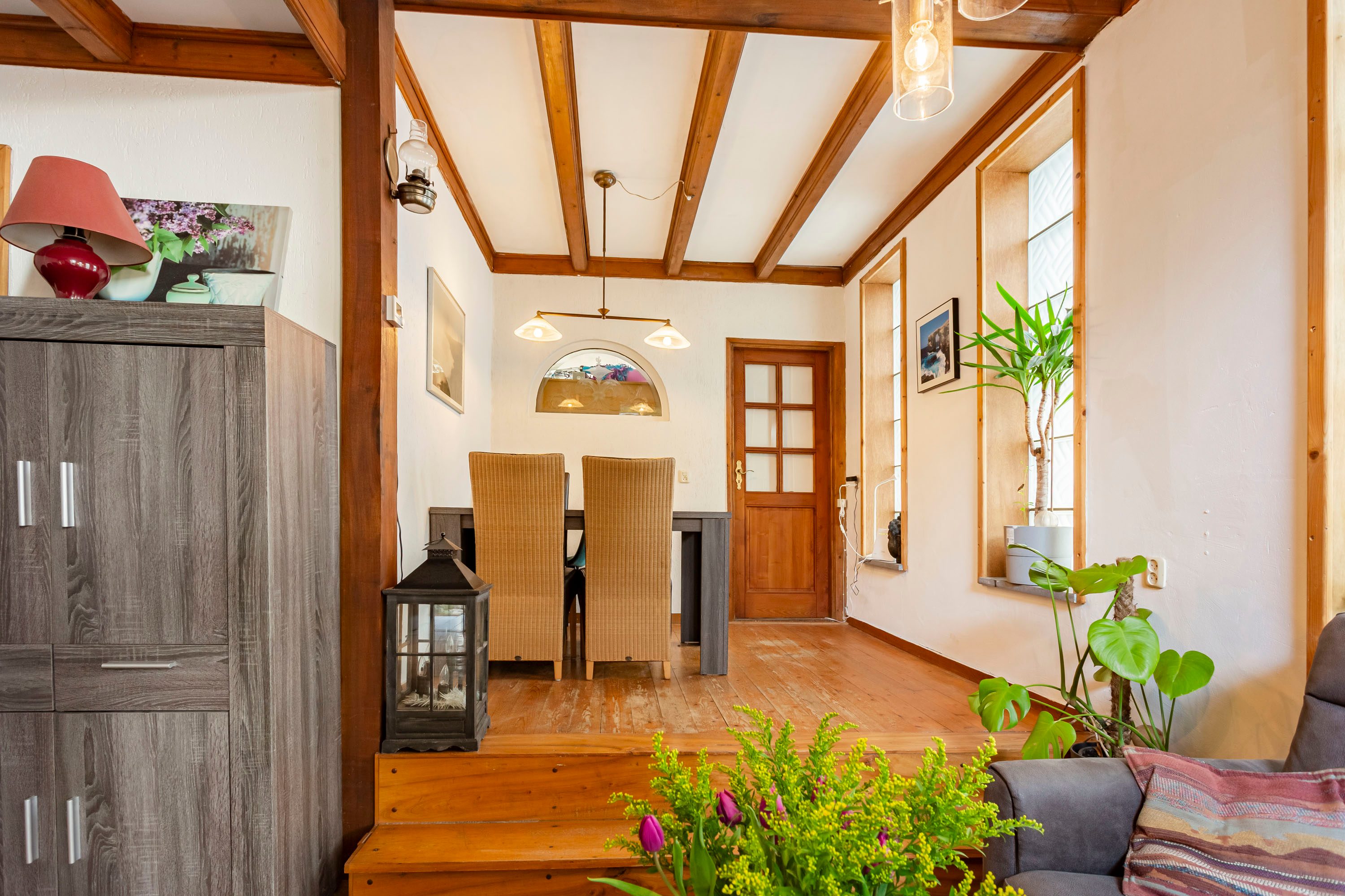 Via je eigen oprit kom je de woning binnen. In de hal begint direct het gevoel van ruimte en mogelijkheden.