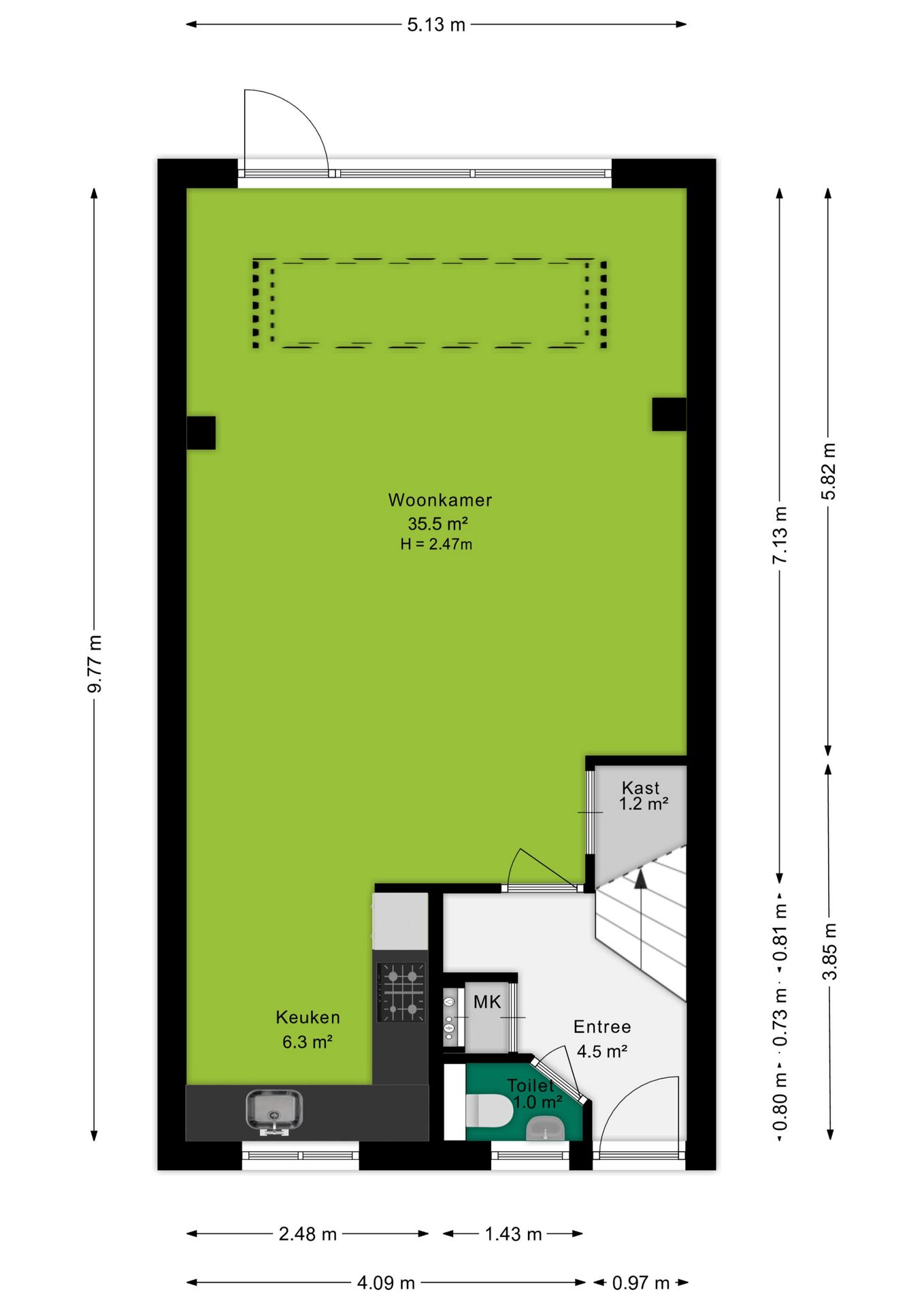Deze informatie is door ons met de nodige zorgvuldigheid samengesteld. Onzerzijds wordt echter geen enkele aansprakelijkheid aanvaard voor enige onvolledigheid, onjuistheid of anderszins, dan wel de gevolgen daarvan. Alle opgegeven maten en oppervlakten zijn indicatief.