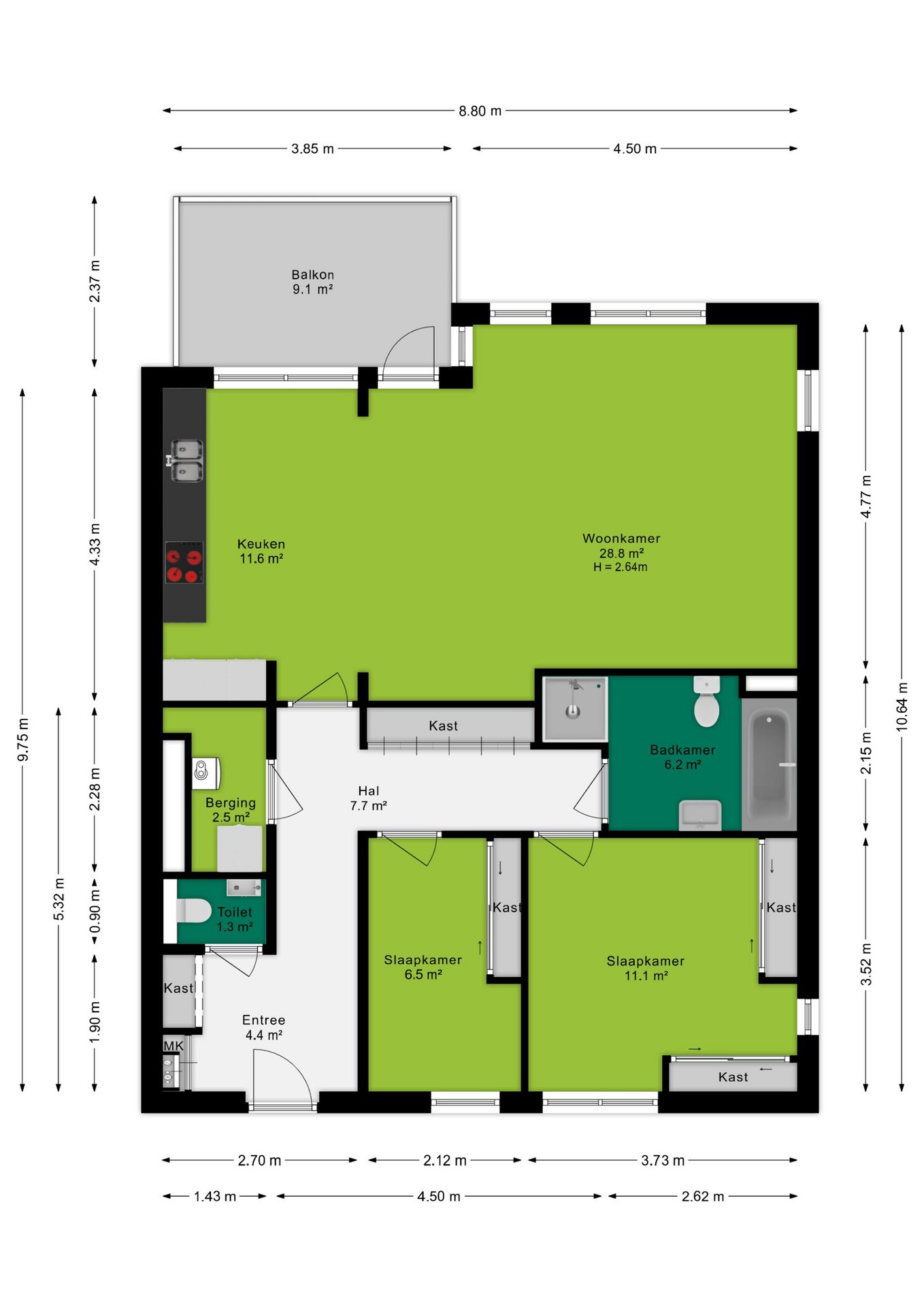 + Overdekte eigen parkeerplaats op de begane grond en privéberging in het souterrain