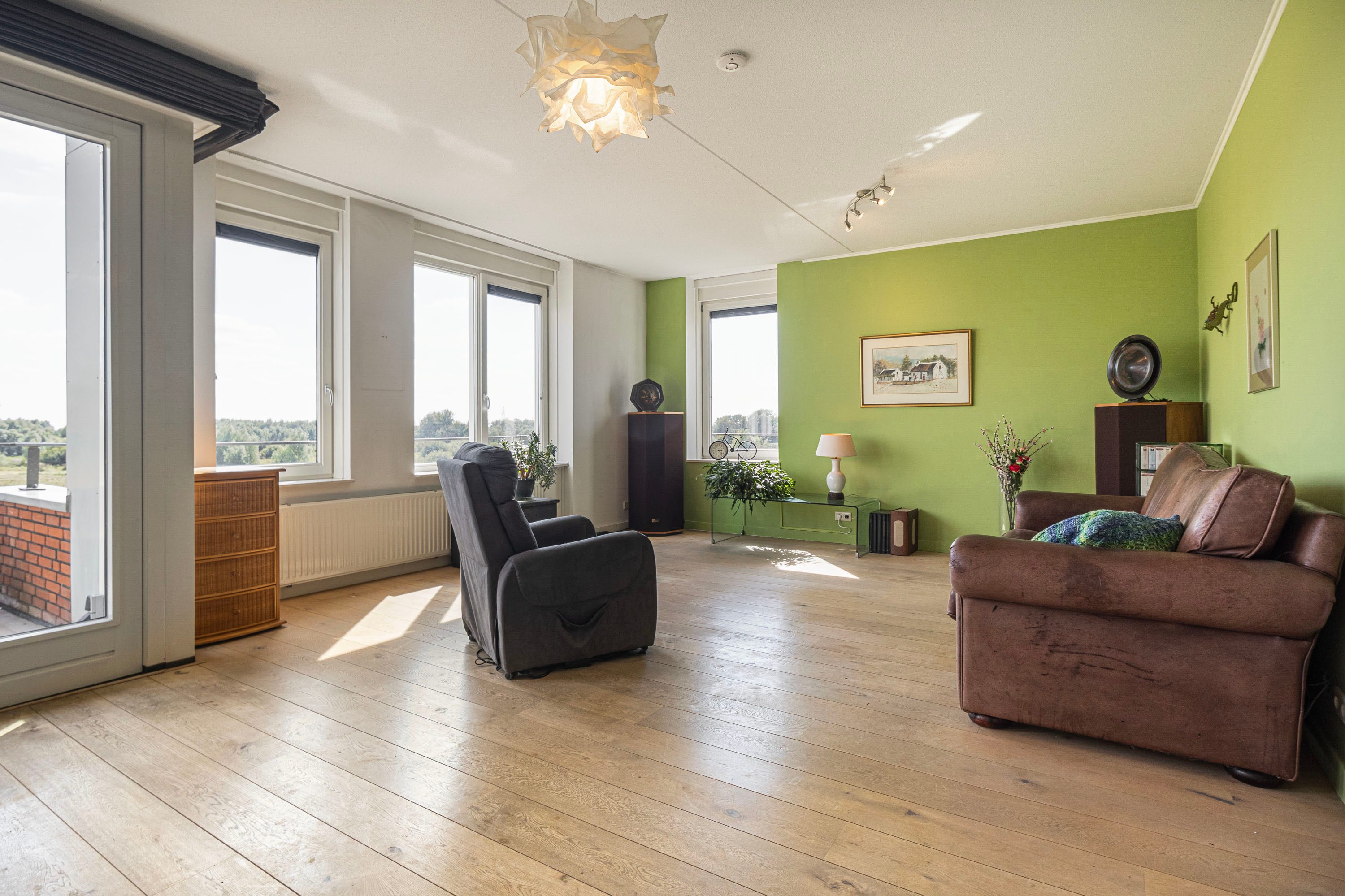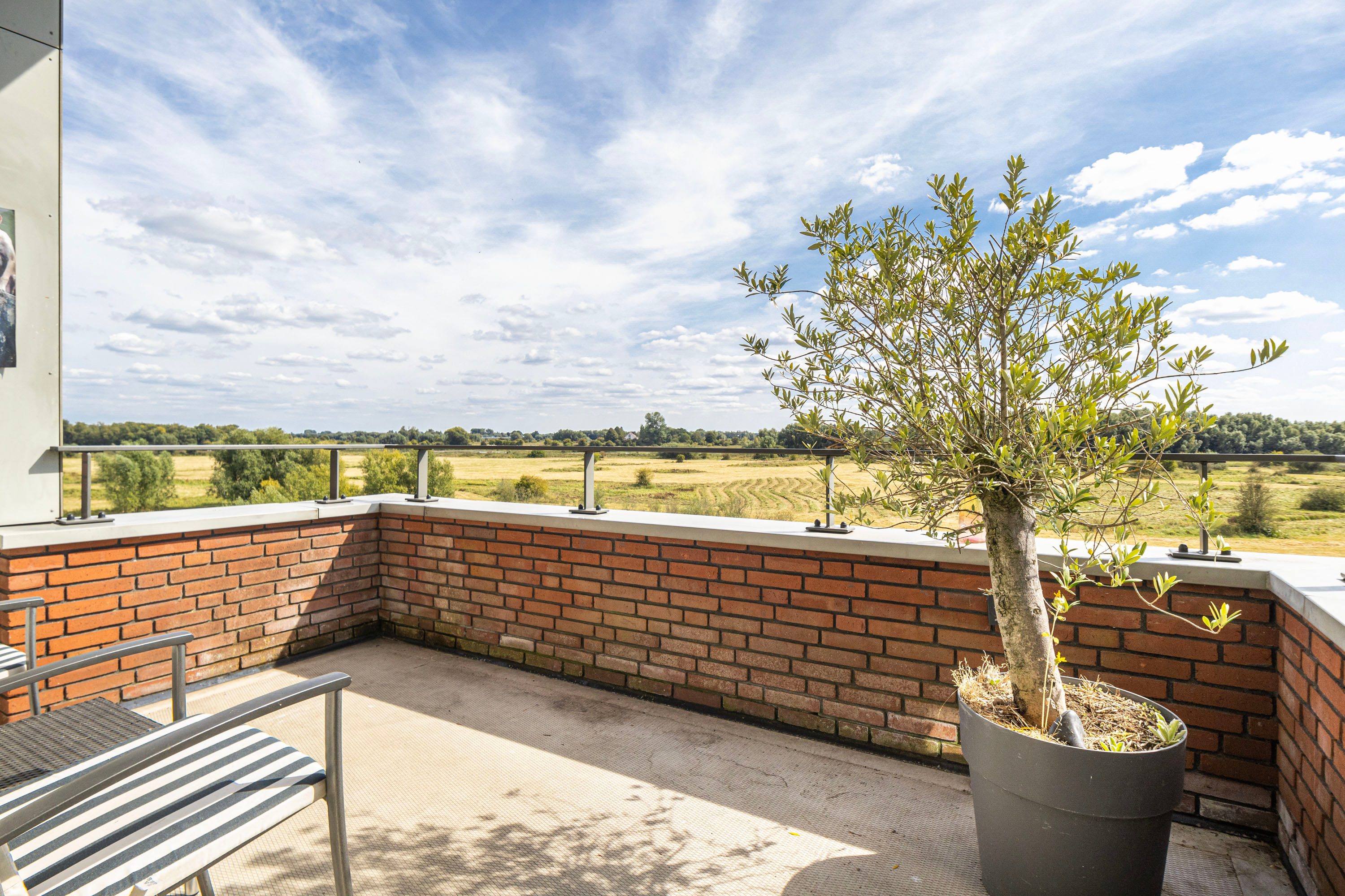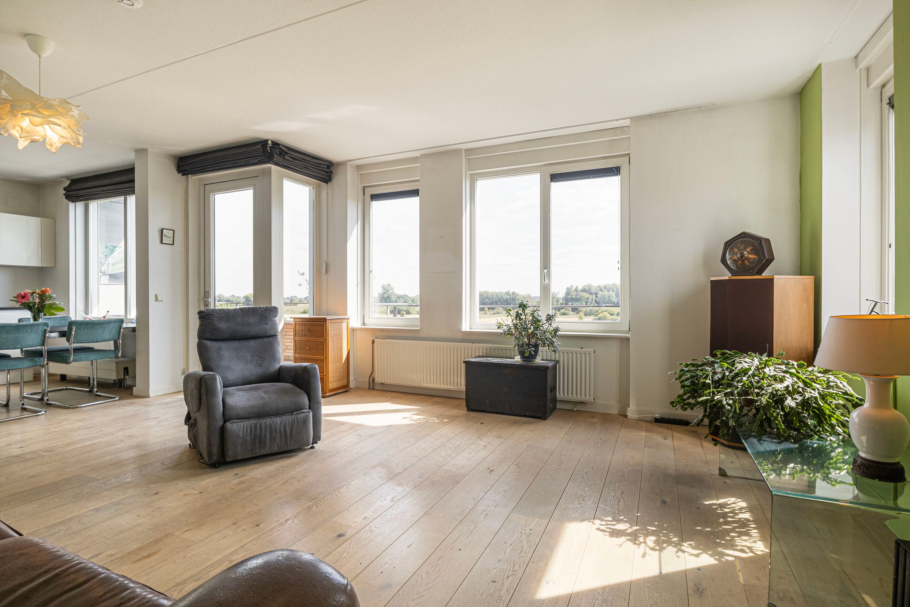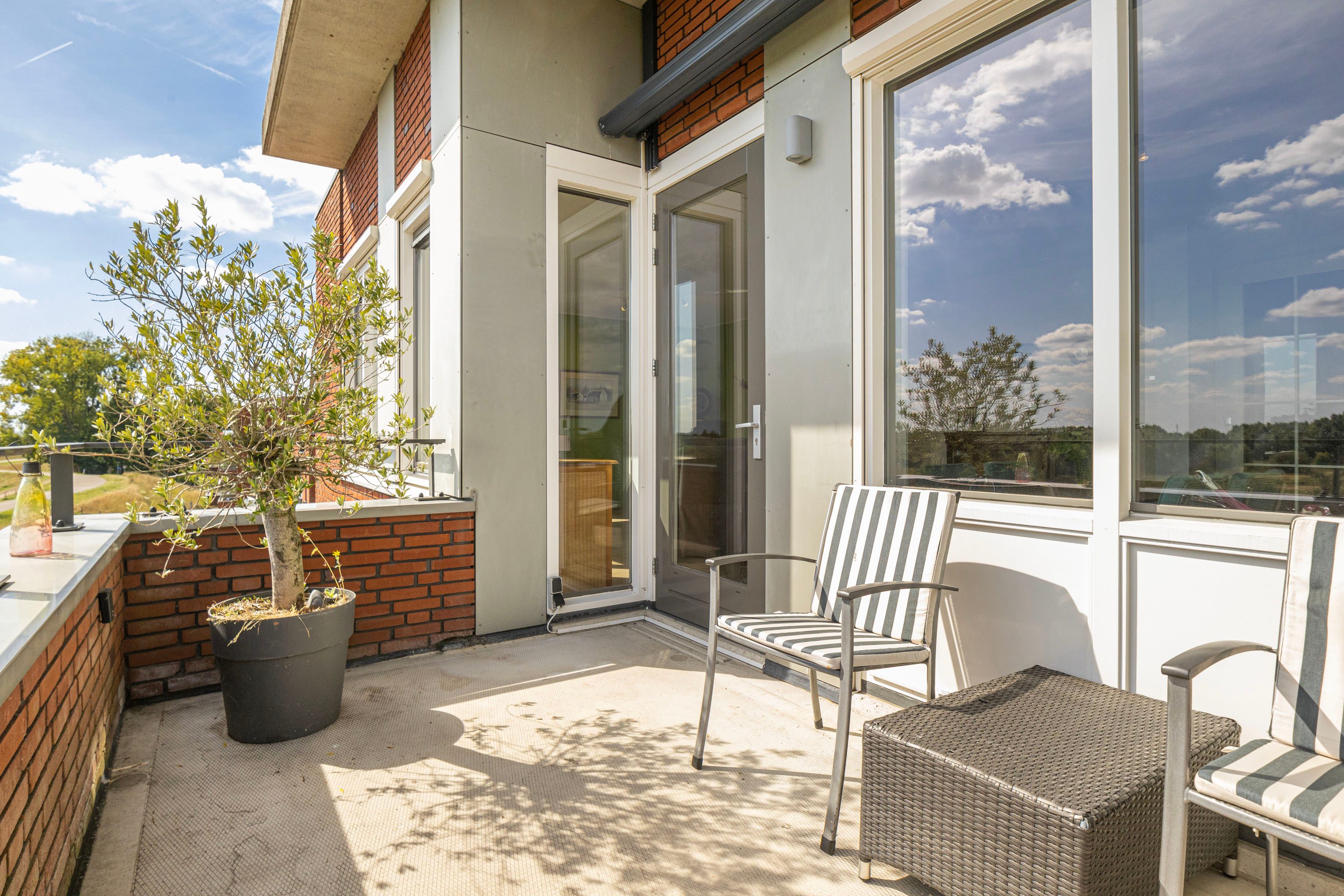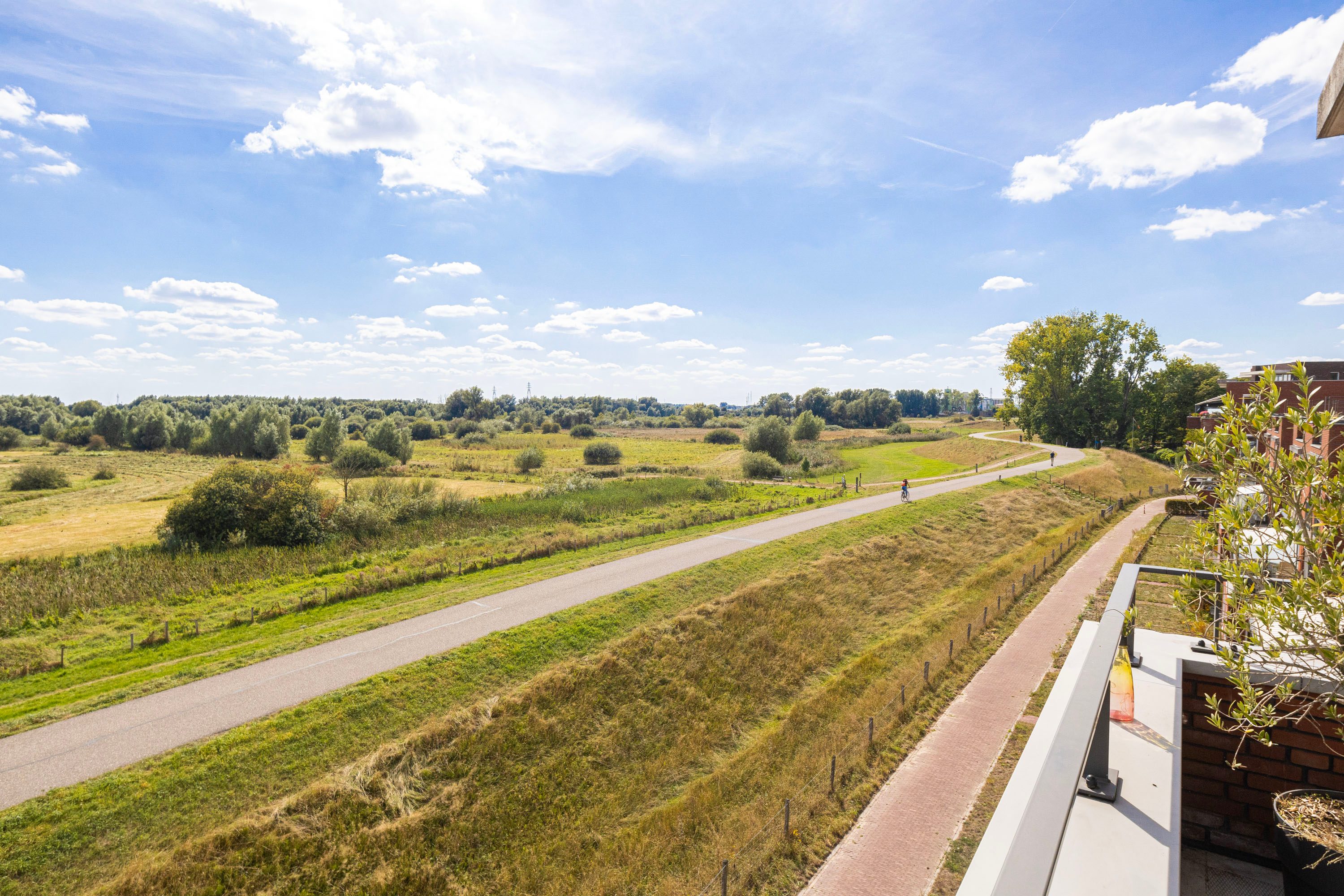 Het balkon van 9 m² op het zuiden biedt een prachtig uitzicht op de Rijn en de Grebbedijk. Hier kun je de hele dag genieten van de zon.