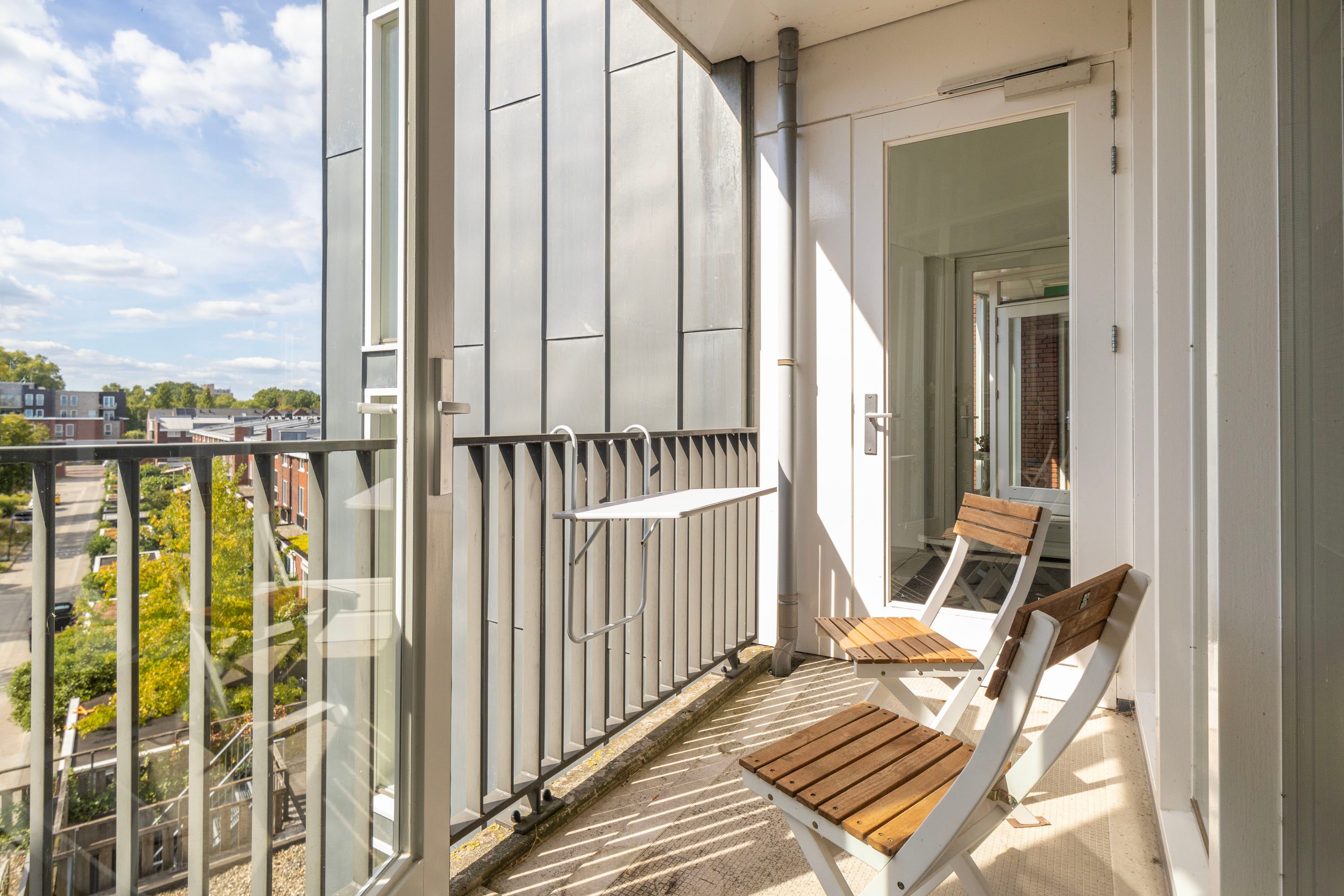 + Zonnig balkon op het zuiden, met zonnescherm