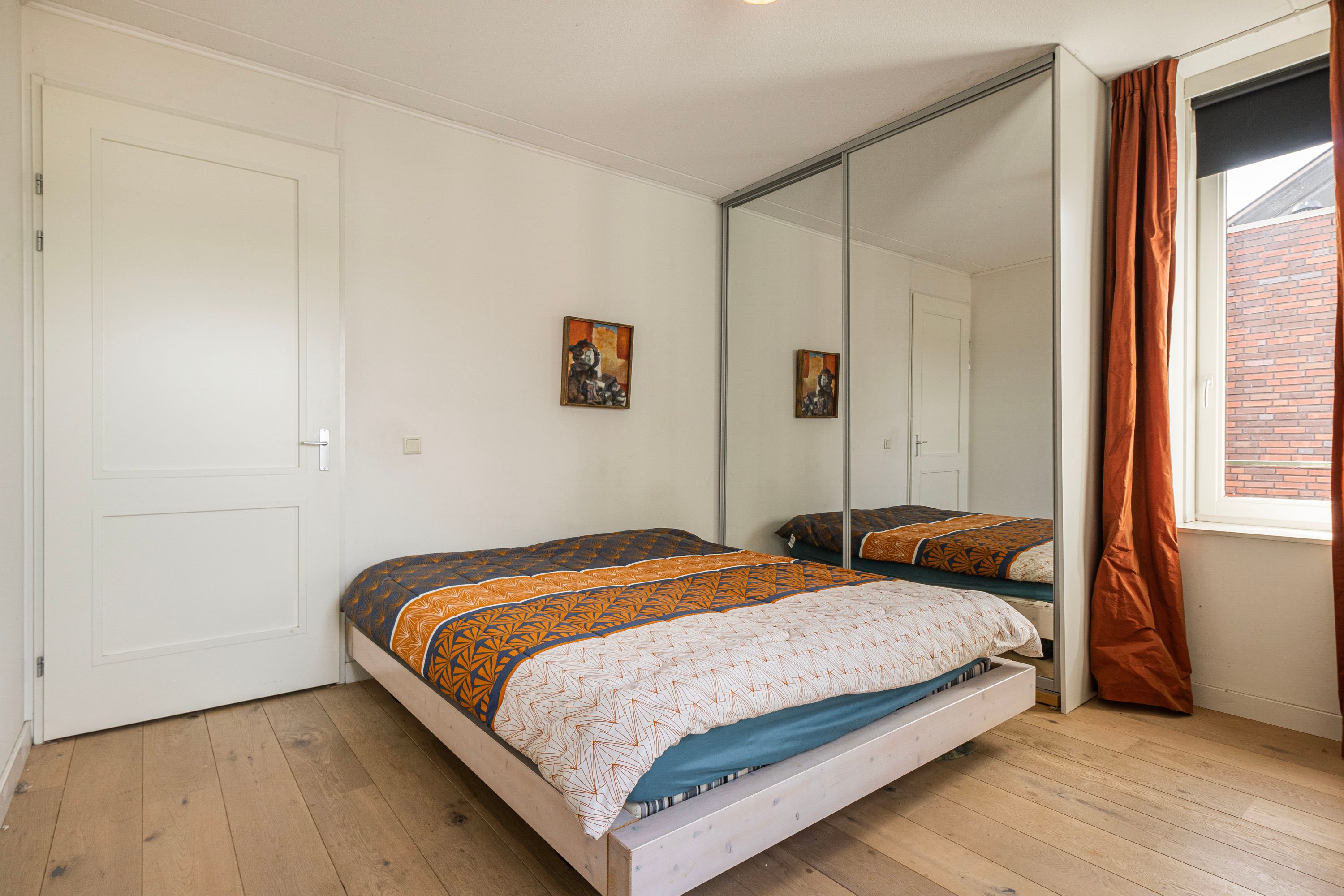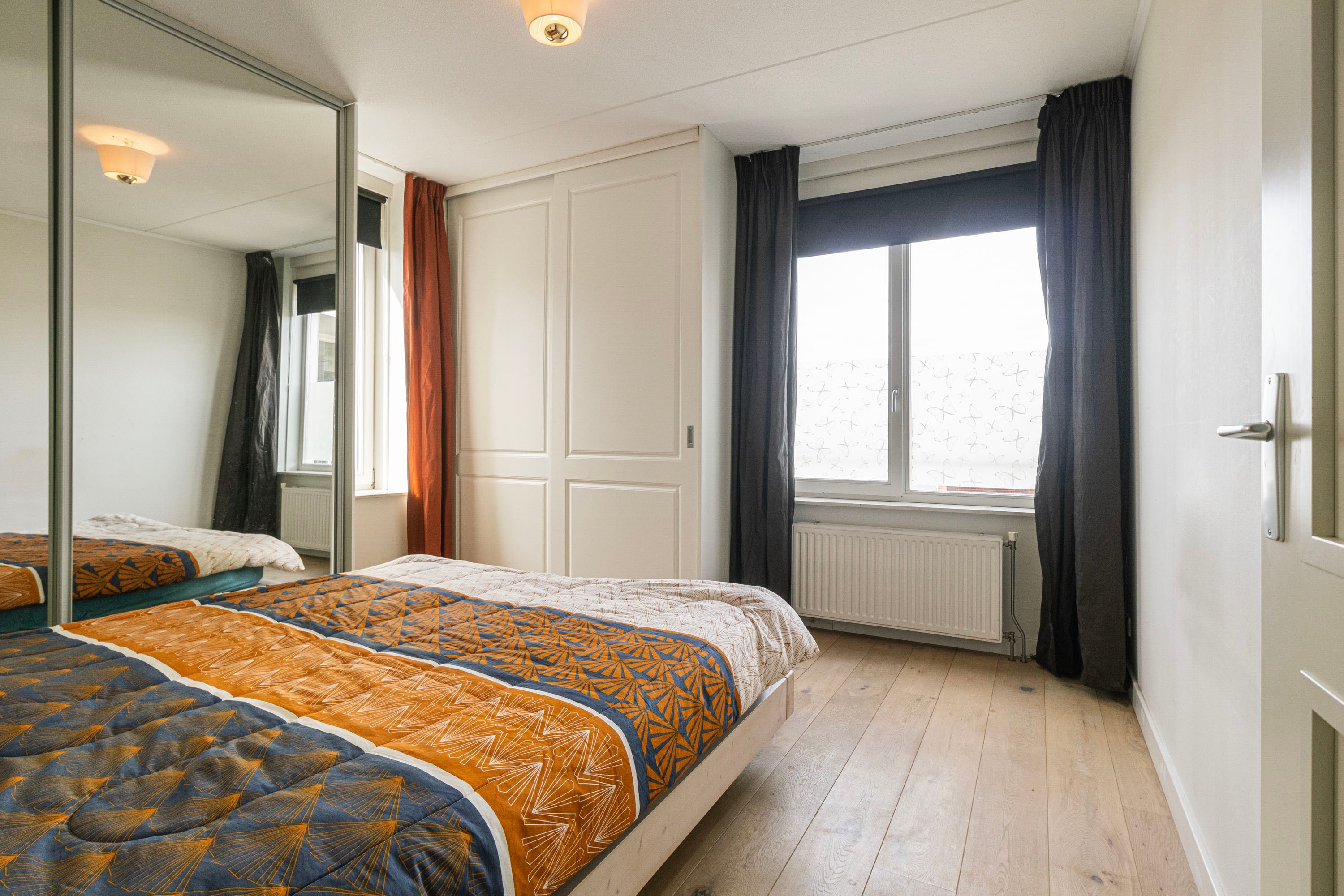 Verder zijn er twee slaapkamers van circa 11 m² en 7 m², beide voorzien van vaste kastenwanden. De badkamer is compleet ingericht met een ligbad, douche, toilet en wastafel. De interne berging biedt plek voor de cv-ketel (garantie hierop is nog aanwezig), de wasmachine en extra opslag.