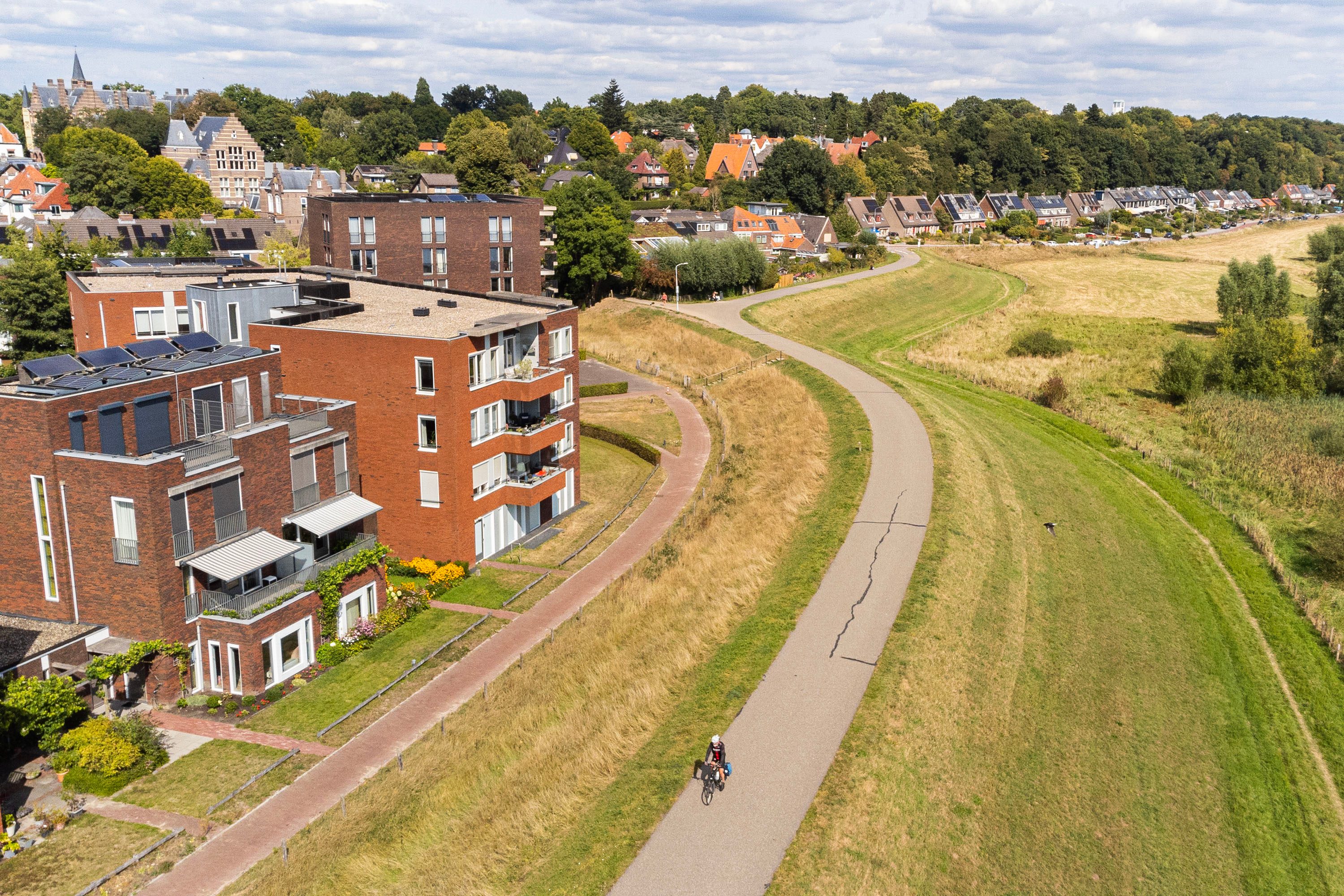 + Uitzicht op de Grebbedijk en de Rijn