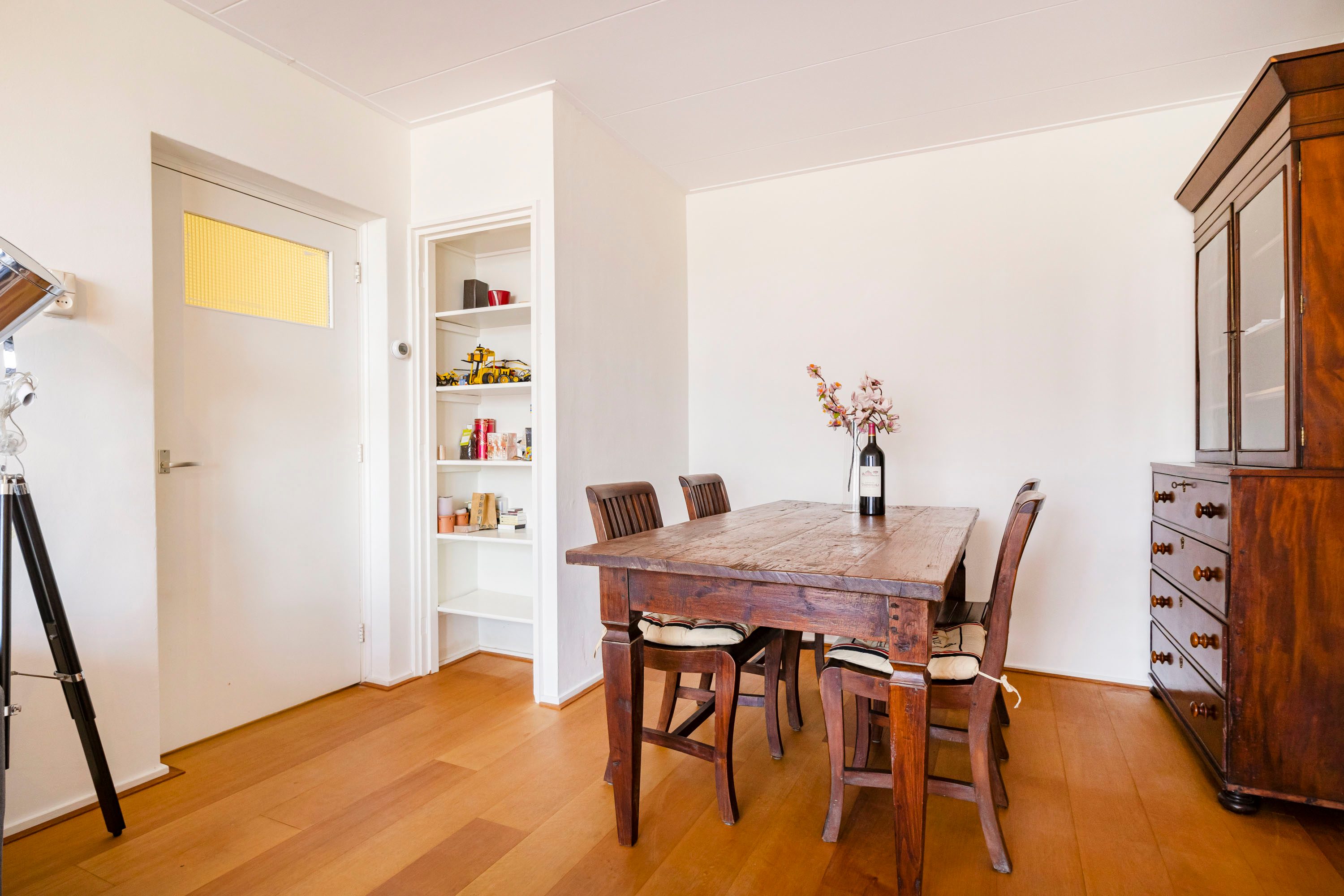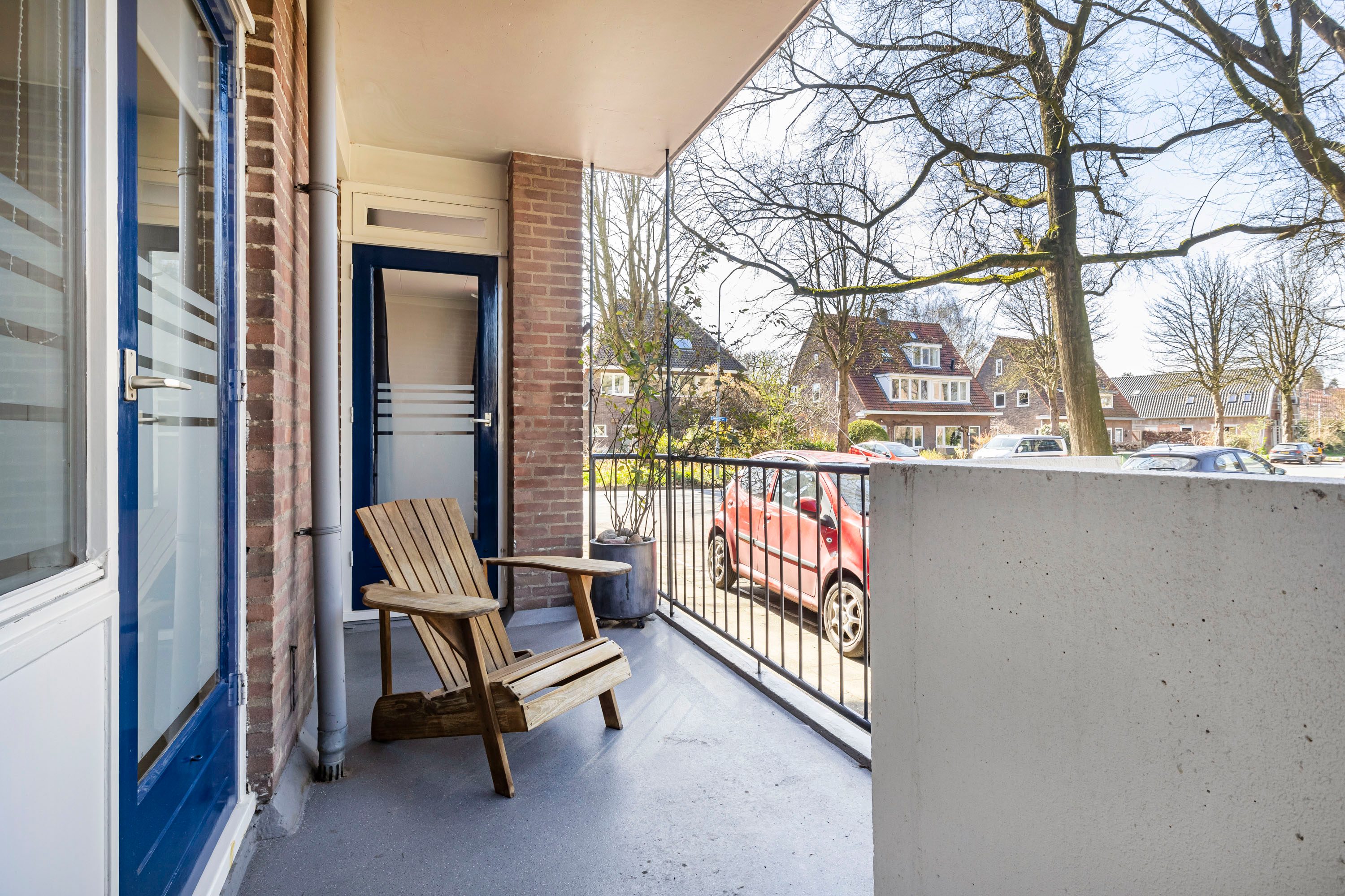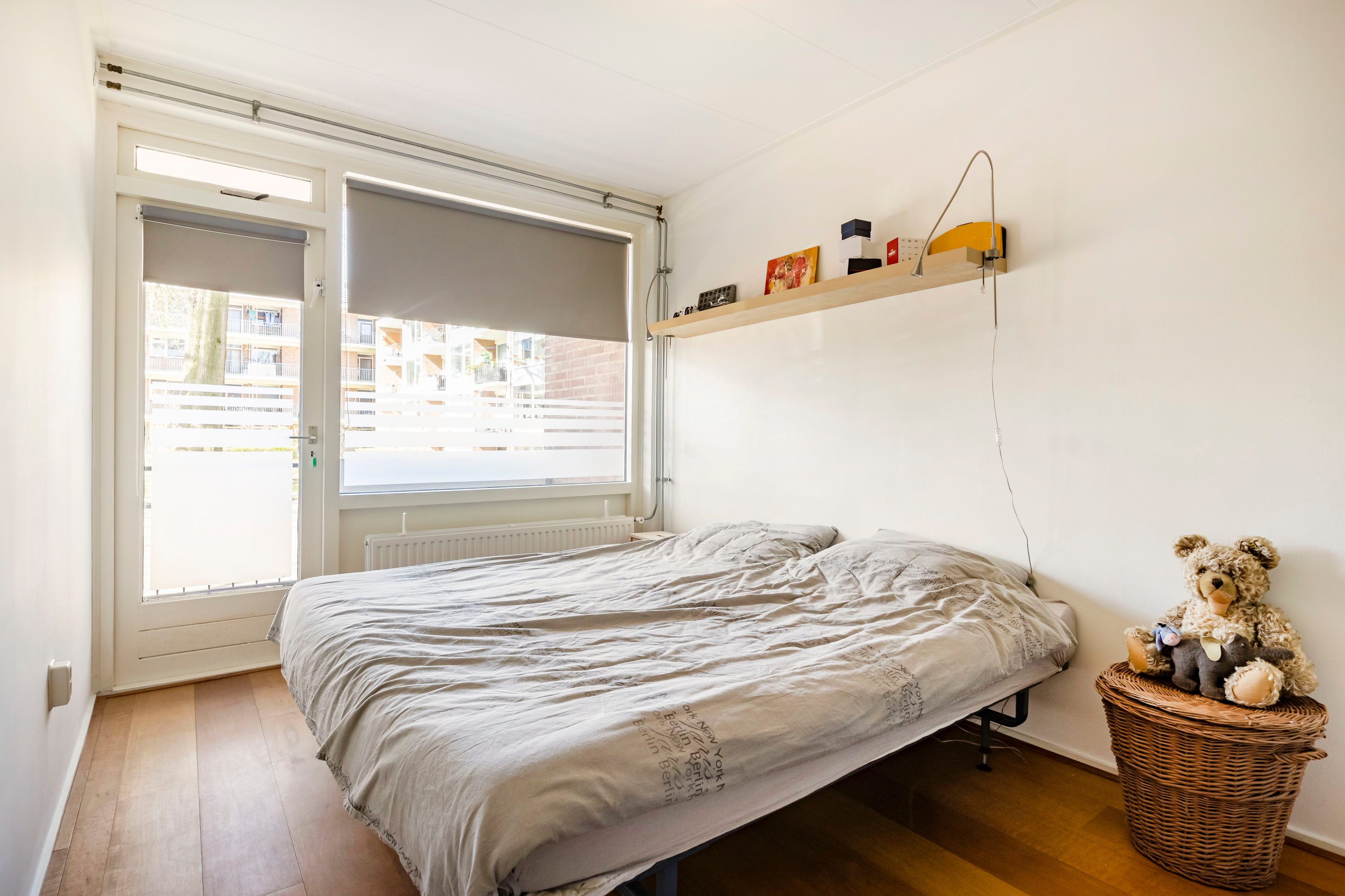 Bij binnenkomst in de hal is er toegang tot de moderne meterkast (6 groepen), de opbergkast, de keuken, de toiletruimte, de slaapkamers, de woonkamer en een vaste kast welke perfect als ruime kapstok fungeert. De woonkamer is een fijne, lichte ruimte dankzij de grote raampartij aan de voorzijde. Daarnaast beschikt de woonkamer over een praktische vaste kast en biedt deze toegang tot het balkon, dat gelegen is op het westen en zorgt voor heerlijk veel zon in de middag en avond. De woonkamer, de hal en de grote slaapkamer aan de balkonzijde zijn voorzien van een doorlopende parketvloer. Het parket in de hal is in 2025 nog een keer gewaxt.