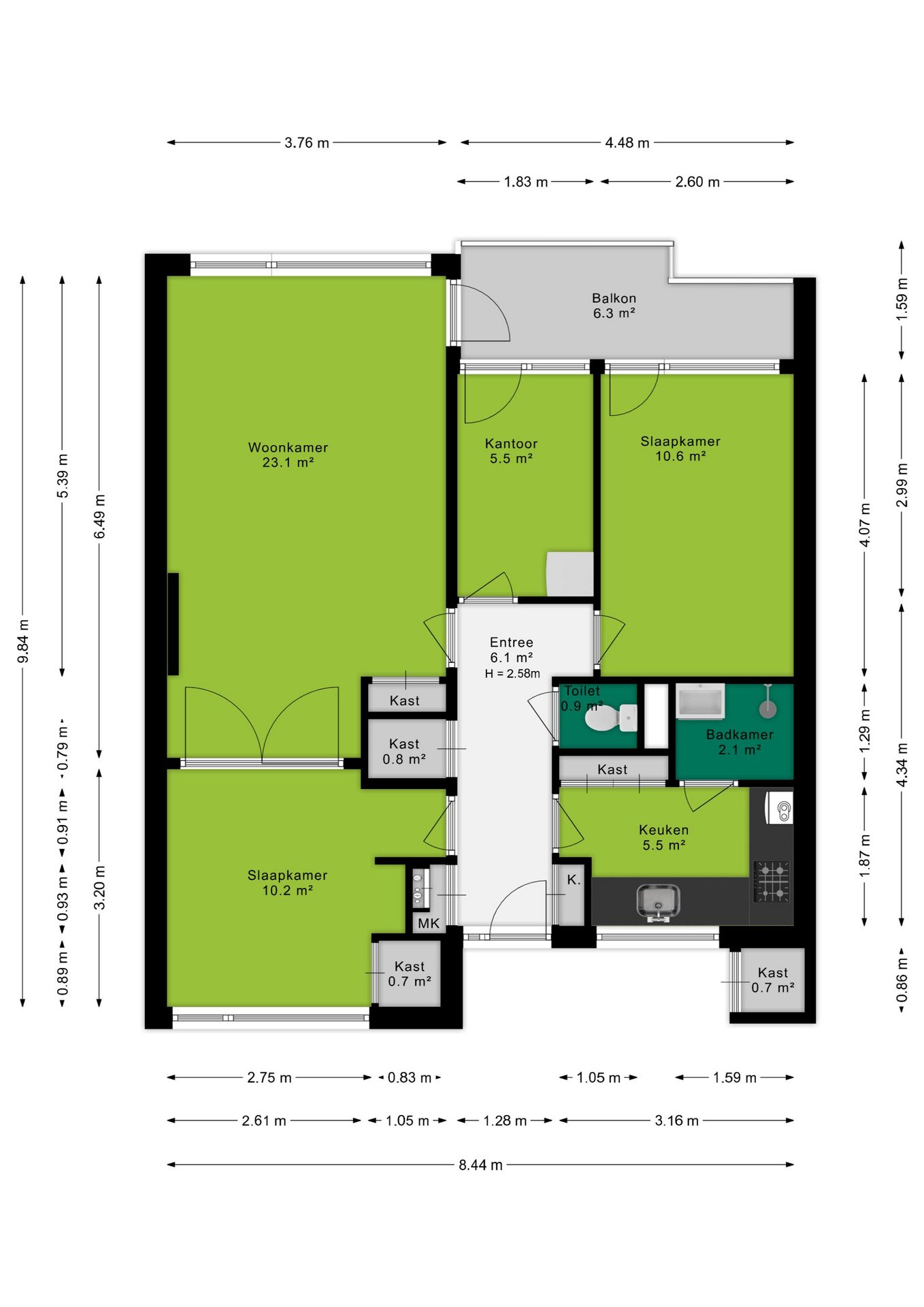 + Balkon op het westen met uitzicht over het groen