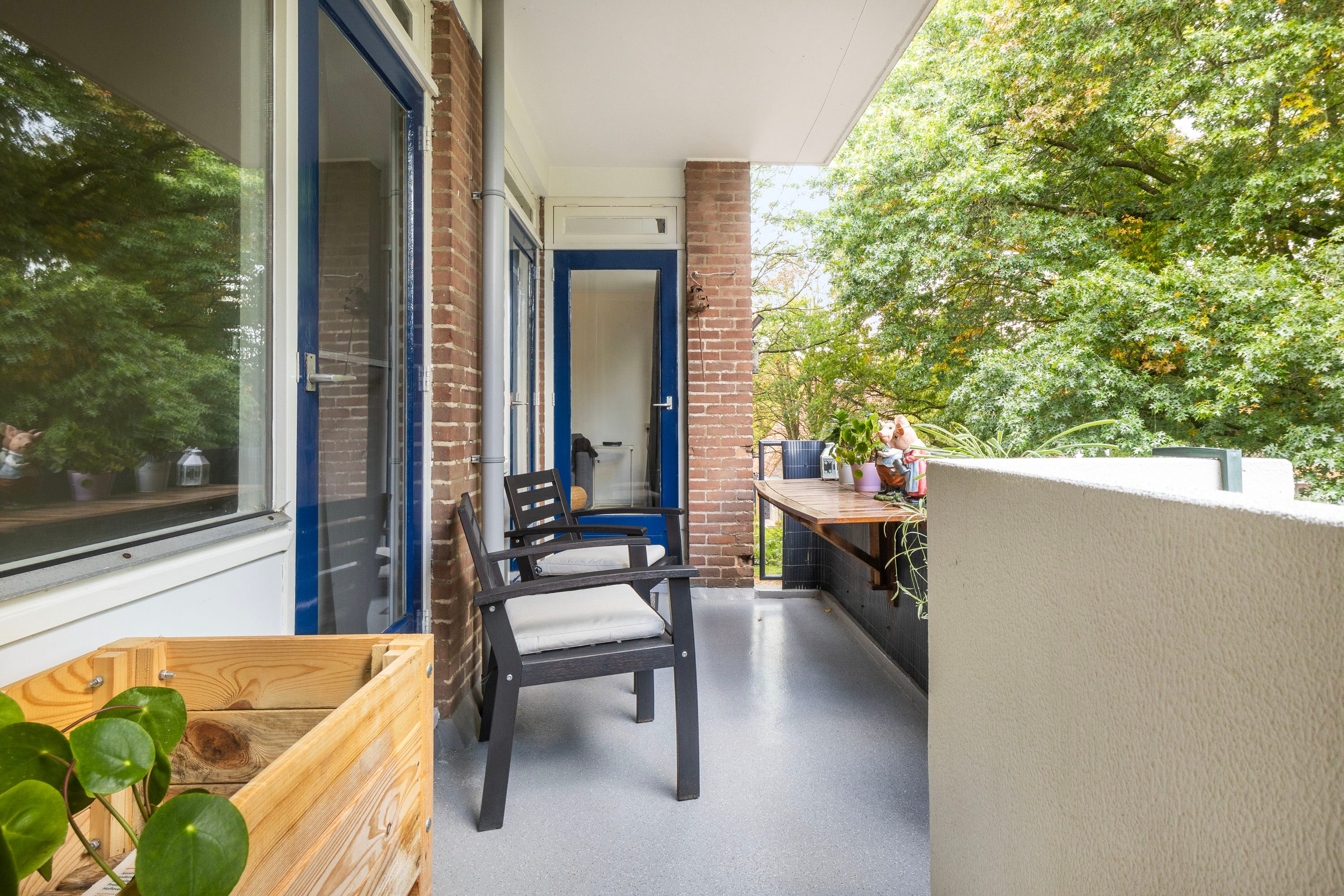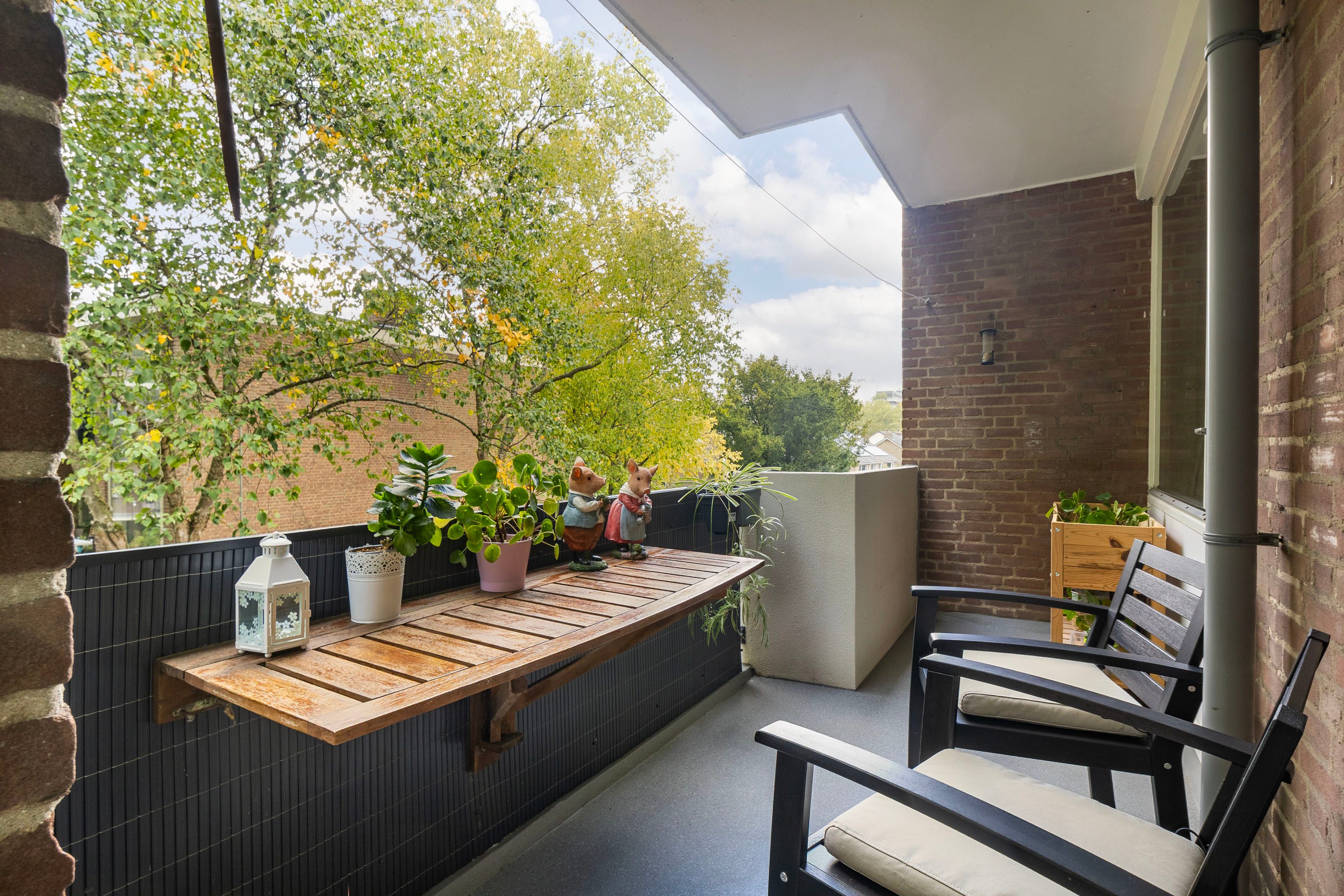 West-facing balcony overlooking greenery