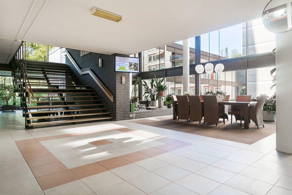 De gezamenlijke entree met intercominstallatie, lift, trappenhuis, receptiebalie (op werkdagen beschikbaar) en diverse zalen voor allerlei activiteiten.