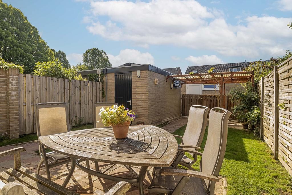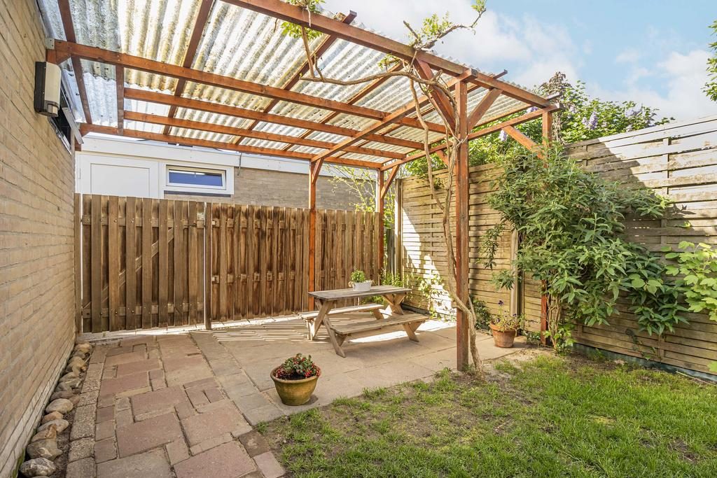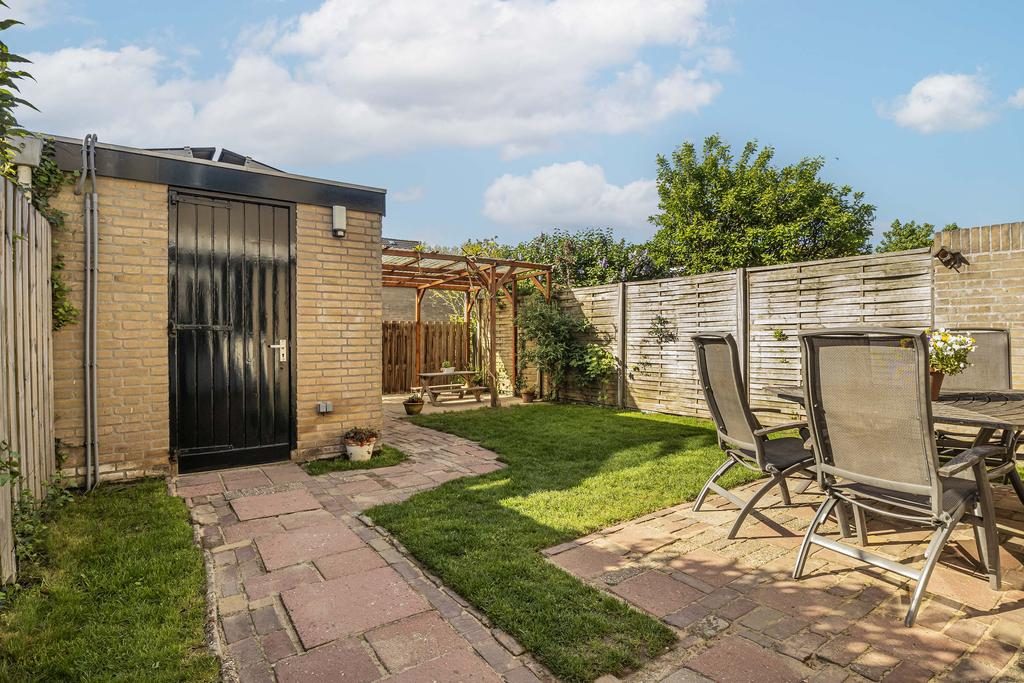 In 2020 zijn het hele huis en berging opnieuw gevoegd. De achtertuin ligt op het zuiden en bevat een stenen berging en een vorstvrije buitenkraan. De achterzijde beschikt over een elektrisch zonnescherm over de volle breedte van de woning.