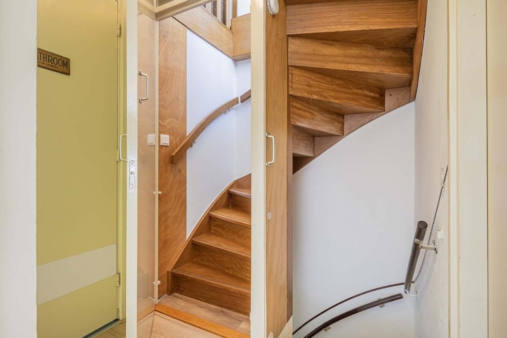 De indeling biedt volop mogelijkheden voor een gezin, een thuiskantoor of een rustige hobbykamer. De badkamer beschikt over een toilet, een douche, een wastafel en aansluiting voor wasapparatuur. Tevens is er een raam dus er is natuurlijke ventilatie. De vaste trap naar de tweede verdieping bevindt zich ook op deze etage.