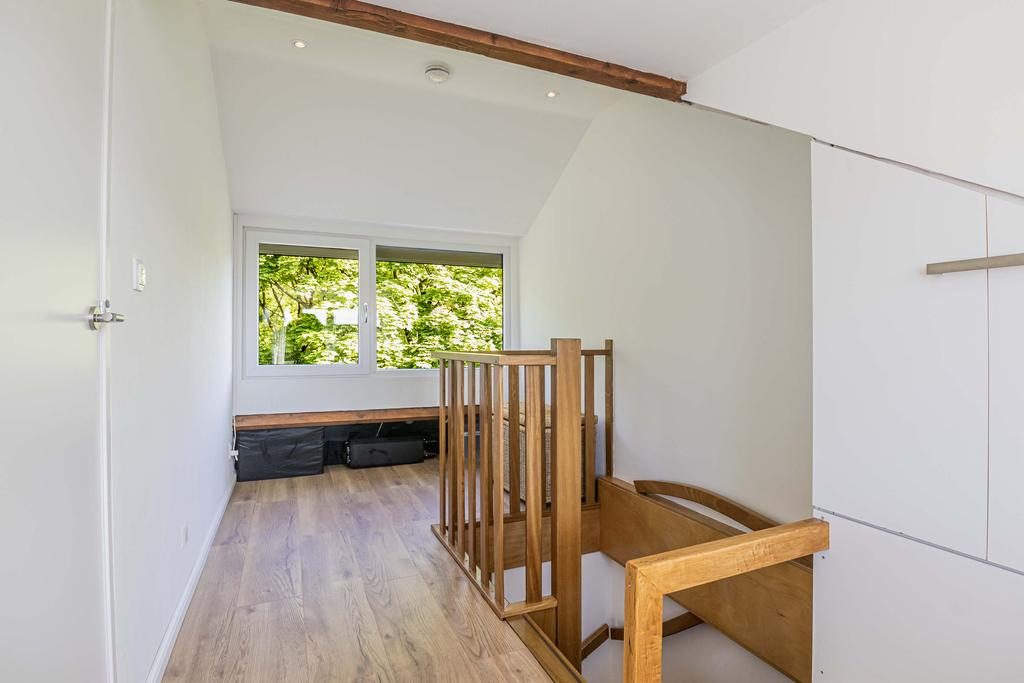 Via de trapopgang in de hal bereik je de ruime overloop op de eerste verdieping.