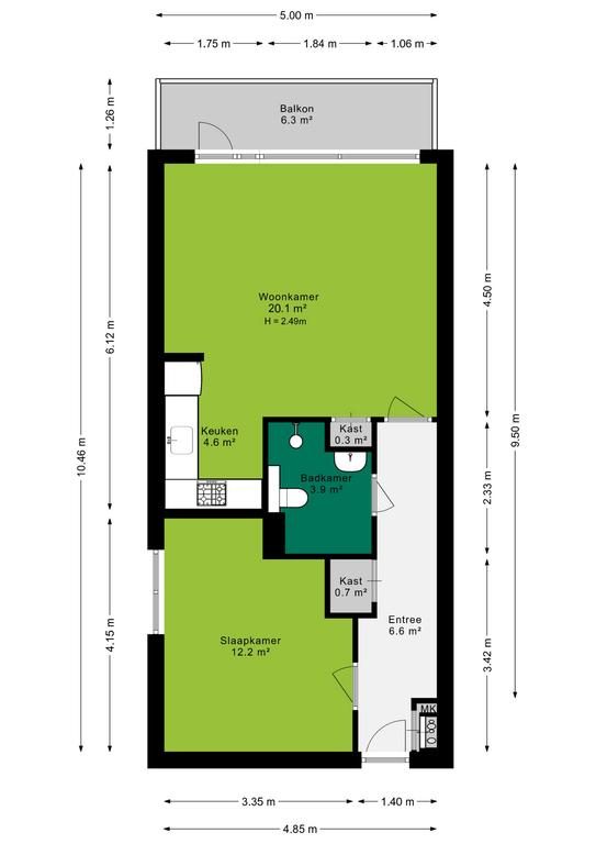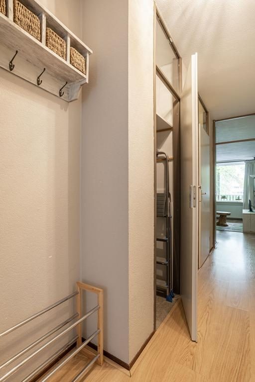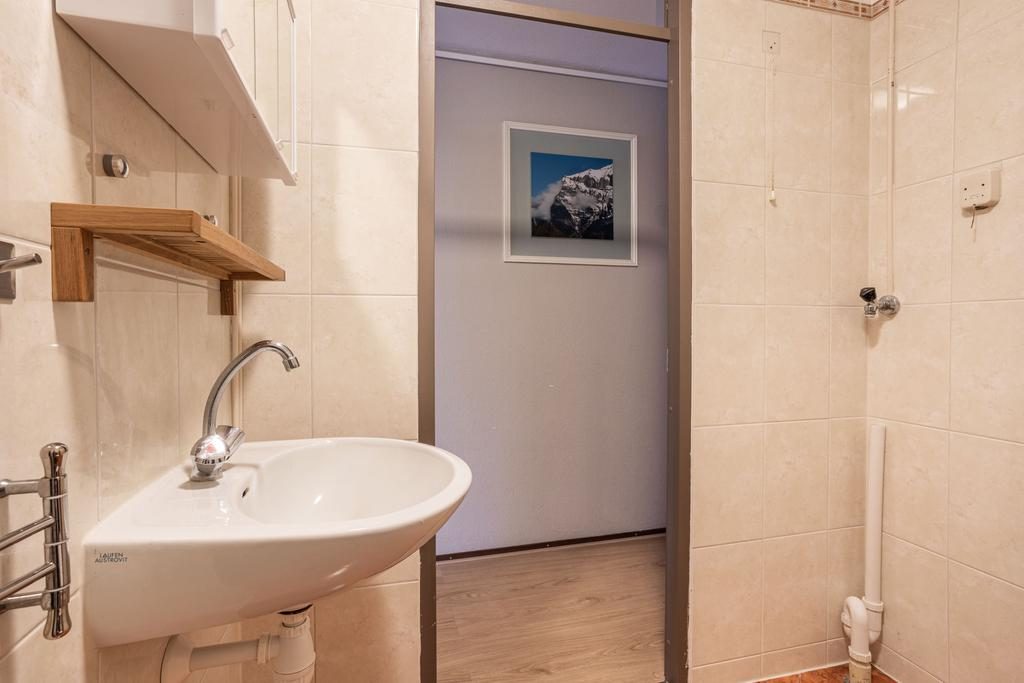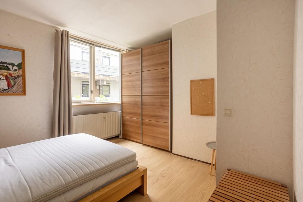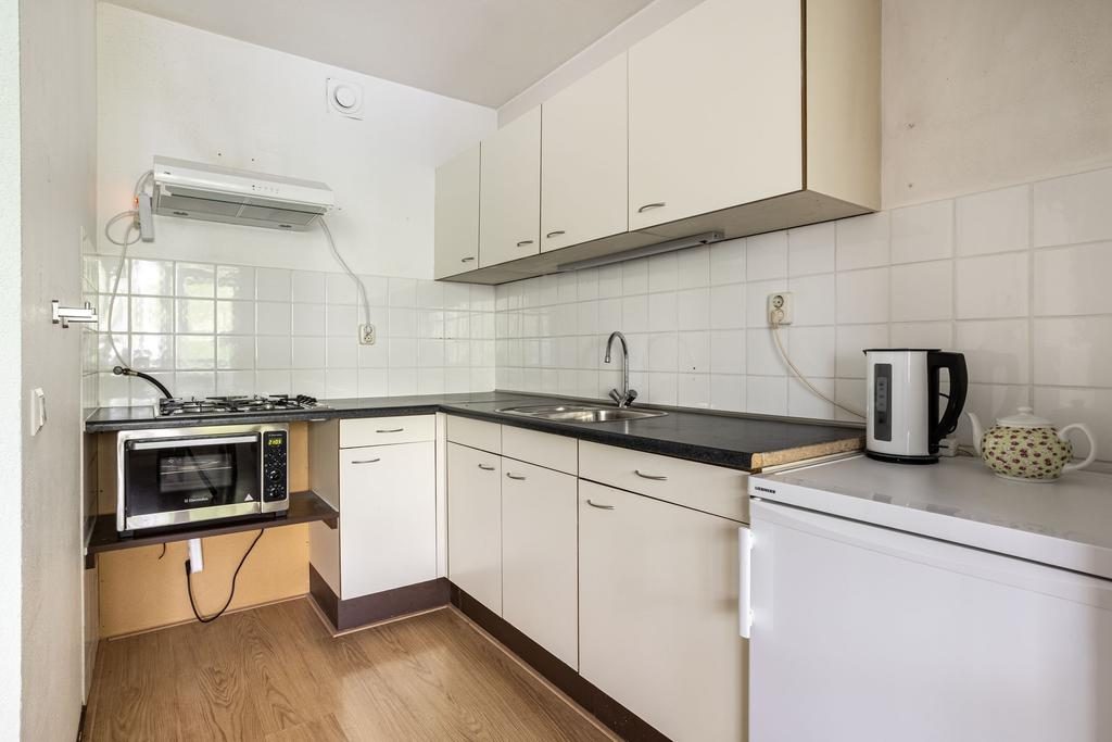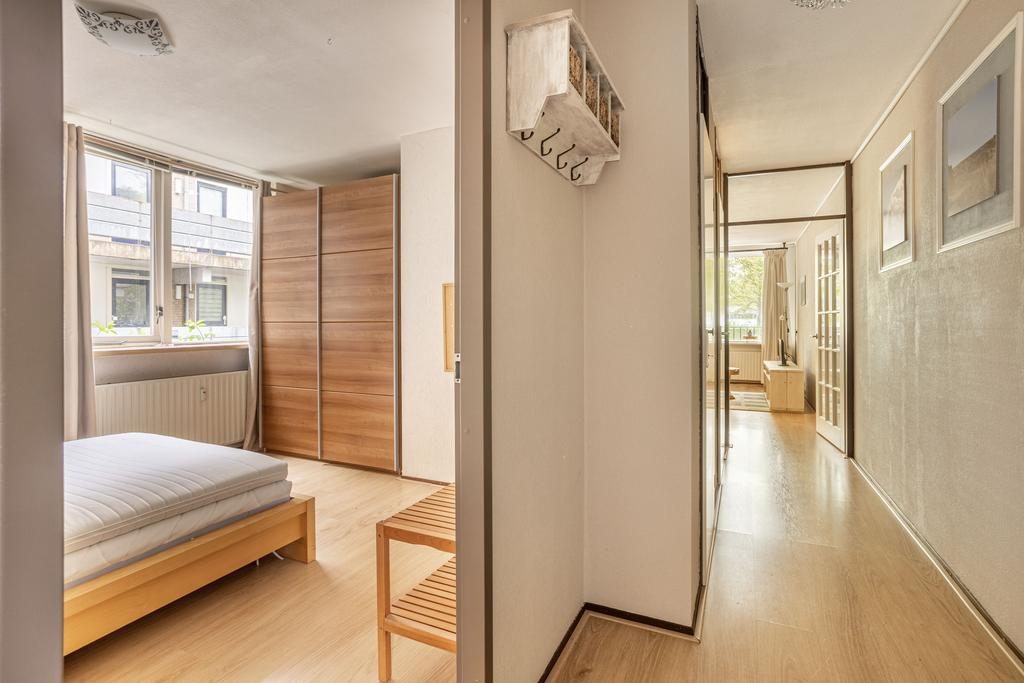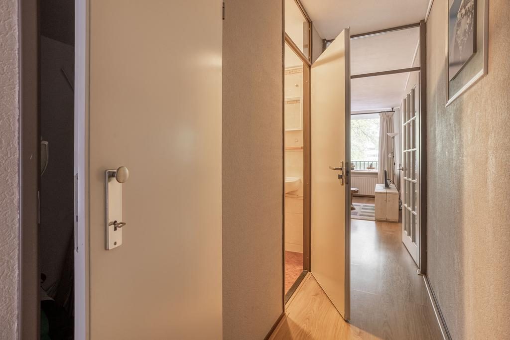 De entree met ruime hal, meterkast en grote bergingskast geeft toegang tot alle vertrekken. De sfeervolle woonkamer is goed bemeten, is voorzien van een laminaatvloer en heerlijk veel lichtinval door het grote raampartij. De open keuken is in een hoekopstelling opgesteld en beschikt over een gasfornuiskookplaat, afzuigkap en kastruimte. De ruime badkamer is opgesteld in een lichte kleurstelling en beschikt over een inloopdouche, wastafel en een toilet en de wasmachineaansluiting. De slaapkamer heeft een afmeting van 12,2m², is voorzien van een laminaatvloer en voldoende lichtinval.