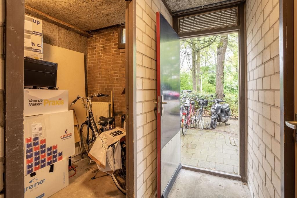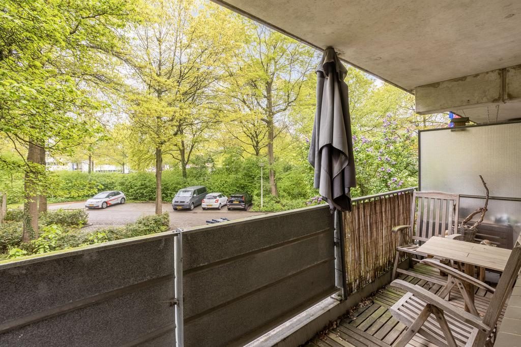 Het balkon is over de gehele breedte van de woning en gelegen op het zonnige westen. In de onderbouw bevindt zich nog een handige berging, ideaal voor het opslaan van je spullen.