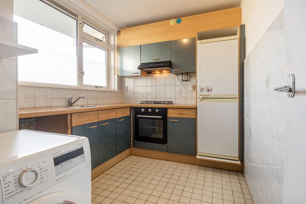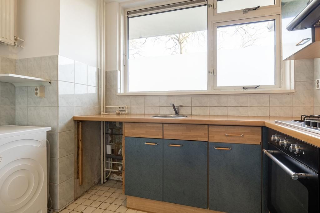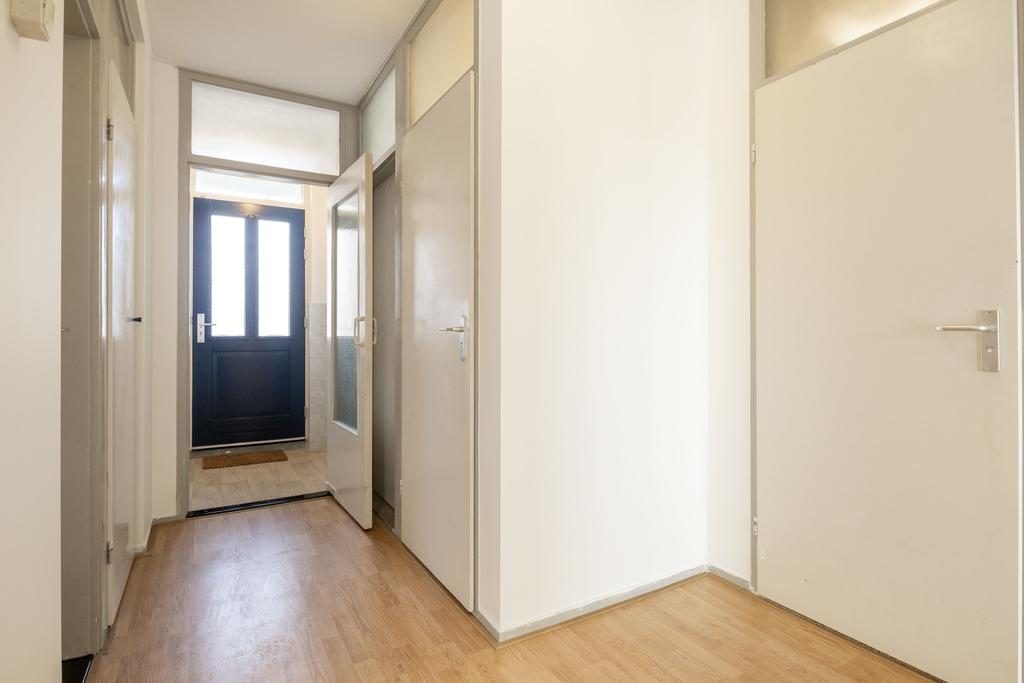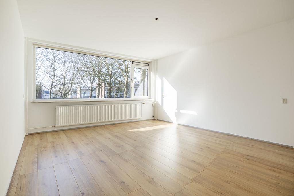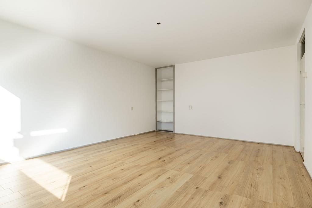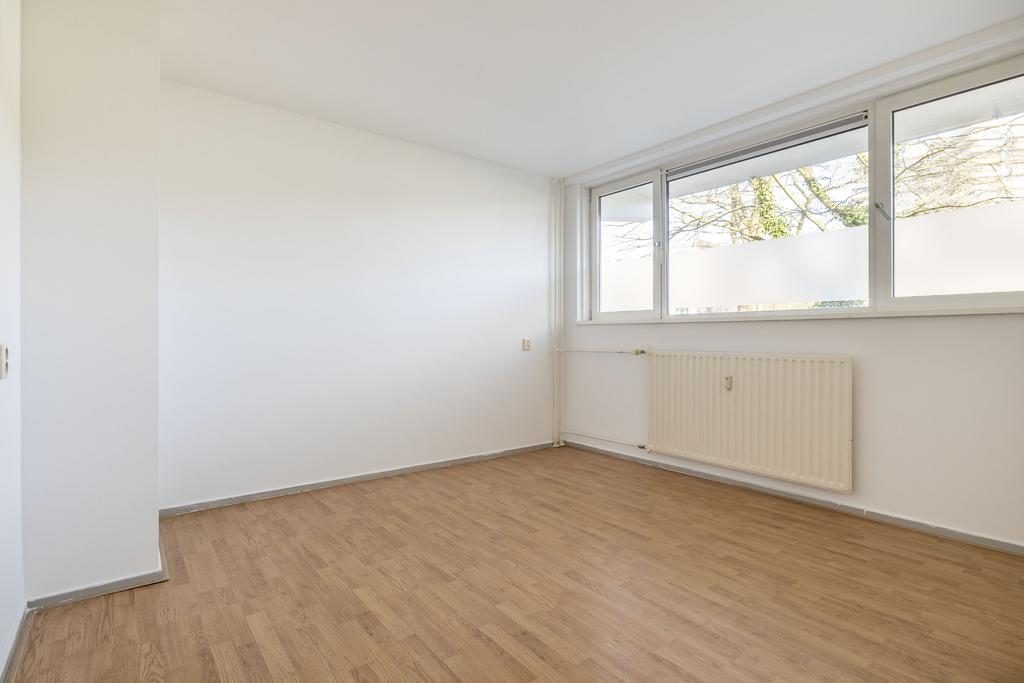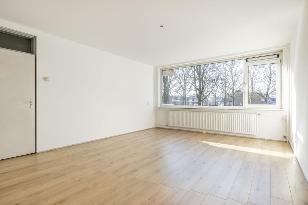 Via de hal stap je binnen in de woonkamer van 25 m². Het grote raam zorgt voor een overvloed aan natuurlijk licht en een mooi uitzicht op de speeltuin. Daarnaast is er een handige kleine inbouwkast aanwezig, perfect voor extra opbergruimte.