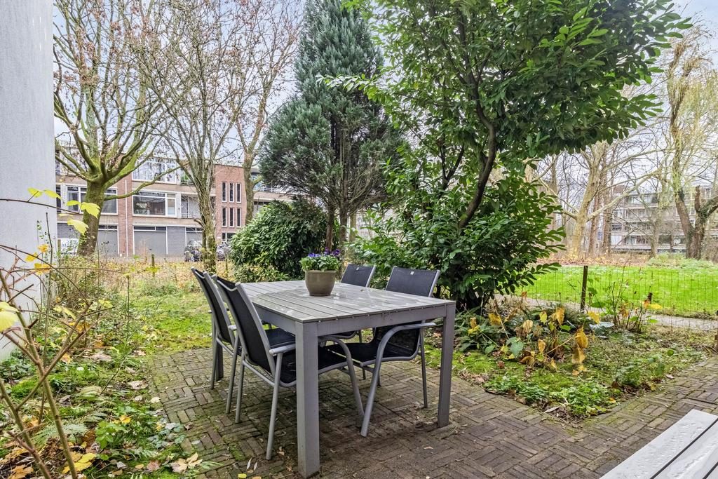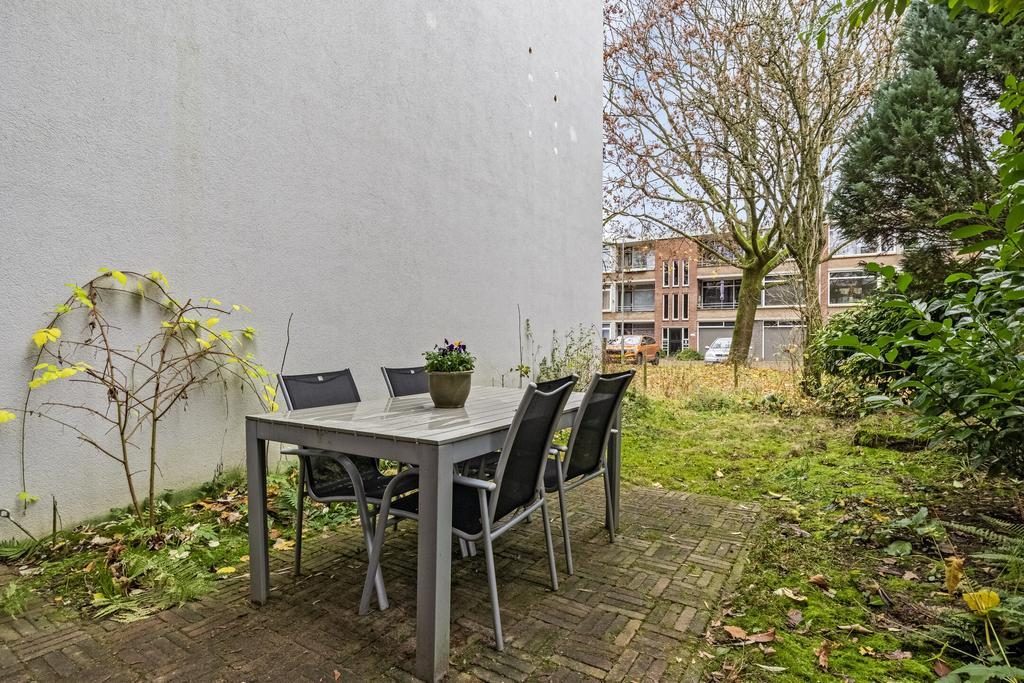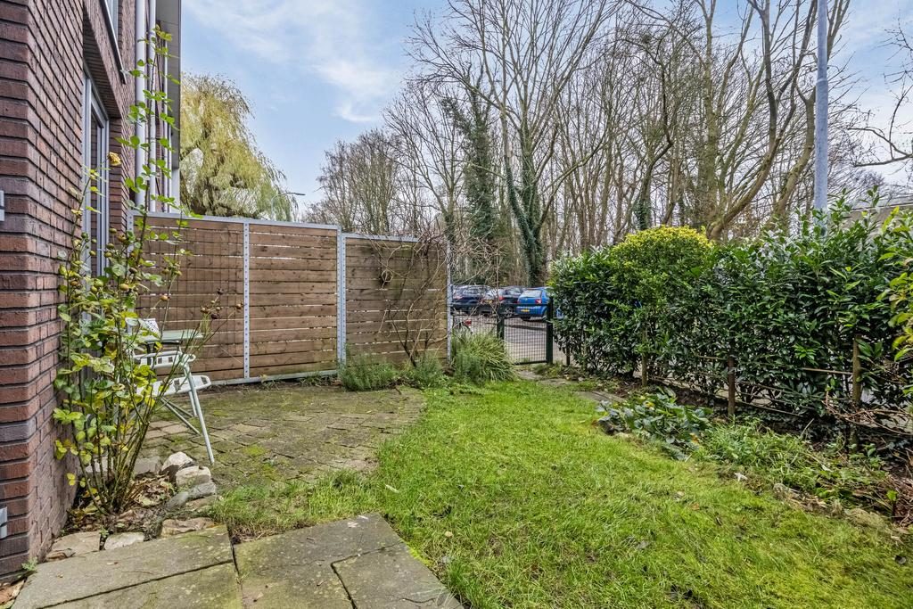 De gezellige voortuin is gelegen op het zonnige zuiden. Hier kan je heerlijk van het buitenleven en het zonnetje genieten. Door de fijne afmeting is er plek genoeg om een terras te creëren. De achtertuin is gelegen op het noorden en ook hier kan je heerlijk rustig zitten. De tuin is geen eigendom maar mag wel gebruikt worden.