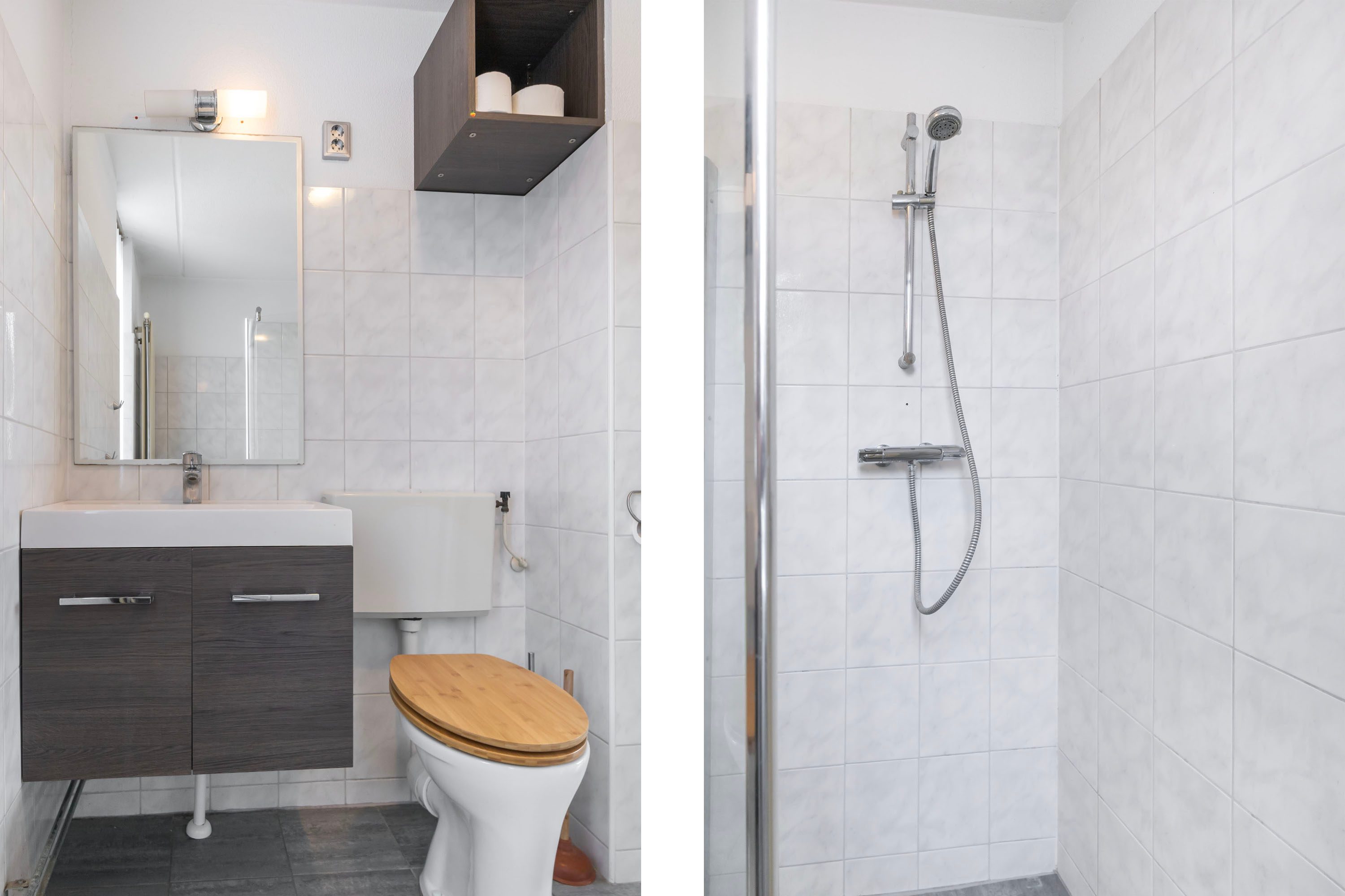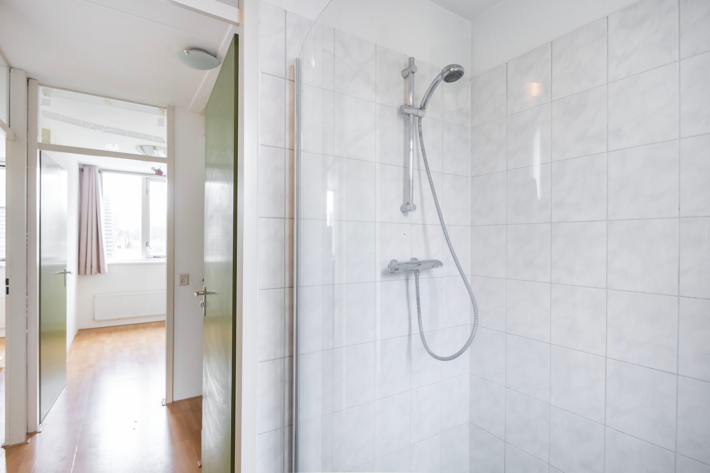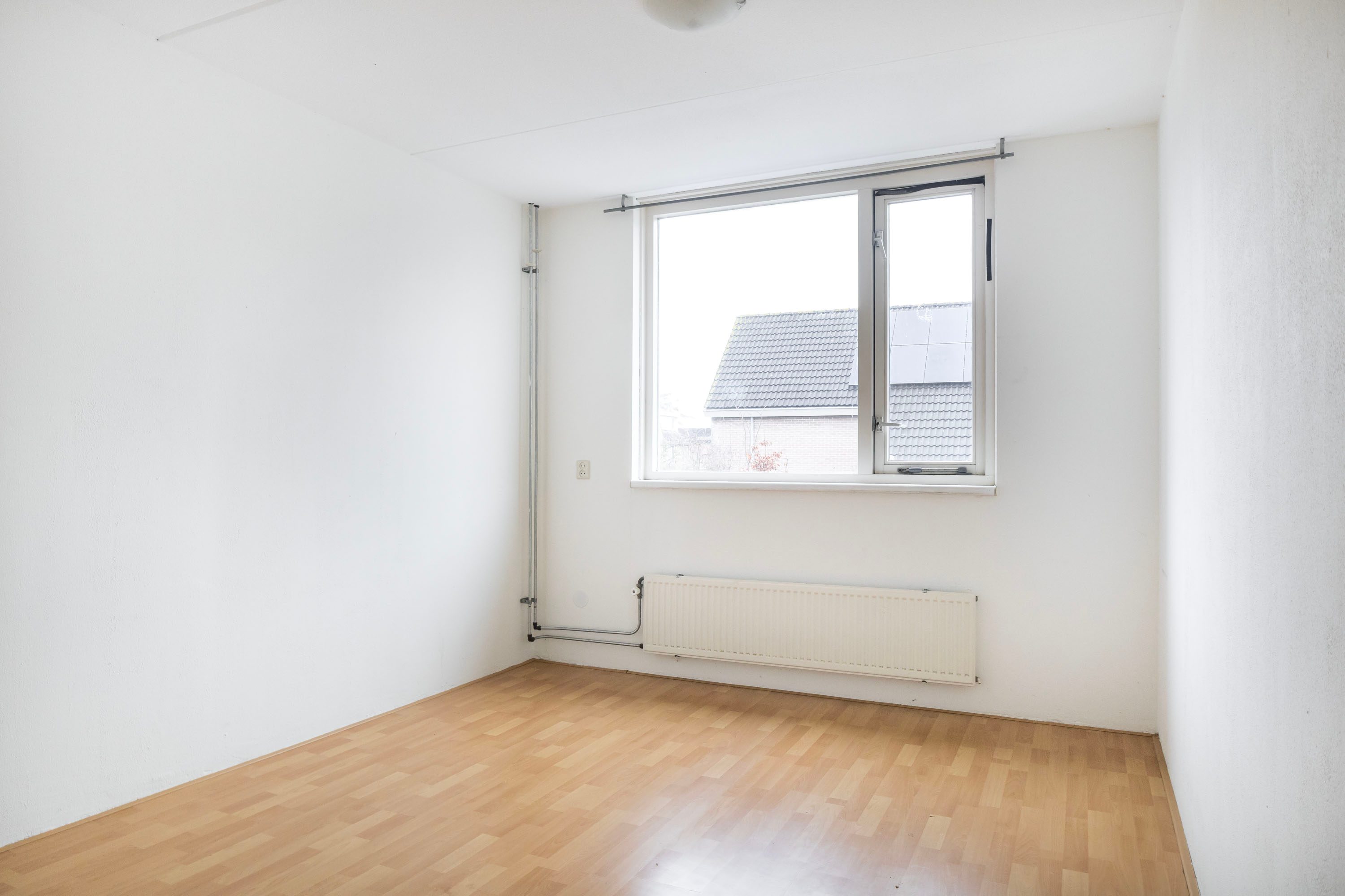 Op de eerste verdieping vind je drie goede slaapkamers. Het fijne hier is dat de muren recht omhoog lopen, waardoor je elke vierkante meter optimaal kunt benutten. De badkamer is praktisch ingericht met een douchehoek, tweede toilet en een wastafelmeubel.