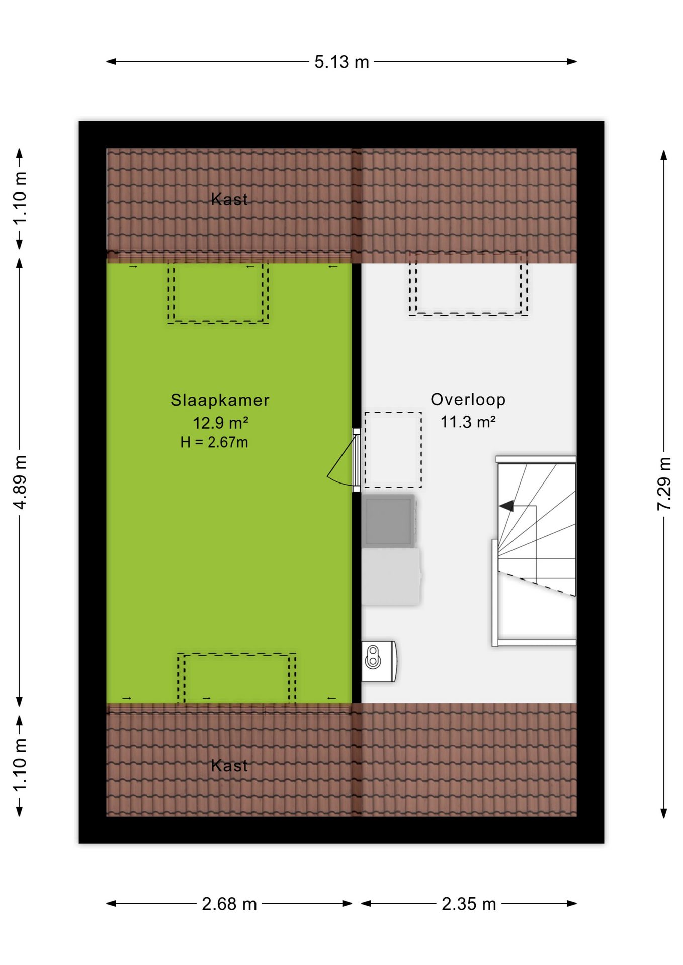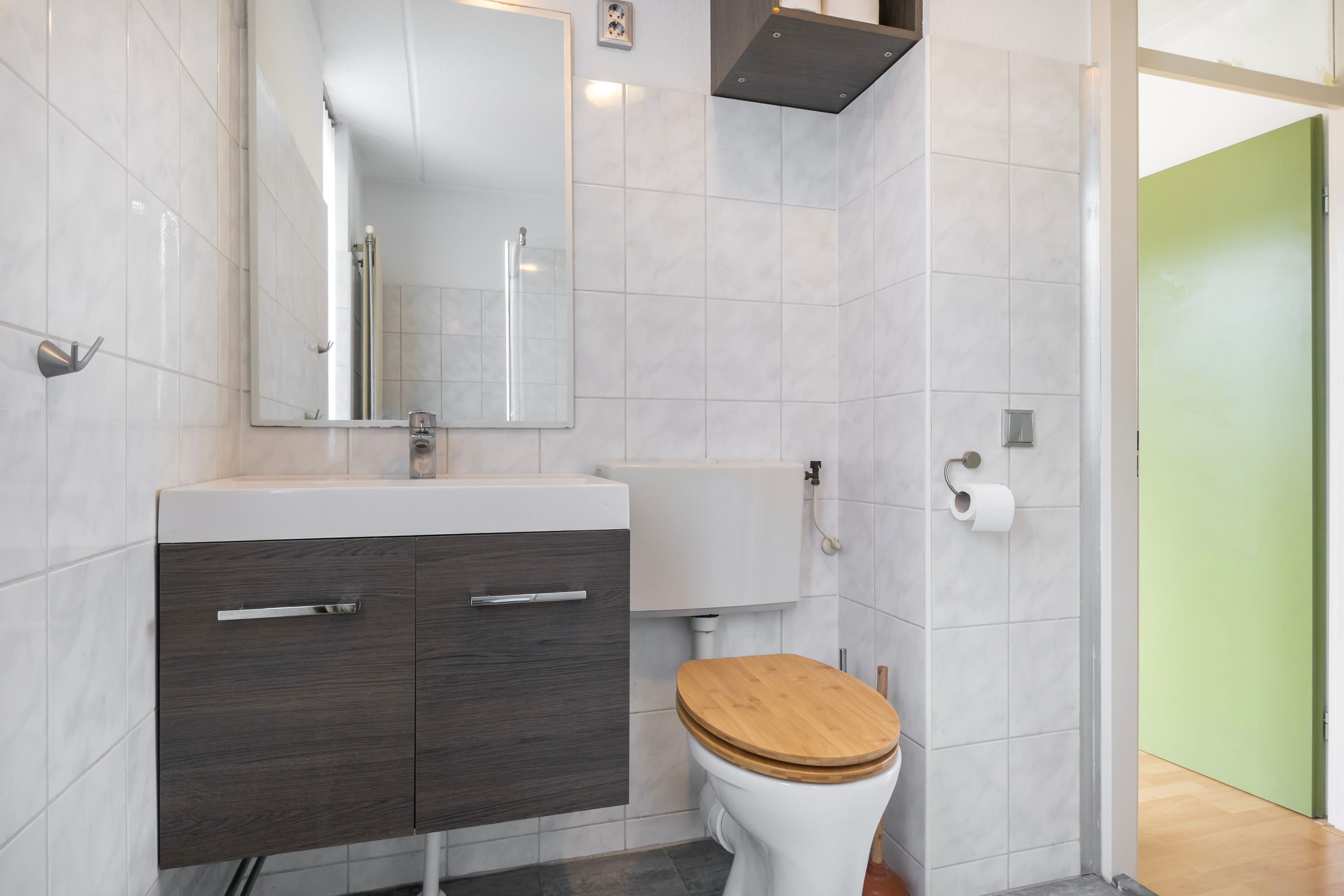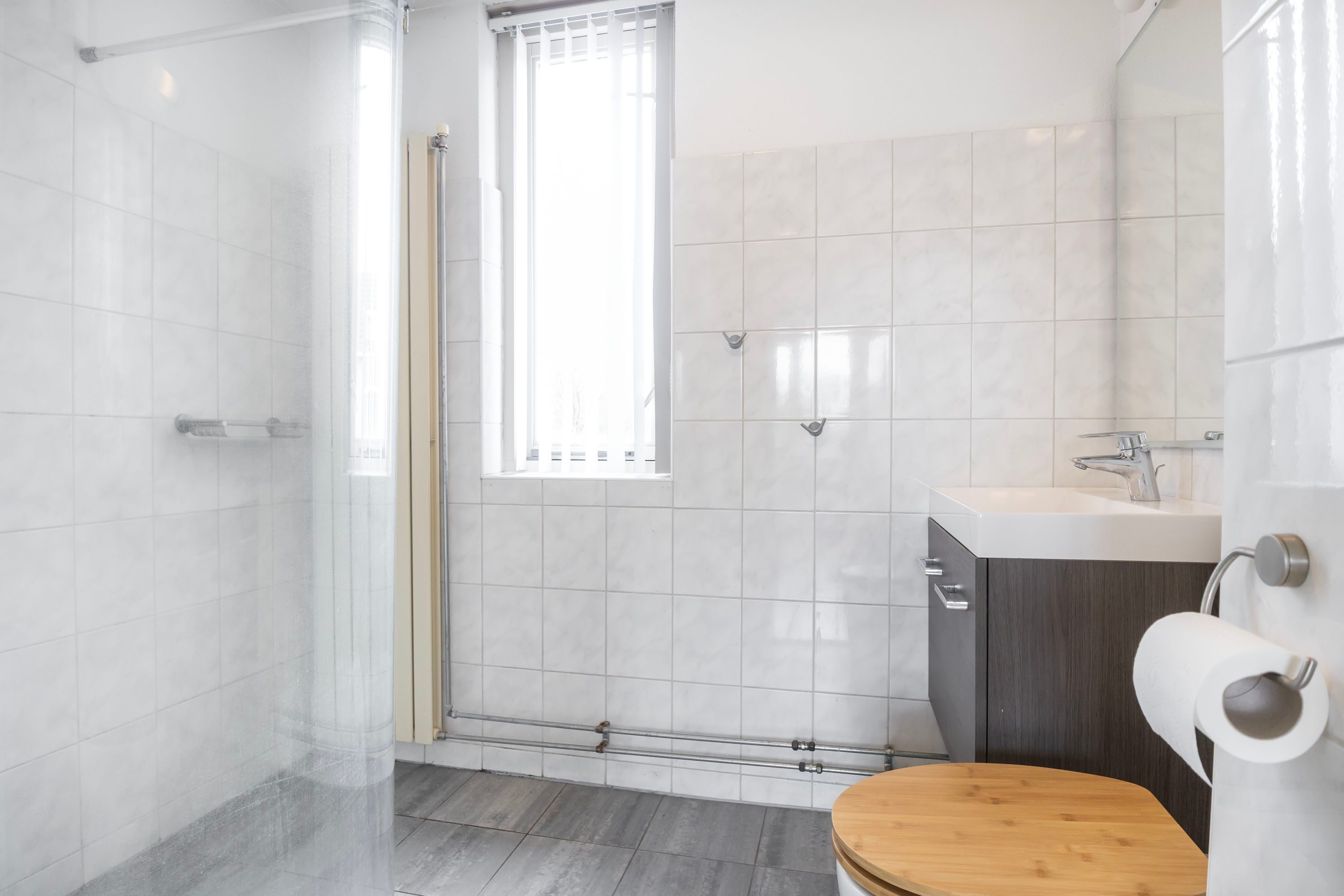 Op de eerste verdieping vind je drie goede slaapkamers. Het fijne hier is dat de muren recht omhoog lopen, waardoor je elke vierkante meter optimaal kunt benutten. De badkamer is praktisch ingericht met een douchehoek, tweede toilet en een wastafelmeubel.