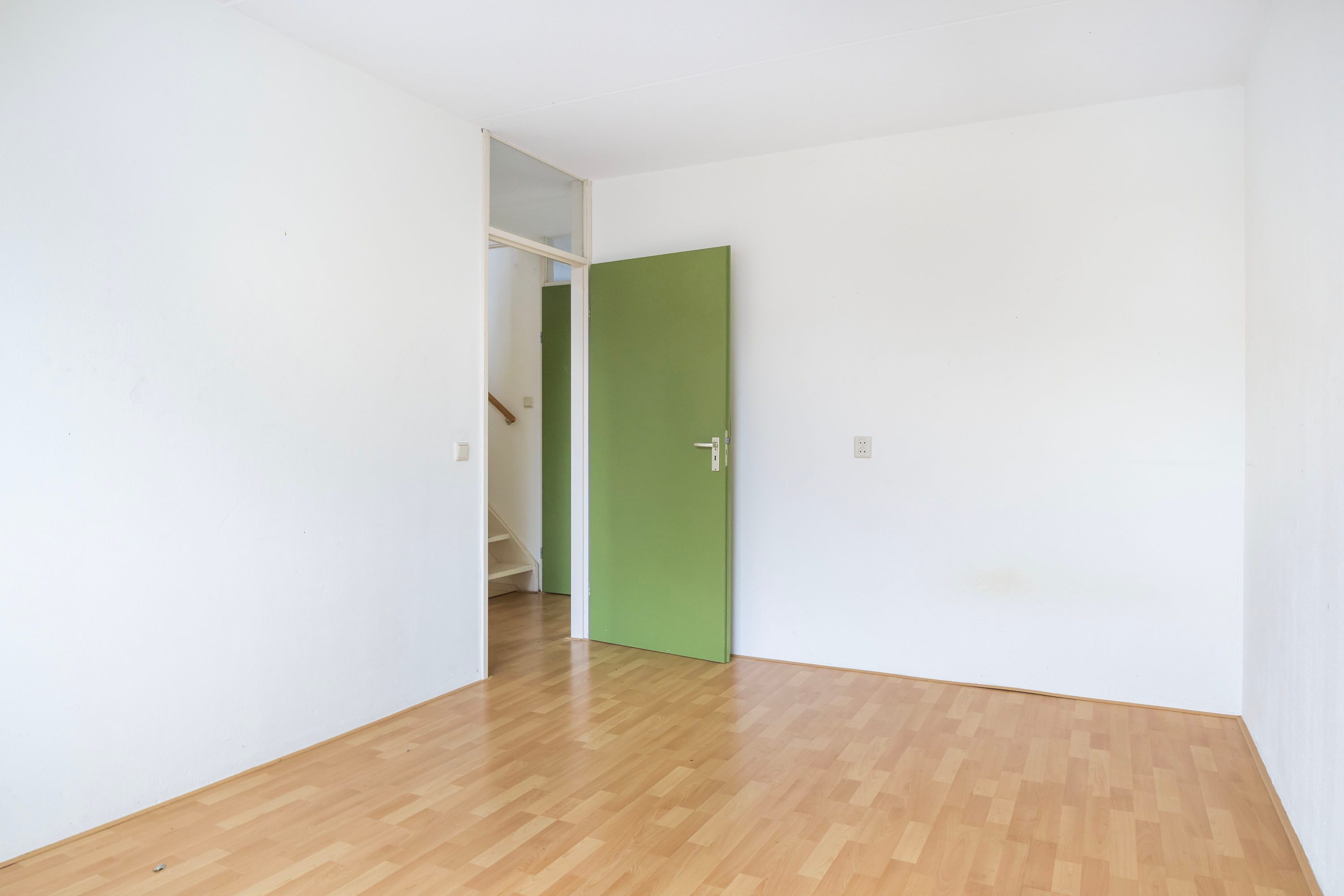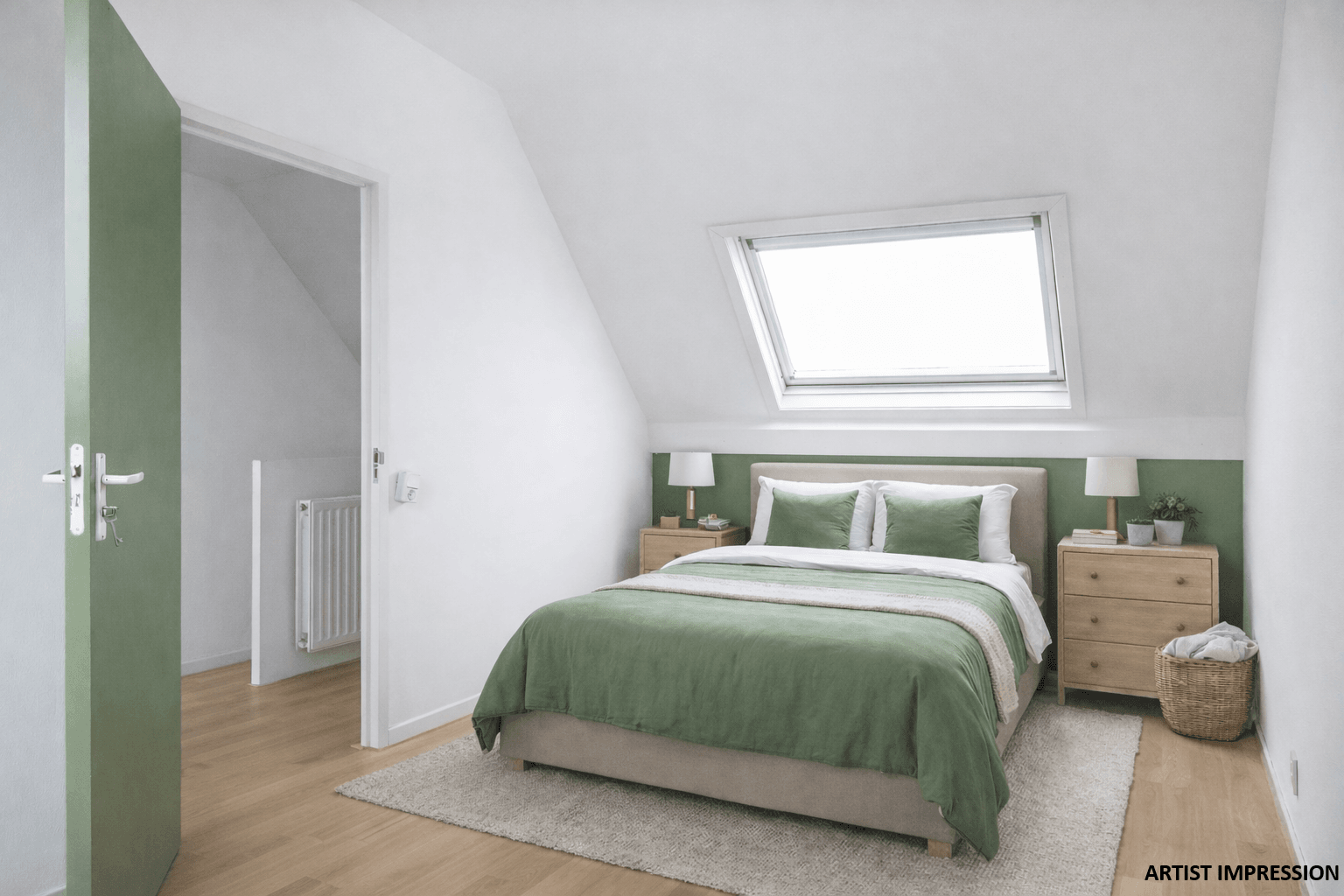 Via de vaste trap kom je op de tweede verdieping. Hier vind je op de voorzolder de opstelling voor je wasmachine en/of droger en de Cv-ketel, maar ook een verrassend ruime vierde slaapkamer. Om een idee te krijgen hoe een slaapkamer eruit kan komen te zien hebben we een artist impression toegevoegd.