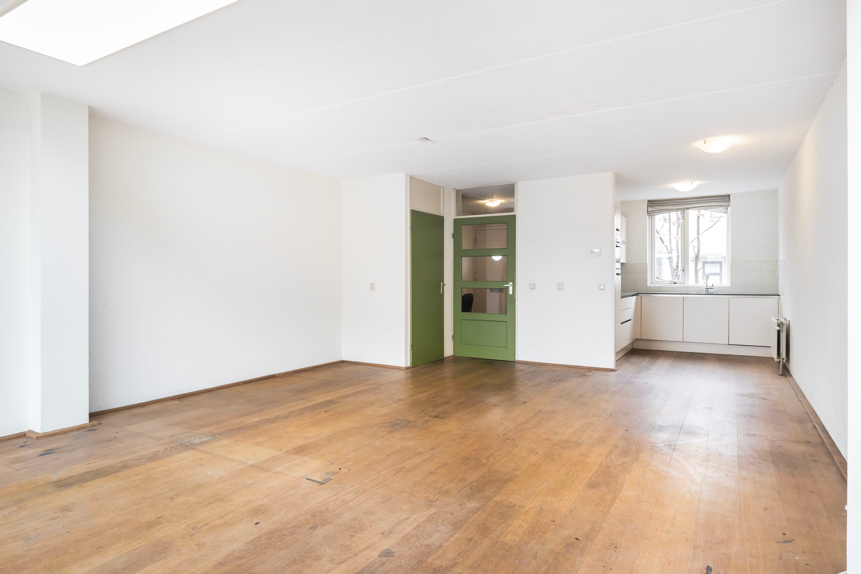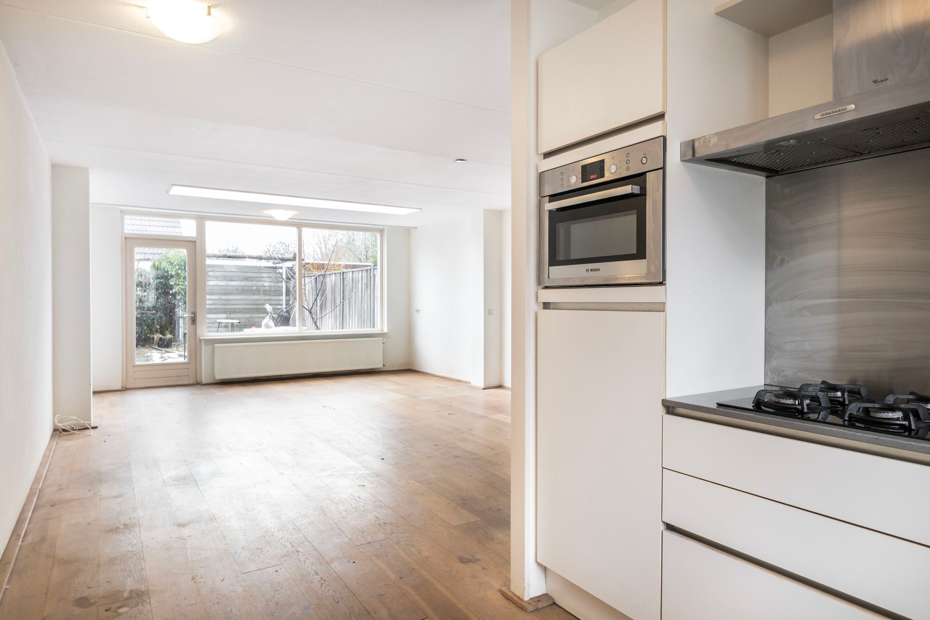 Via de hal (met handige garderoberuimte en toilet) kom je in de woonkamer. En wat voor één! Doordat de woning is uitgebouwd, heb je hier echt de ruimte. De eikenhouten vloer geeft direct warmte aan de kamer. Aan de voorkant vind je de open keuken uit 2011. Deze is van alle gemakken voorzien (denk aan een gasfornuis, vaatwasser en combi-oven), zodat je hier de lekkerste maaltijden op tafel tovert terwijl je in contact blijft met je gasten in de woonkamer.
