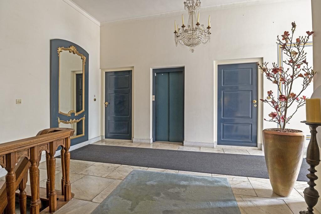 De auto kan je parkeren in de parkeergarage, welke onder Lommerlust is gelegen. De entree van Lommerlust ademt al meteen de fantastische sfeer van het gebouw dat zich doorzet in het appartement. Deze ligt op de eerste verdieping en is te bereiken via de authentieke, houten trapopgang of comfortabel met de lift. Achter de voordeur kom je in een ruime ontvangsthal. Vanuit de hal welke speels doorloopt verder het appartement in, kom je bij vrijwel alle vertrekken.