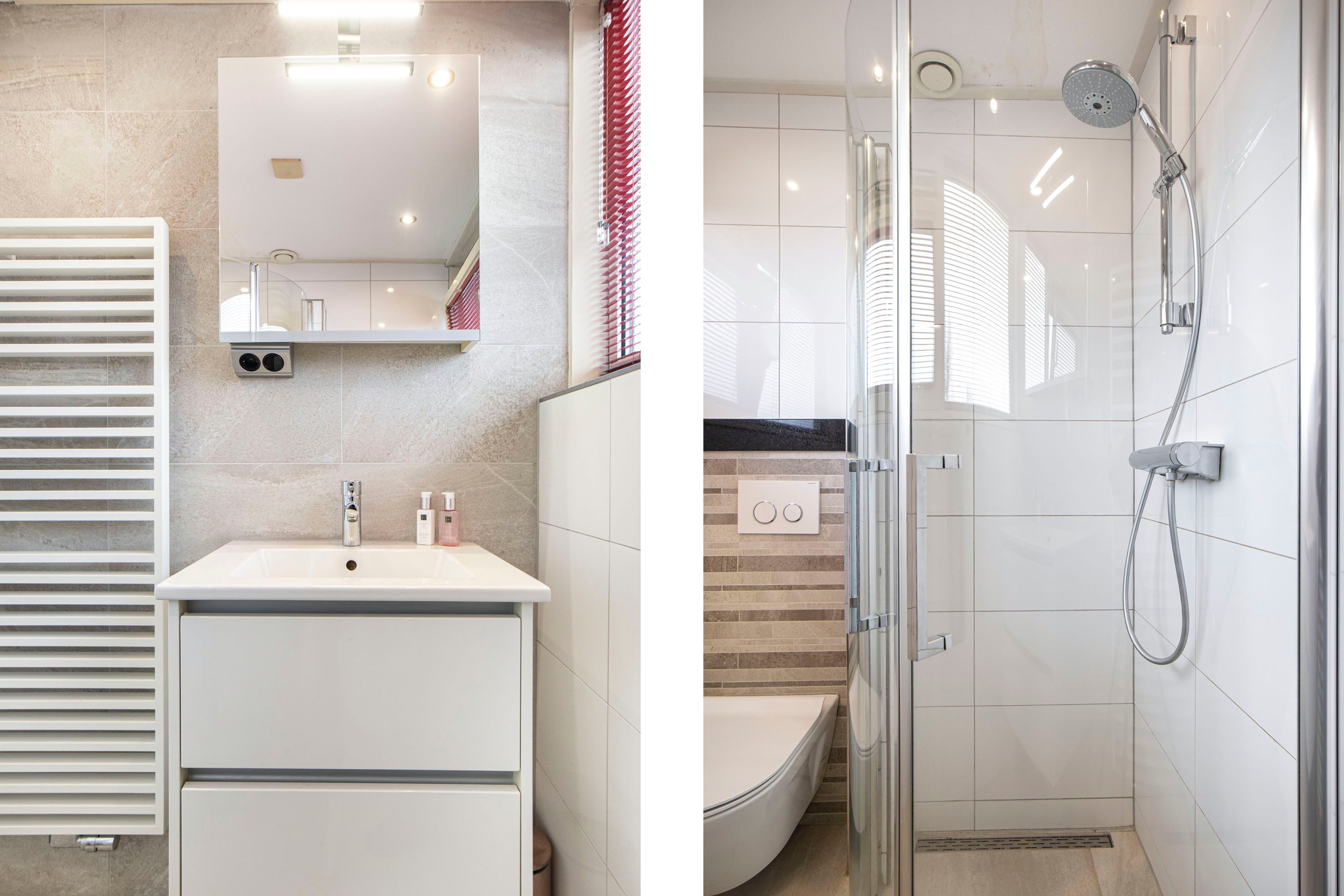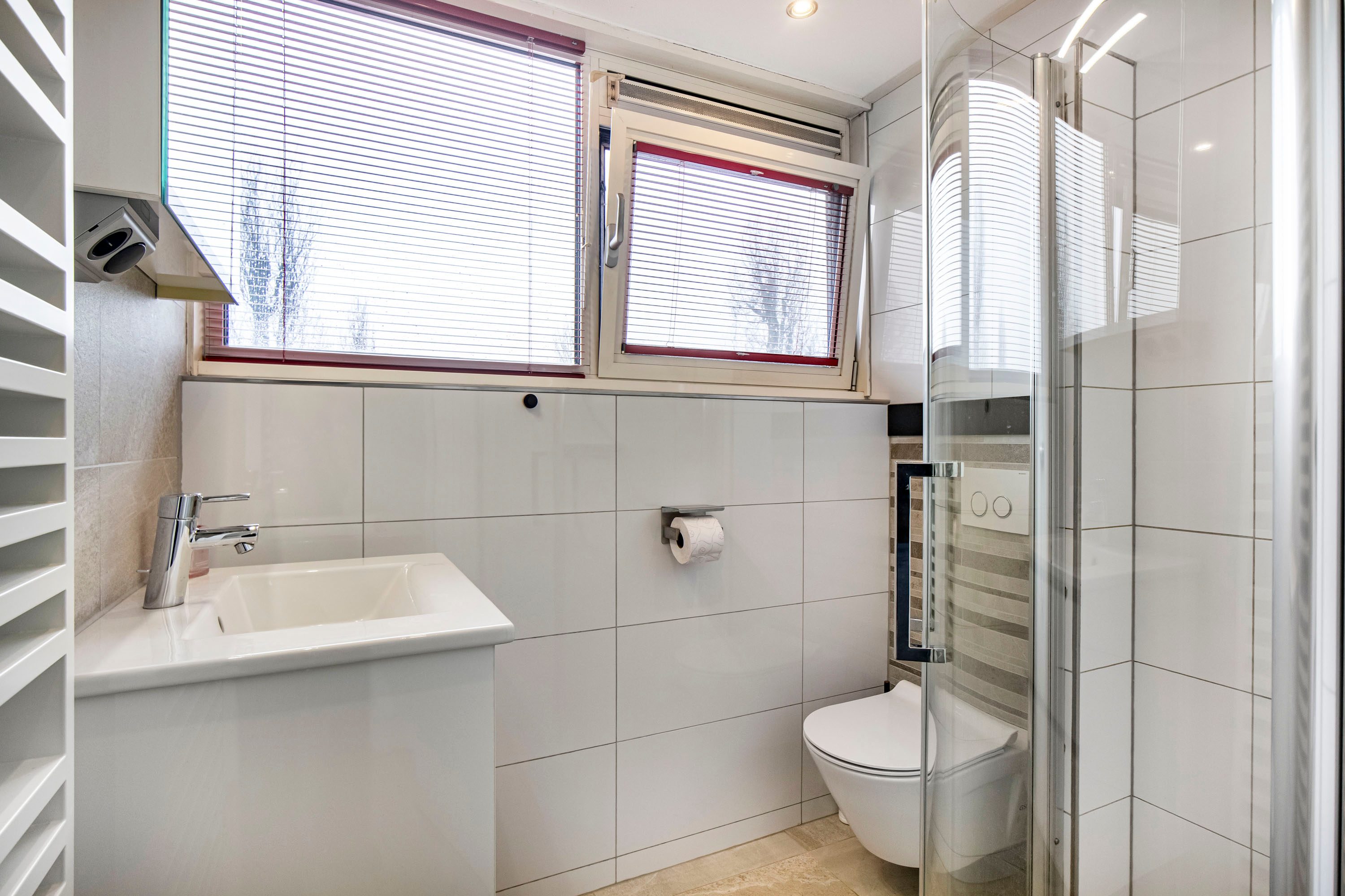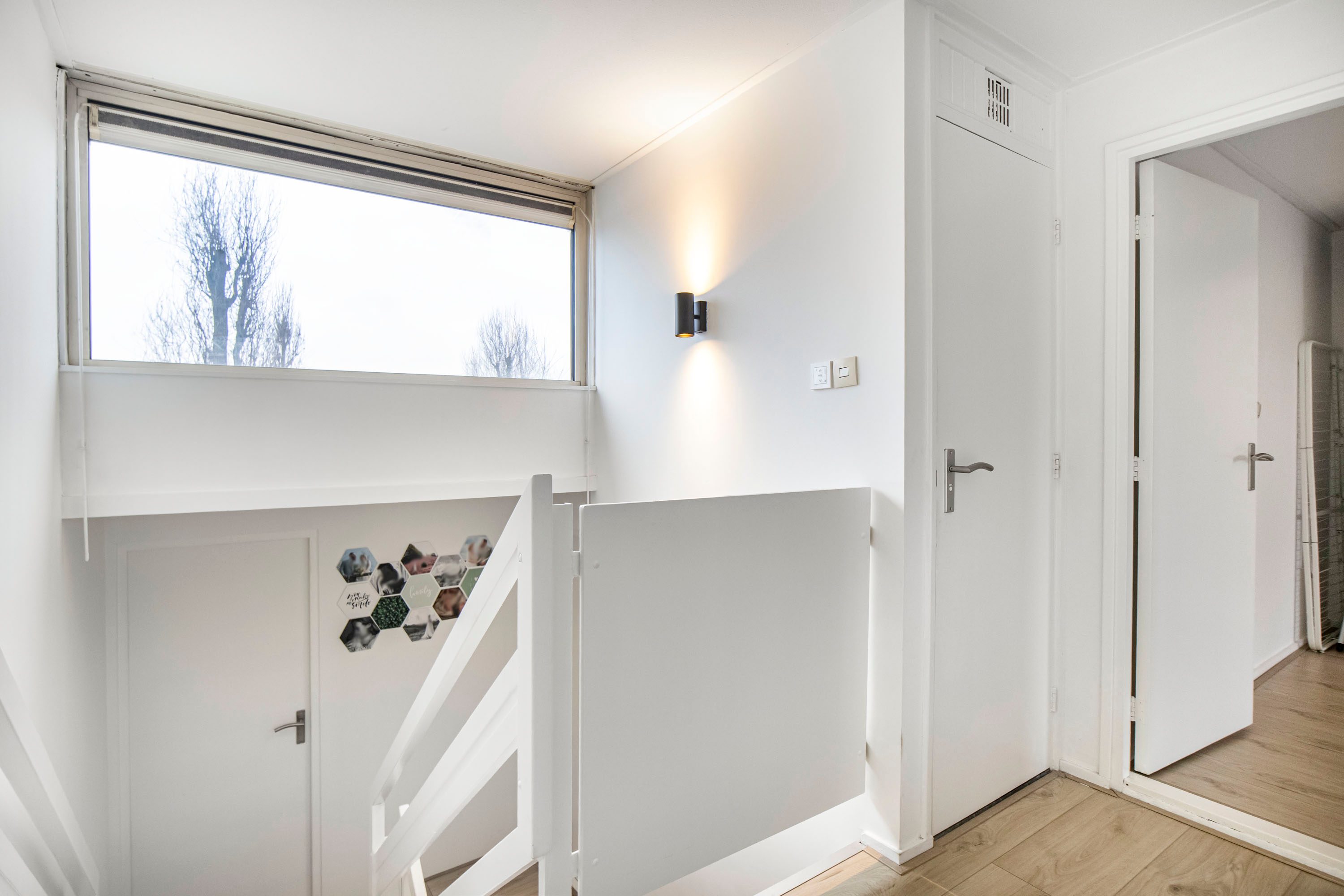 Vanuit de trapopgang in de keuken bereik je de slaapverdieping. Hier beschik je over maar liefst vier slaapkamers en een badkamer. Ook deze etage heeft een speelse indeling, met kamers die op verschillende niveaus zijn gesitueerd. Aan de achterzijde bevinden zich twee slaapkamers van 11 m² en 9 m², terwijl de kamers aan de voorzijde extra ruim zijn met 12 m² en 15 m². Hierdoor is er volop keuze voor fijne slaap-, werk-, hobby- of logeerkamers. De badkamer is praktisch ingericht en voorzien van een douche, wastafel en toilet. Dankzij het raam geniet je hier van prettig daglicht én kun je gemakkelijk natuurlijk ventileren.
