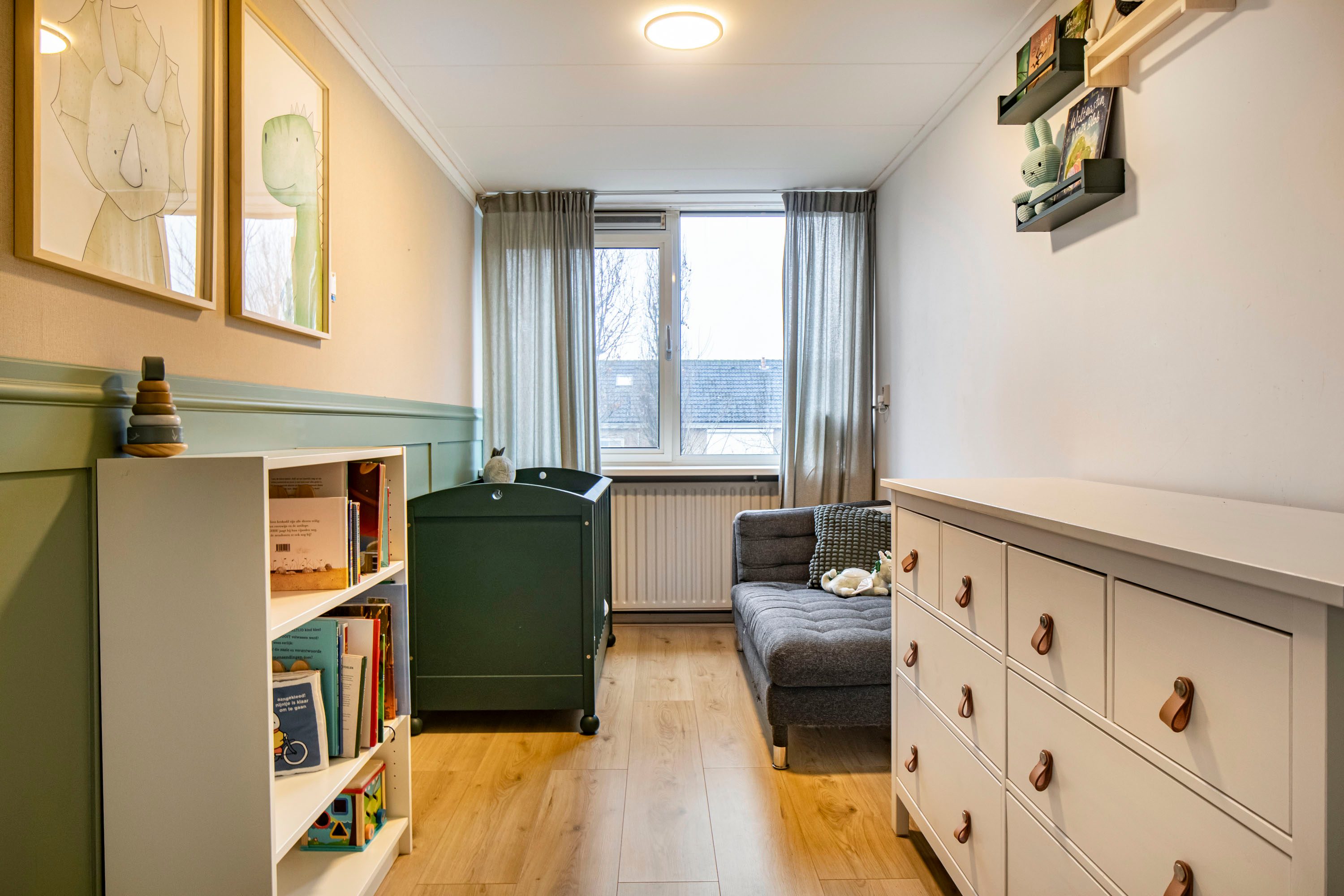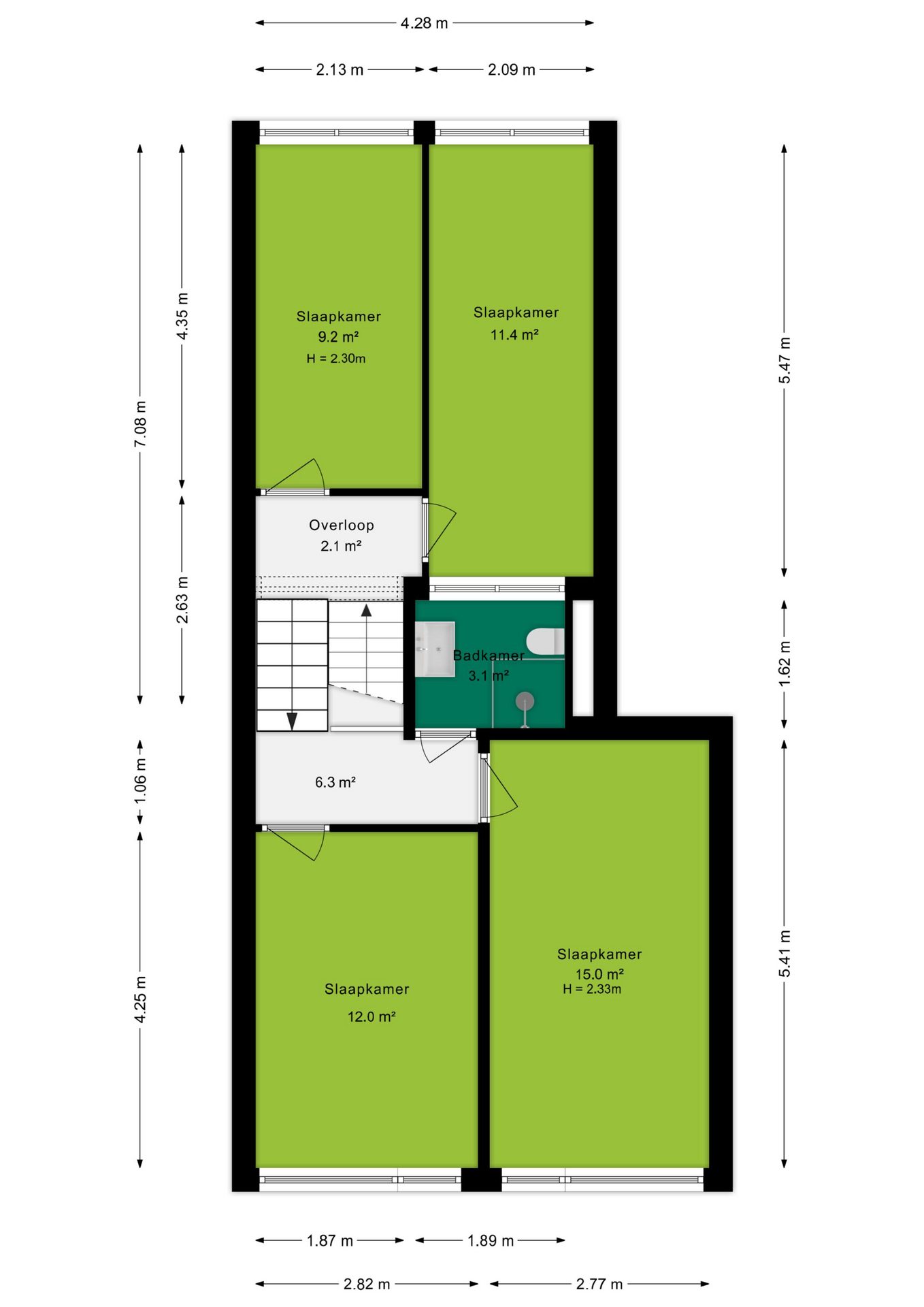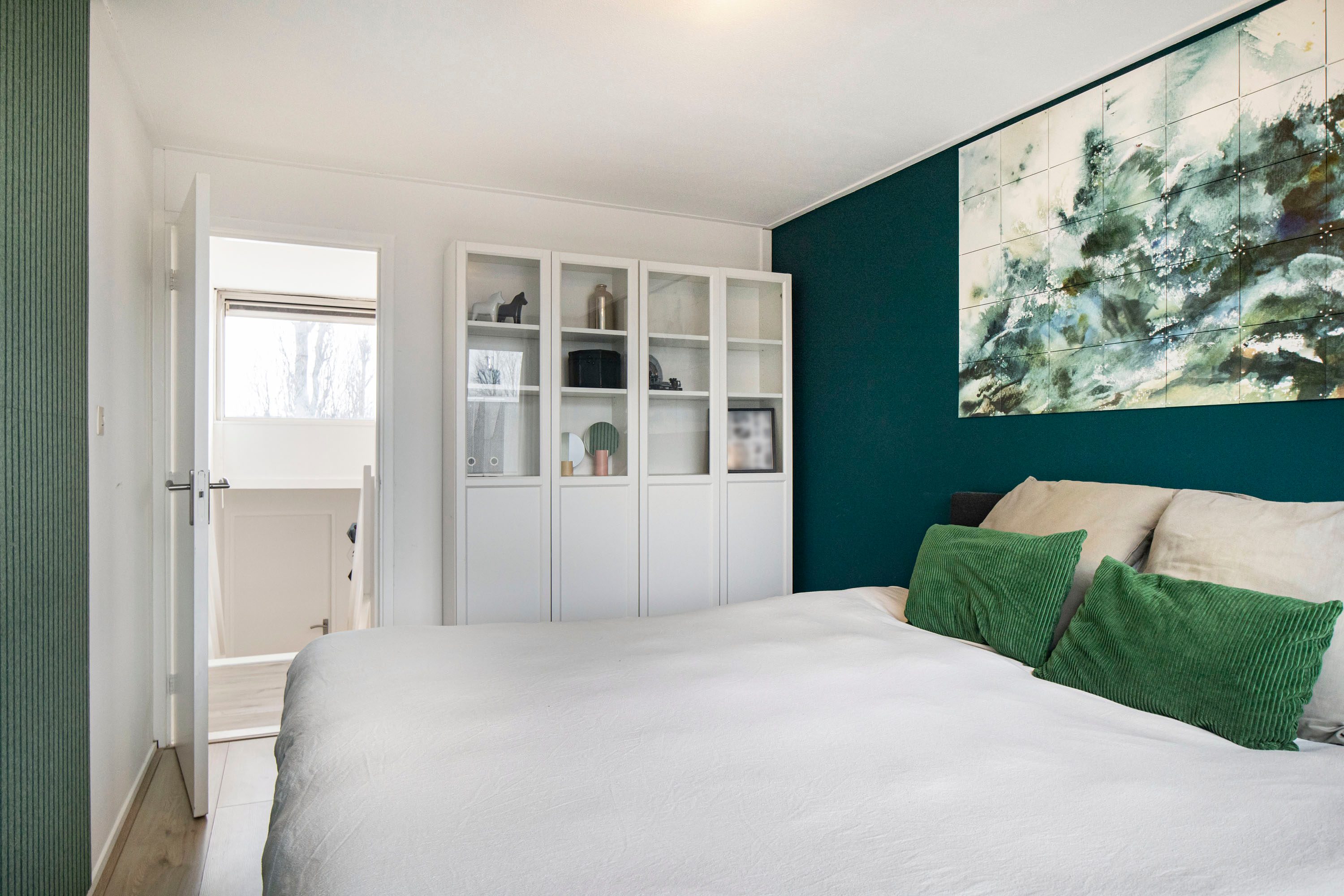 Vanuit de trapopgang in de keuken bereik je de slaapverdieping. Hier beschik je over maar liefst vier slaapkamers en een badkamer. Ook deze etage heeft een speelse indeling, met kamers die op verschillende niveaus zijn gesitueerd. Aan de achterzijde bevinden zich twee slaapkamers van 11 m² en 9 m², terwijl de kamers aan de voorzijde extra ruim zijn met 12 m² en 15 m². Hierdoor is er volop keuze voor fijne slaap-, werk-, hobby- of logeerkamers. De badkamer is praktisch ingericht en voorzien van een douche, wastafel en toilet. Dankzij het raam geniet je hier van prettig daglicht én kun je gemakkelijk natuurlijk ventileren.