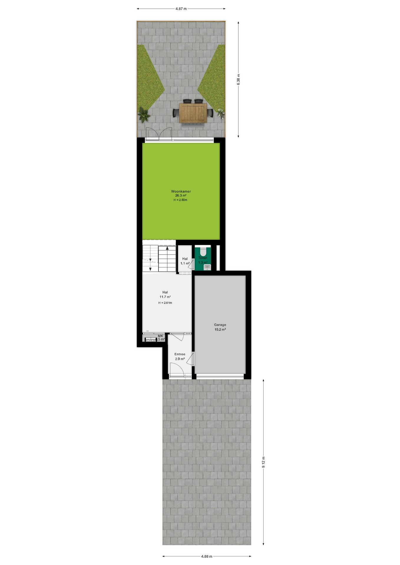 De achtertuin, gelegen op het zonnige zuiden, is een heerlijke plek om tot rust te komen. Je kunt hier ontspannen omringd door groen, genieten van de zon of gezellig buiten eten met vrienden en familie. De inpandige garage biedt daarnaast volop ruimte voor opslag, het stallen van de (bak)fiets, motor of andere spullen die je graag droog en veilig bewaart. Tot slot beschik je over een eigen parkeerplaats, waardoor je altijd verzekerd bent van een plek direct bij de woning.